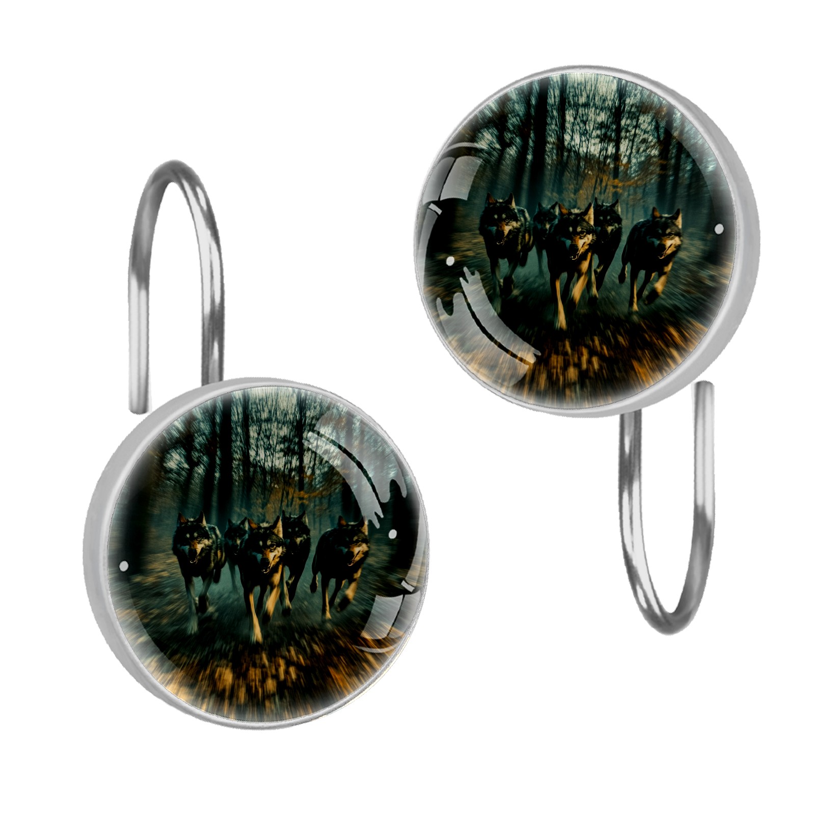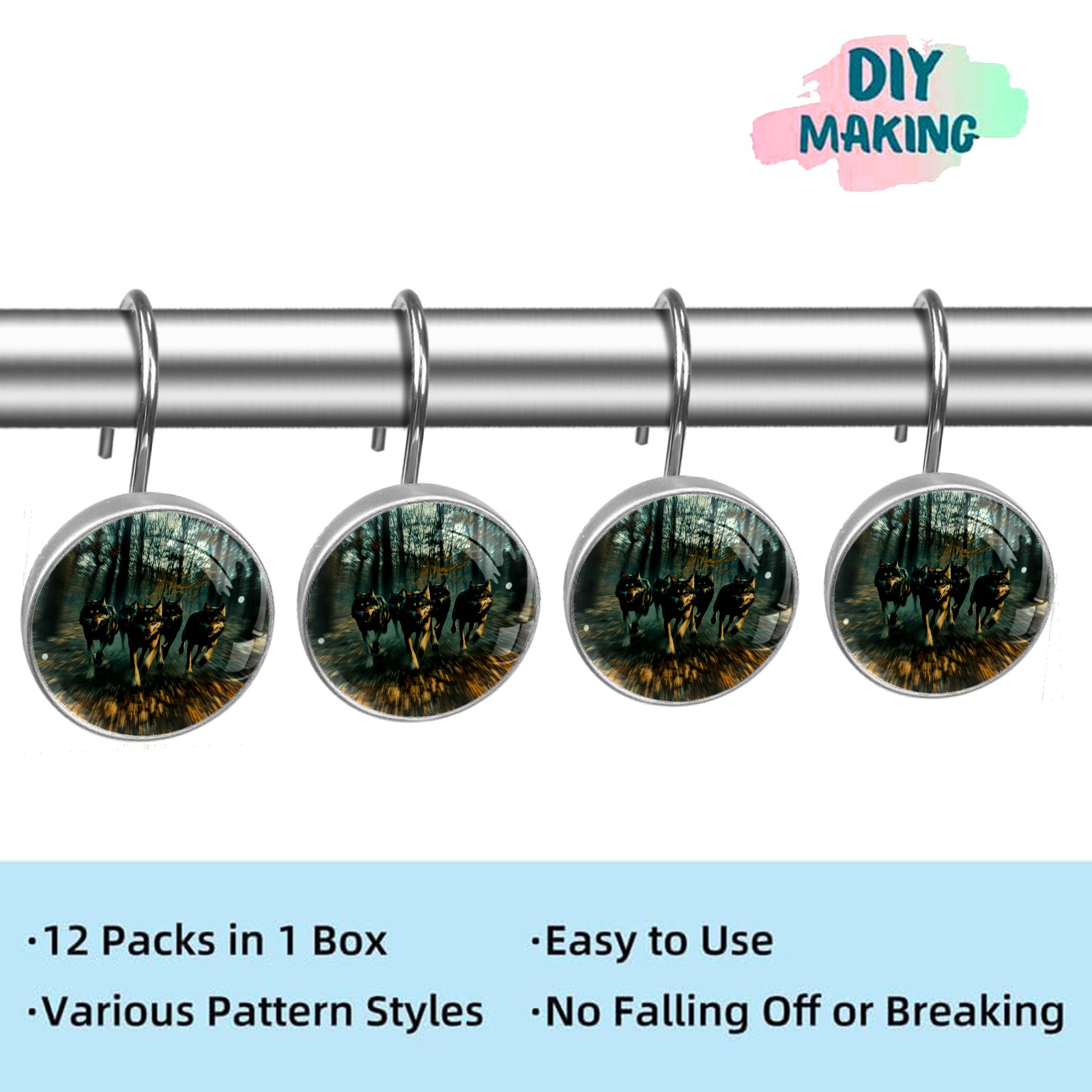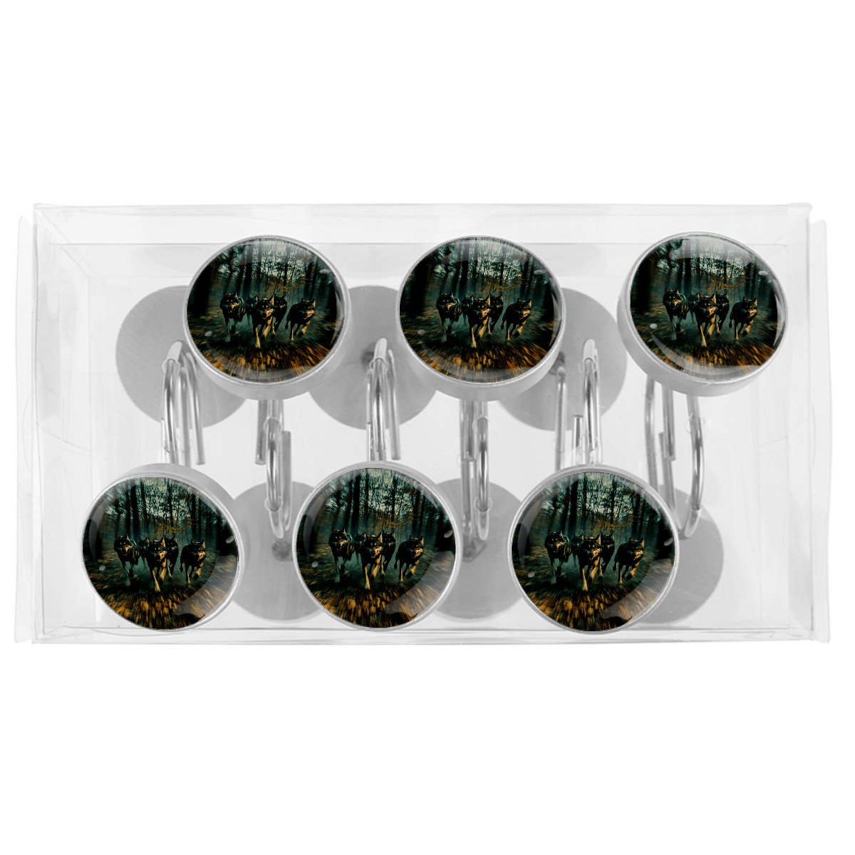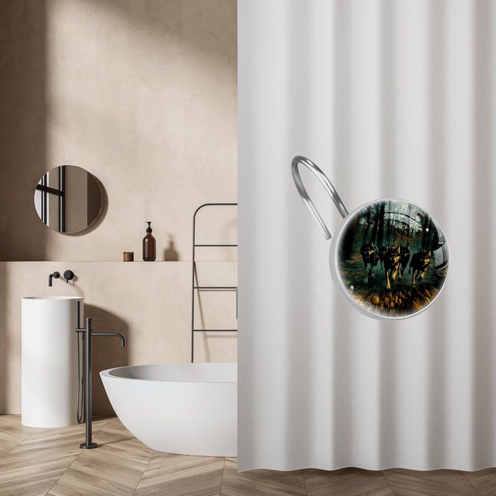 Decorative Wolves Shower Curtain Hooks 12pcs Crystal Glass Rustproof Shower Hooks for Bathroom Home Decor Stainless Steel Resin Shower Curtain Rings