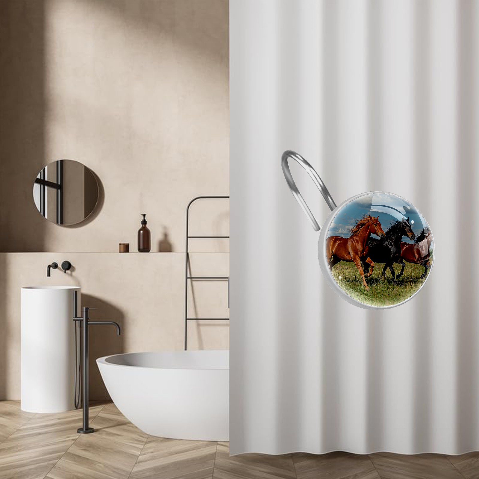 <p>Bathroom Shower Curtain Hooks Rings for Home Decoration</p> <p>Size: </p> <p>- Crystal glass diameter-1.45x1.45 inches</p> <p>- Hook diameter : 1.1 inches</p> <p>Material: Stainless steel + Crystal Glass + Resin</p> <p>Weight: about 430 g</p> <p>Package included: 12 pcs shower curtain hooks</p> <p></p> <p><b></b></p> <p><b></b></p>
