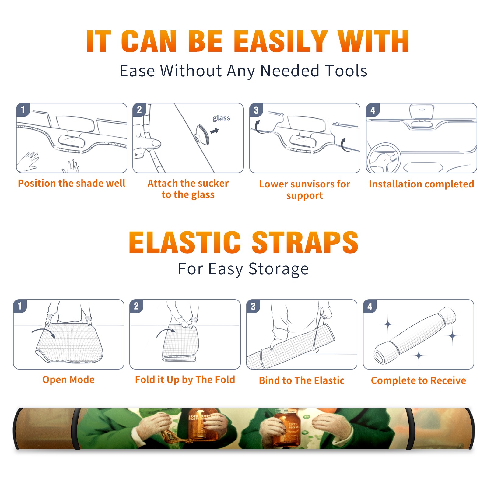 <b>Foldable Premium Car Windshield Sunshade is your great solution to reduce your car’s interior temperature dramatically!This is definitely a must-have item for your summer travel! </b> <br> ●<b>Size: 55"L x 30"W </b> <br> ●<b>Blocking Uv Rays & Heat Insulation</b><br> Our vehicle sunshade provides effective UV, sun, and summer heat protection .Maintains dashboards by preventing fading and cracking <br> ●<b>Easy-To-Store Folding Design Makes Storage Convenient</b> <br> Car sunshades comes with removable suction cups and elastic bands that you can install or remove easily and quickly. In a matter of seconds you can install your purchased windshield visor. And the detachable suction cups on the automotive's sun visor leave no marks on the windows when removed. When not in use, the front windshield can be conveniently and effectively placed on the door pocket or the dashboard, which is beautiful and does not occupy the interior space.<br> <br> <b>Stay cool and protected this summer with our fun and functional car windshield sun shade!Perfectly crafted to fit most vehicles, this premium quality sun blocker is your go-to automotive accessory. it's time to say goodbye to scorching hot seats and hello to comfort on every drive!</b>