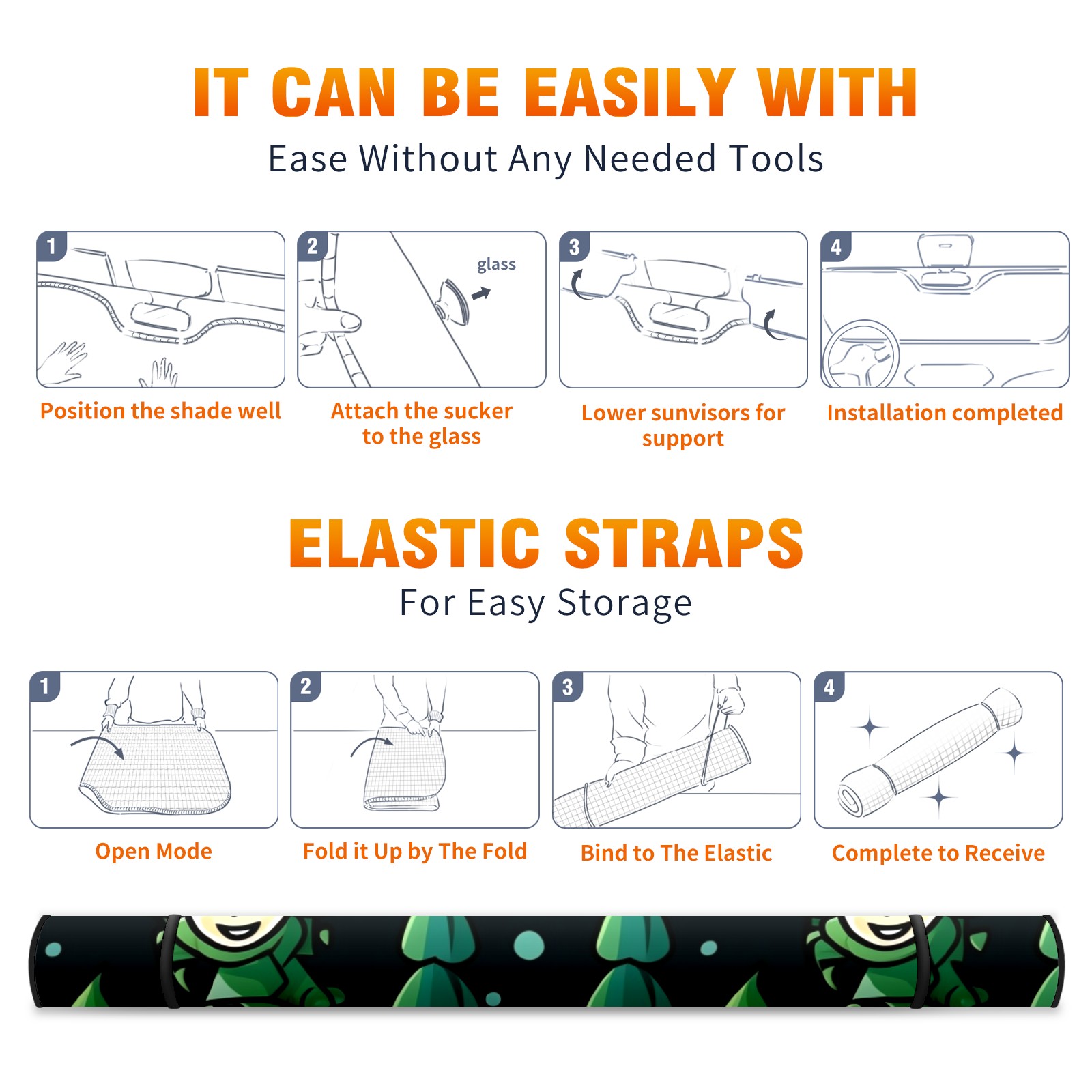 • <b>Foldable Premium Car Windshield Sunshade is your great solution to reduce your car’s interior temperature dramatically!This is definitely a must-have item for your summer travel! </b> <br> ●<b>Size: 55"L x 30"W </b> <br> ●<b>Blocking Uv Rays & Heat Insulation</b><br> Our vehicle sunshade provides effective UV, sun, and summer heat protection .Maintains dashboards by preventing fading and cracking <br> ●<b>Easy-To-Store Folding Design Makes Storage Convenient</b> <br> Car sunshades comes with removable suction cups and elastic bands that you can install or remove easily and quickly. In a matter of seconds you can install your purchased windshield visor. And the detachable suction cups on the automotive's sun visor leave no marks on the windows when removed. When not in use, the front windshield can be conveniently and effectively placed on the door pocket or the dashboard, which is beautiful and does not occupy the interior space.<br> <br> <b>Stay cool and protected this summer with our fun and functional car windshield sun shade!Perfectly crafted to fit most vehicles, this premium quality sun blocker is your go-to automotive accessory. it's time to say goodbye to scorching hot seats and hello to comfort on every drive!</b>
