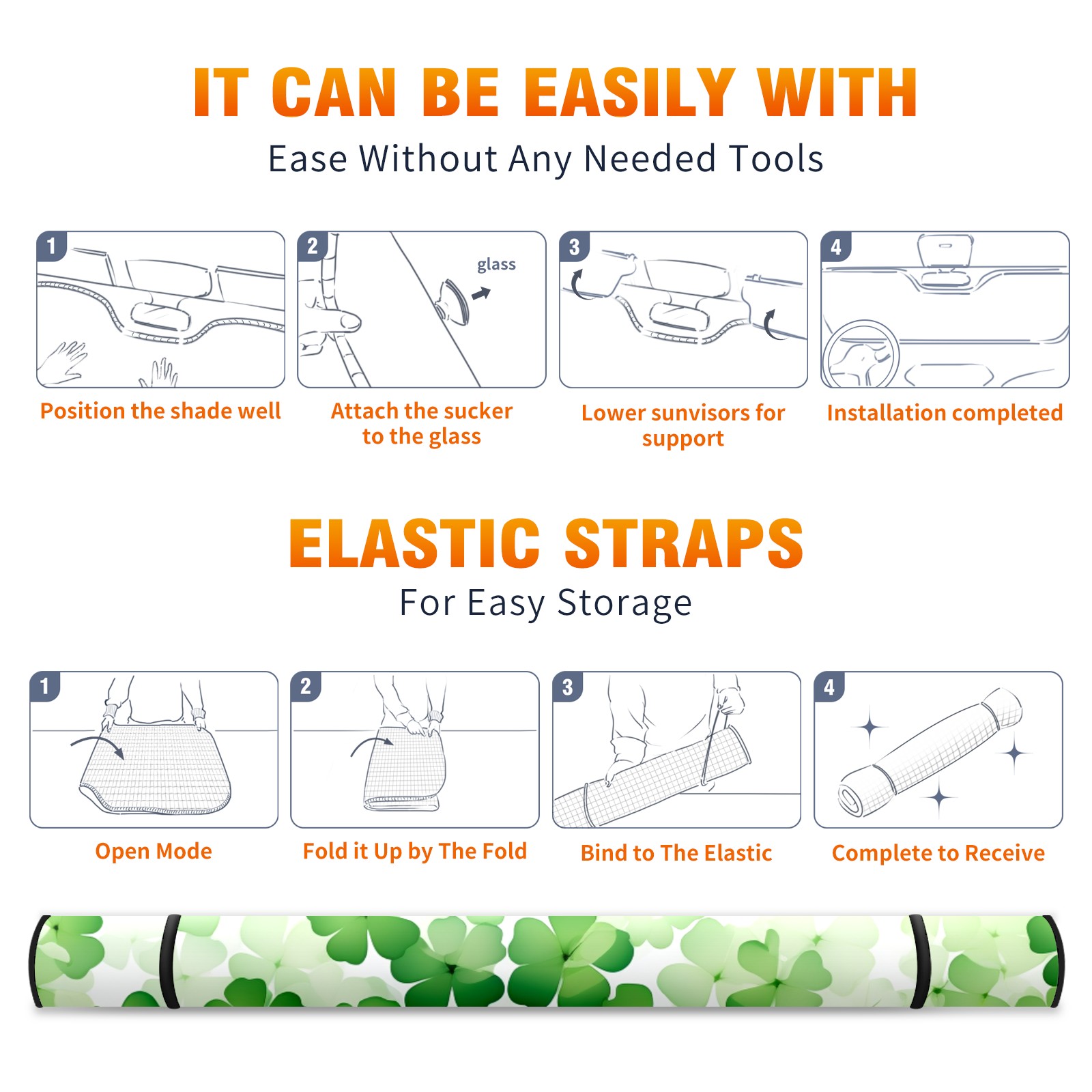 <b>Foldable Premium Car Windshield Sunshade is your great solution to reduce your car’s interior temperature dramatically!This is definitely a must-have item for your summer travel! </b> <br> ●<b>Size: 55"L x 30"W </b> <br> ●<b>Blocking Uv Rays & Heat Insulation</b><br> Our vehicle sunshade provides effective UV, sun, and summer heat protection .Maintains dashboards by preventing fading and cracking <br> ●<b>Easy-To-Store Folding Design Makes Storage Convenient</b> <br> Car sunshades comes with removable suction cups and elastic bands that you can install or remove easily and quickly. In a matter of seconds you can install your purchased windshield visor. And the detachable suction cups on the automotive's sun visor leave no marks on the windows when removed. When not in use, the front windshield can be conveniently and effectively placed on the door pocket or the dashboard, which is beautiful and does not occupy the interior space.<br> <br> <b>Stay cool and protected this summer with our fun and functional car windshield sun shade!Perfectly crafted to fit most vehicles, this premium quality sun blocker is your go-to automotive accessory. it's time to say goodbye to scorching hot seats and hello to comfort on every drive!</b>