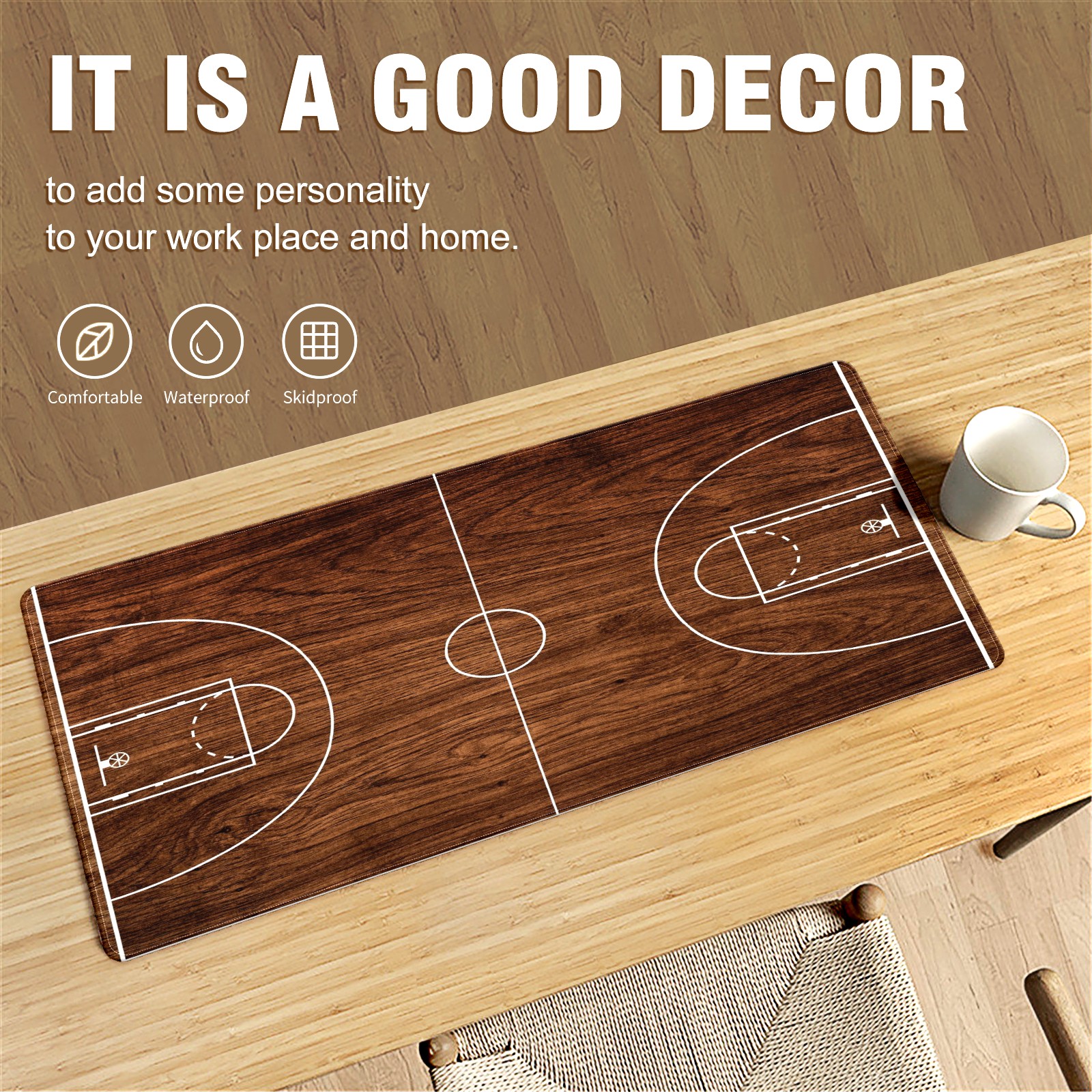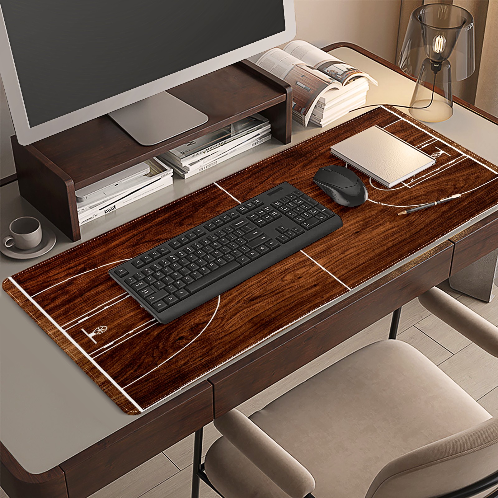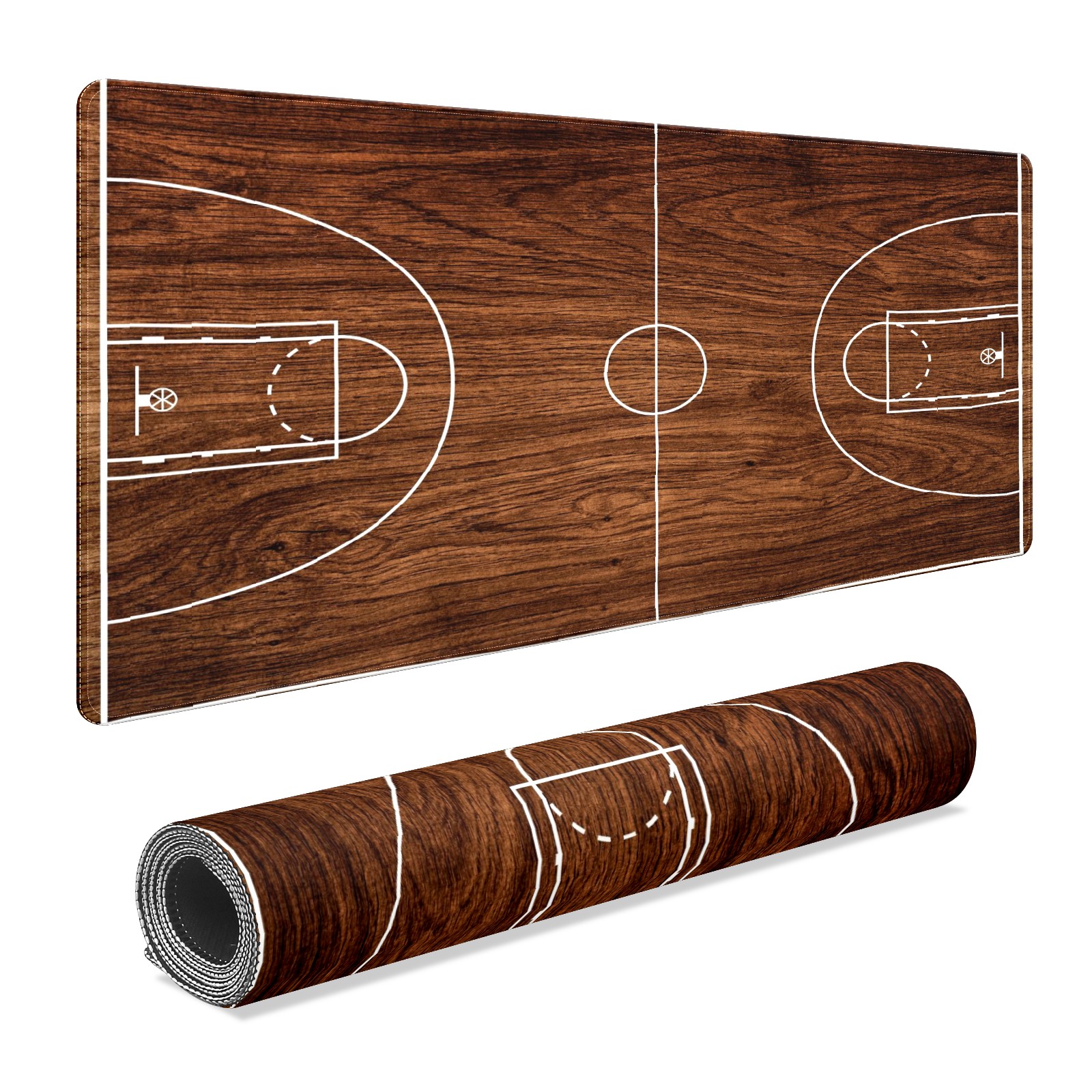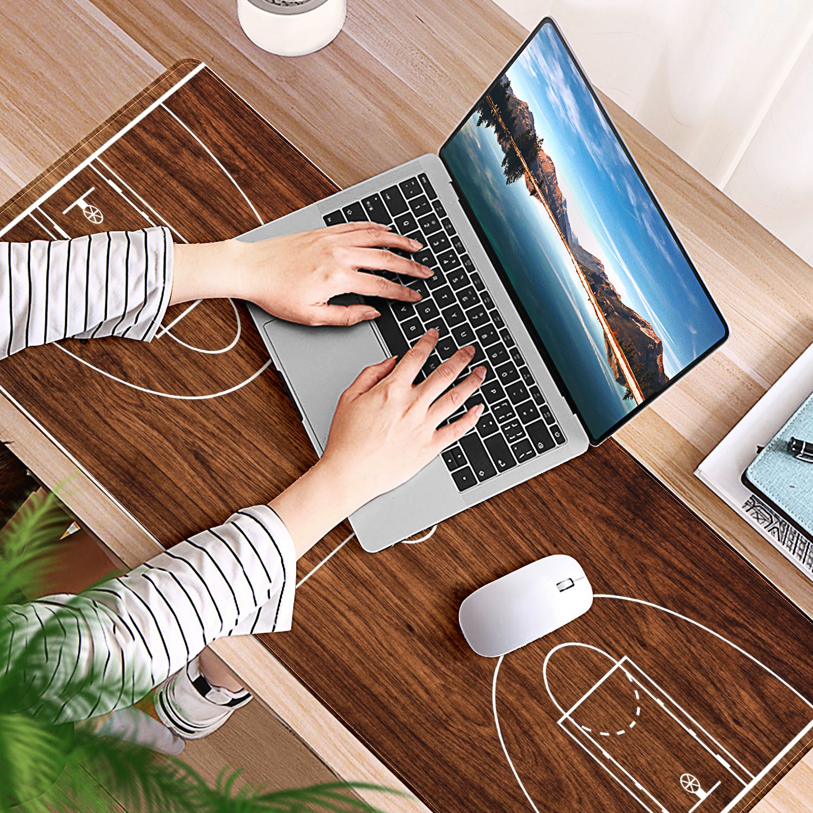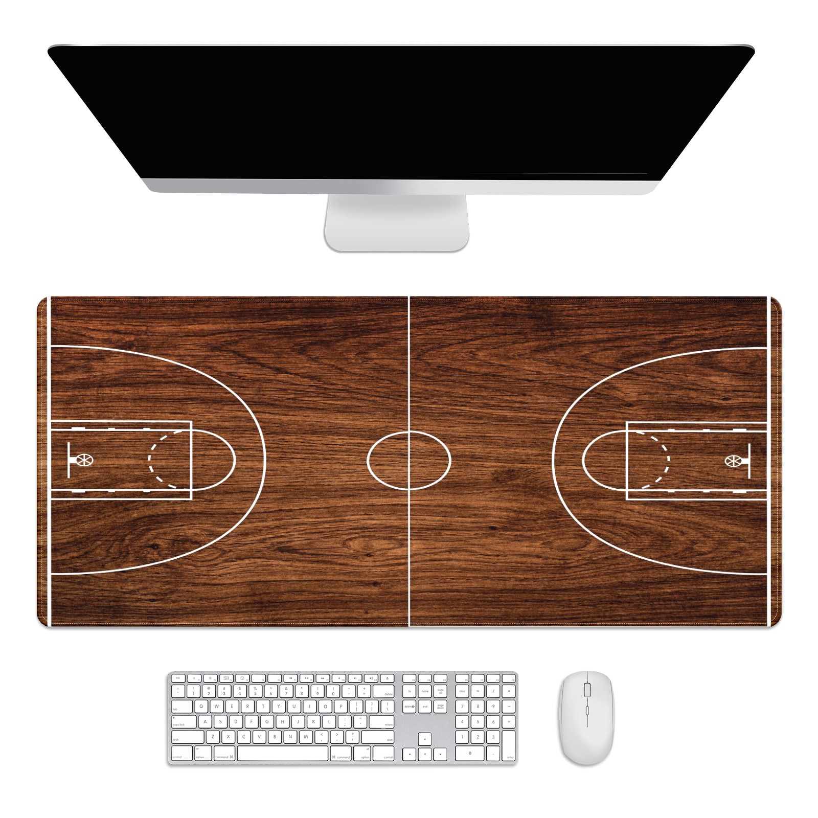 Brown Wood Basketball Court Mouse Pad 35.4'' x 15.7'' Extra Large Gaming Mousepad Non-Slip Soft Rubber Desk Mat Pad Computer Keyboard Mats for Desk Desktop Mat
