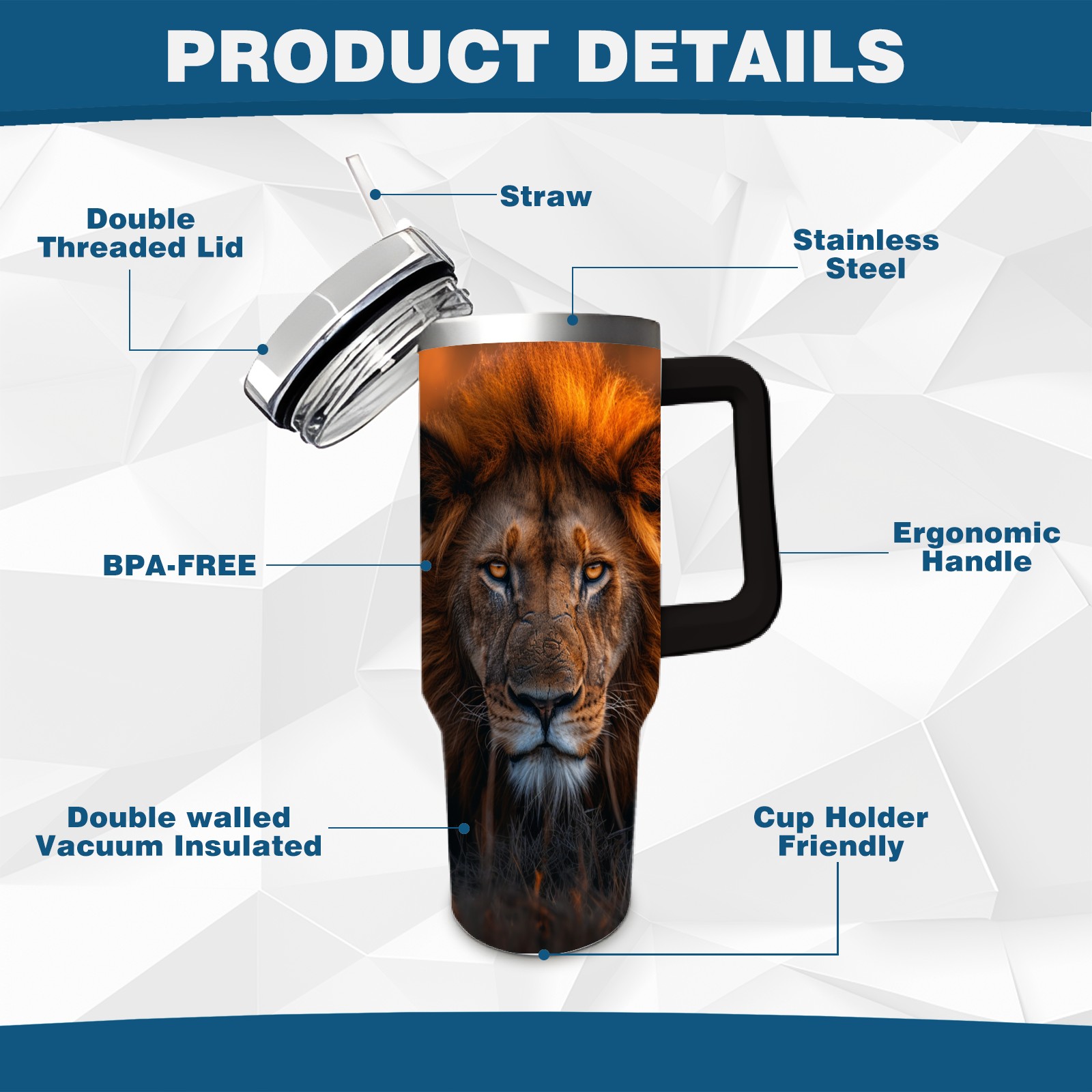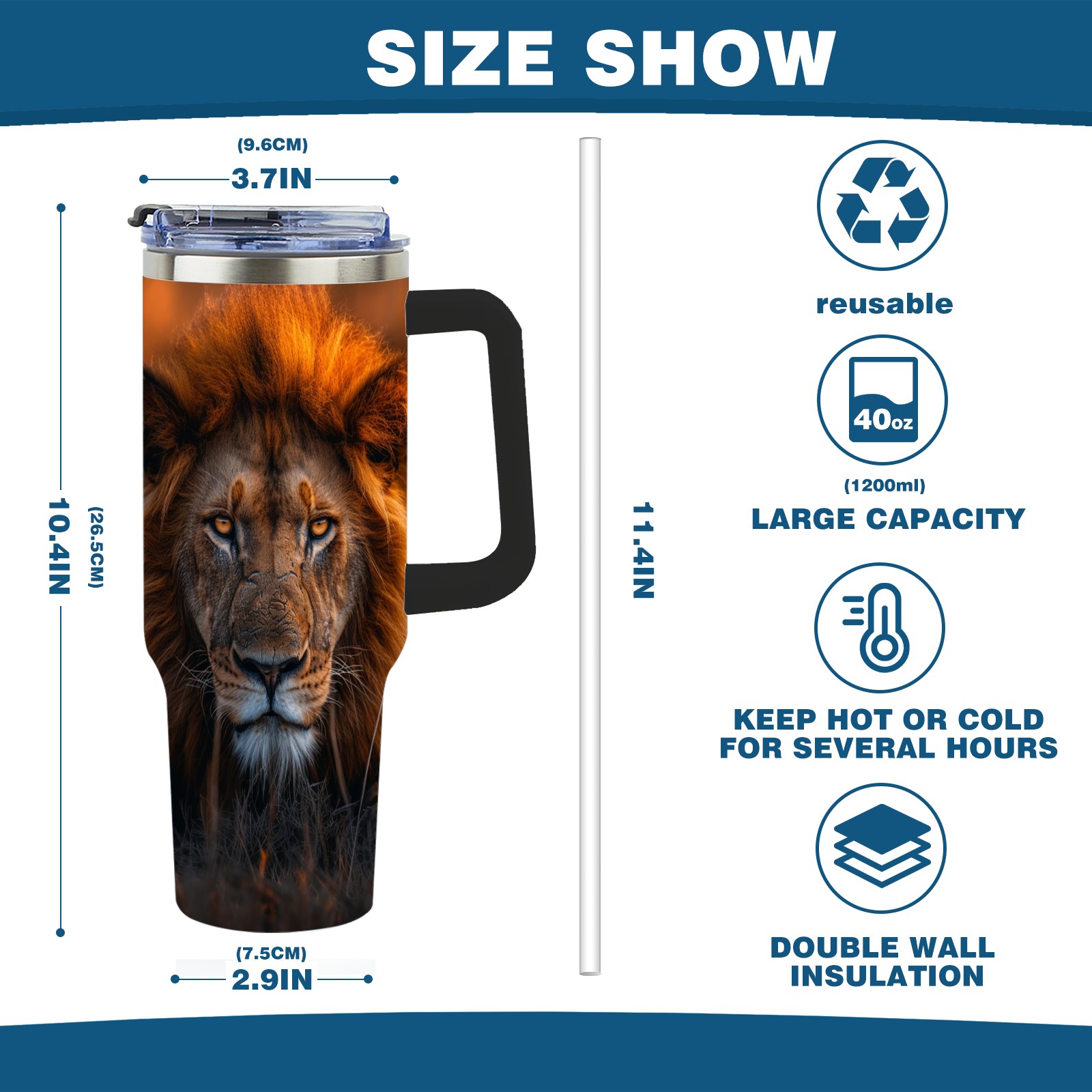 <p>40 Oz Tumbler Large Capacity Stainless Steel Insulated Tumbler Travel Mug Cup - With Handle and Straw, Suitable for Home and Outdoor Activities</p> <p>Features:</p> <p>Large Capacity: The 40oz design provides ample capacity to meet your hydration needs throughout the day.</p> <p>Double Insulation: Equipped with double-wall vacuum insulation technology to effectively maintain the temperature of your beverages, keeping drinks cold and hot.</p> <p>Portable Design: Comes with a sturdy handle and an easy-to-use straw for convenient carrying and drinking, making it suitable for various occasions.</p> <p>Stainless Steel Material: Made from food-grade stainless steel to ensure the safety of your drinking water.</p> <p>Easy to Clean: The wide mouth design allows for easy cleaning and is dishwasher safe for simple maintenance.</p> <p>Multifunctional: Ideal for outdoor activities, fitness, work, or home use.</p>