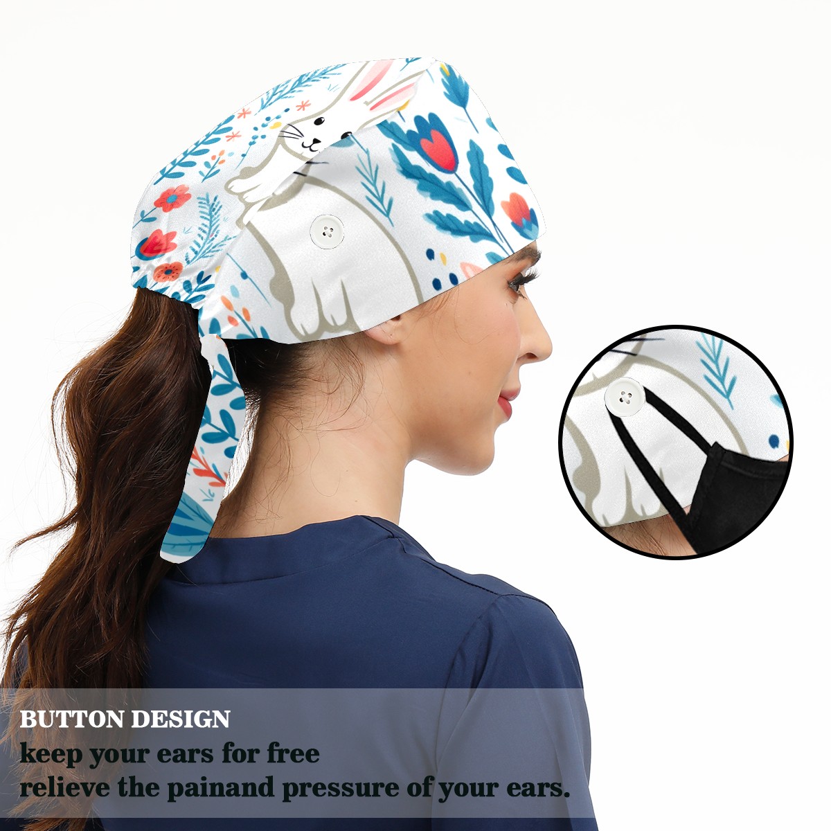 Breathable Working Cap for Women-Nursing Cap with Adjustable Tie,Soft Cotton Sweatband ,Medical Scrub Cap for Nurses Men’s Caps Easter 278
