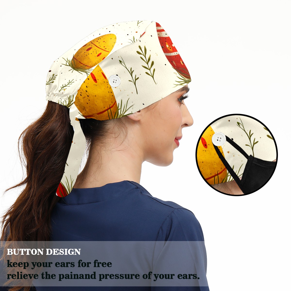 Breathable Working Cap for Women-Nursing Cap with Adjustable Tie,Soft Cotton Sweatband ,Medical Scrub Cap for Nurses Men’s Caps Easter 22
