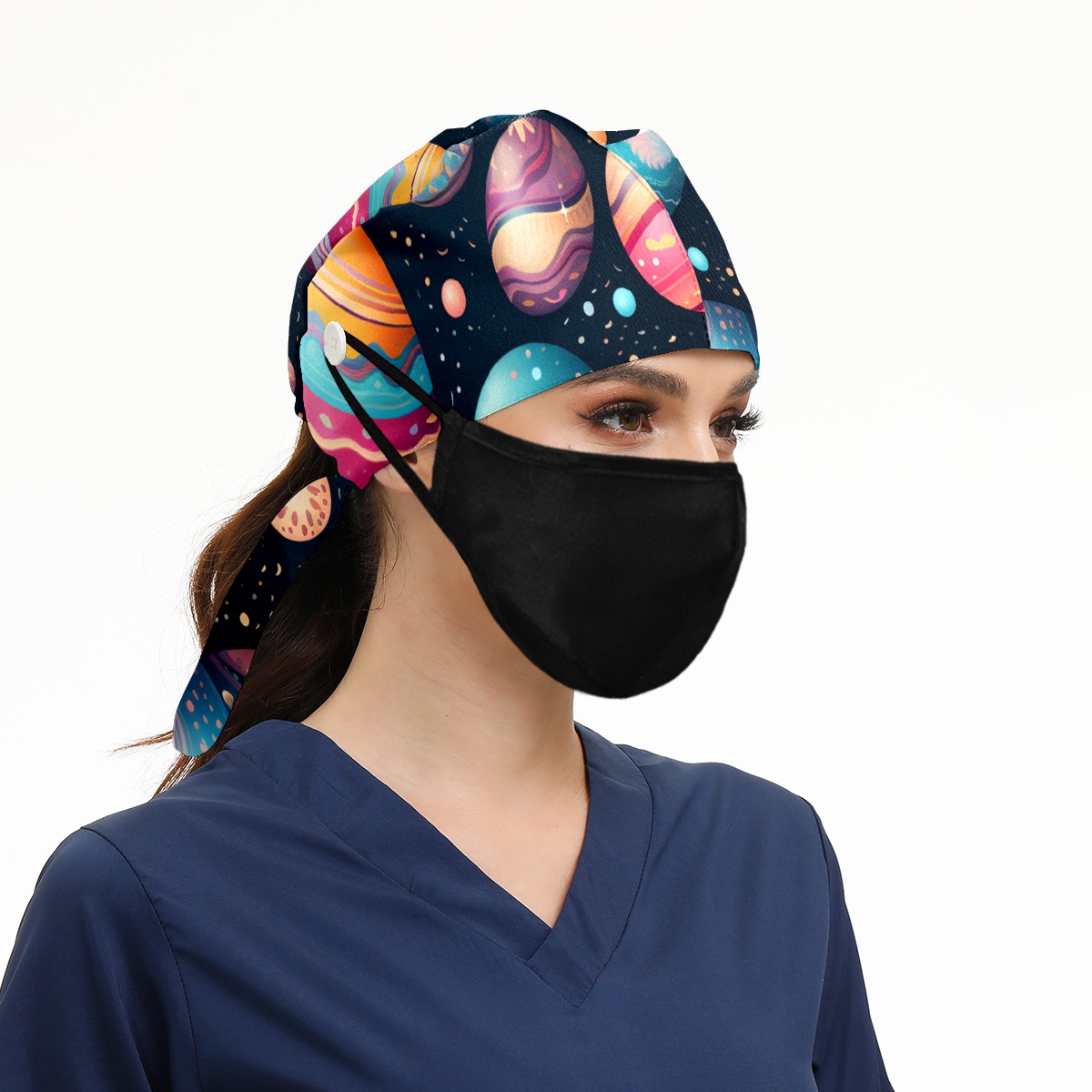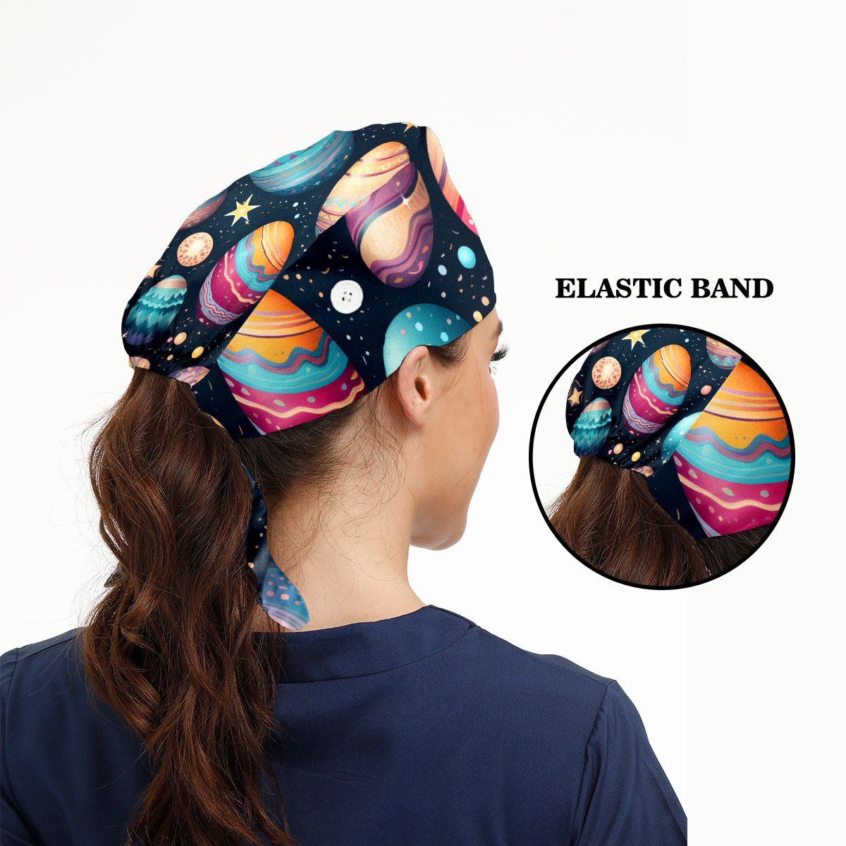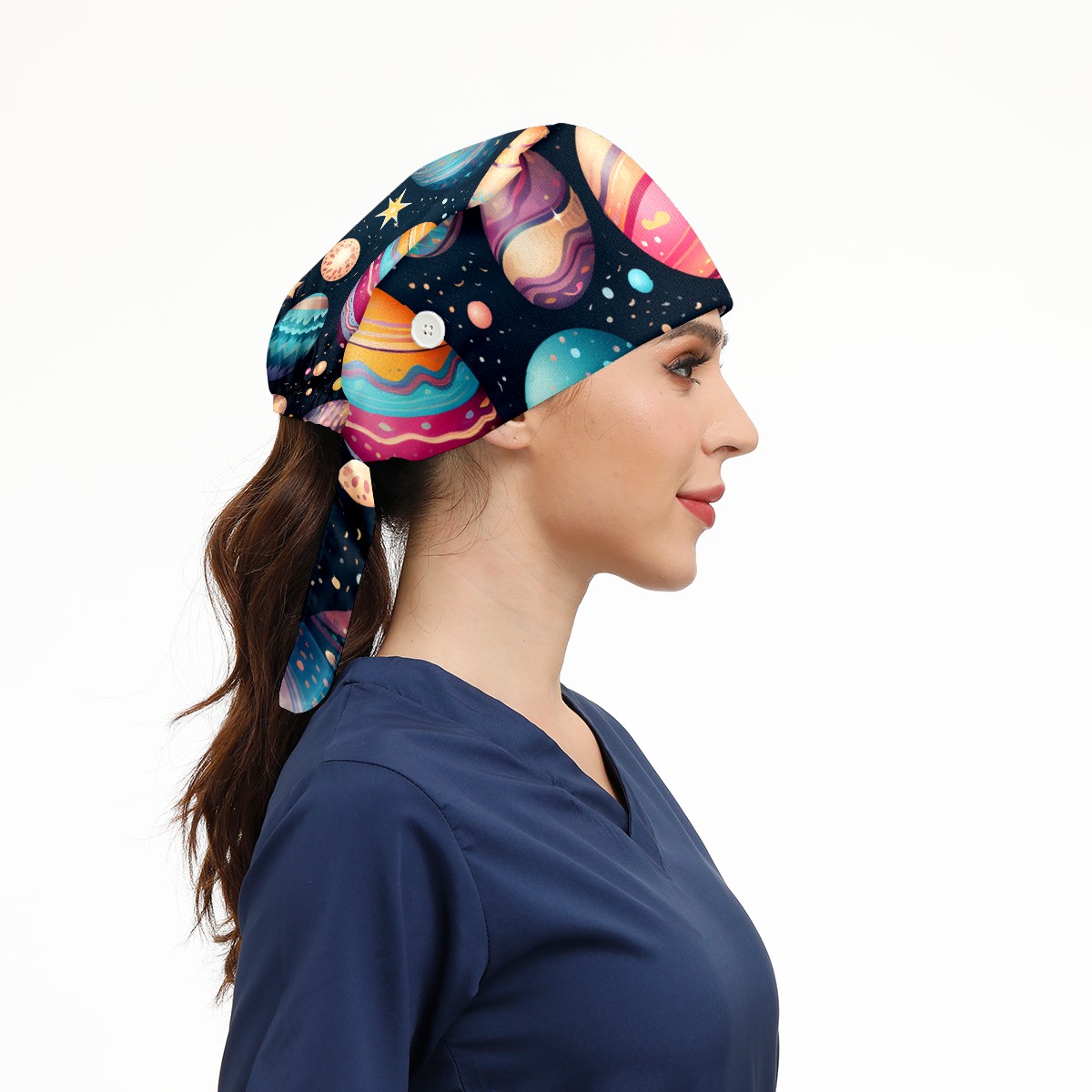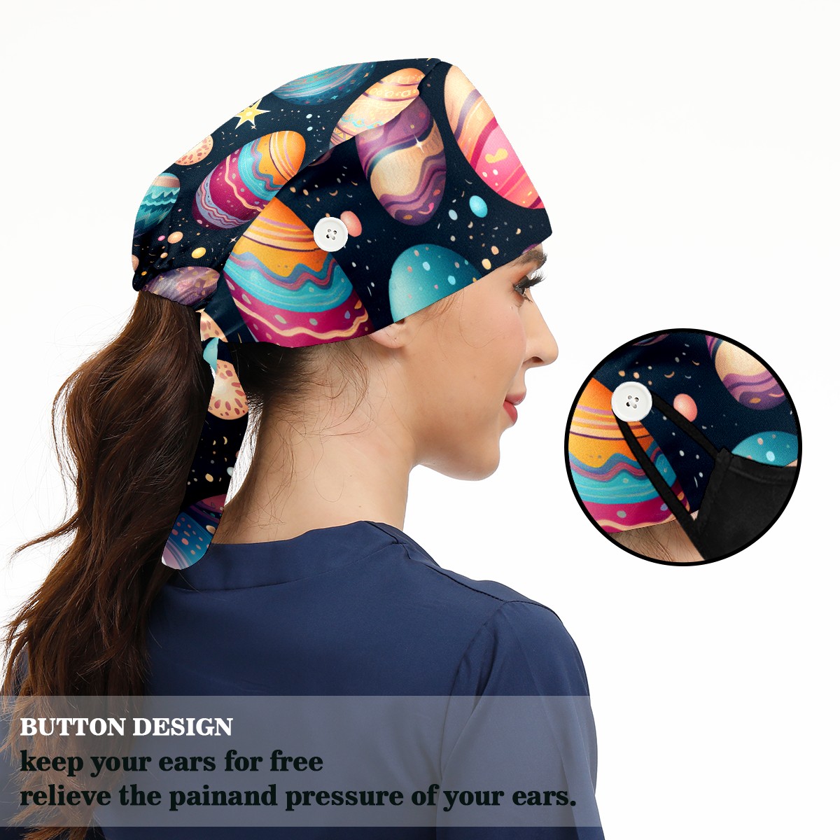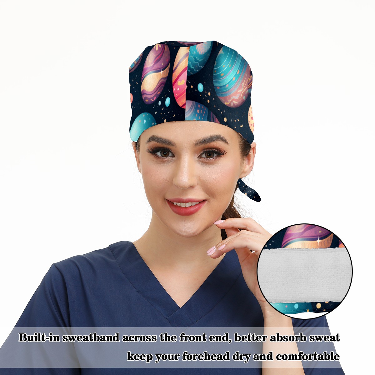 Breathable Working Cap for Women-Nursing Cap with Adjustable Tie,Soft Cotton Sweatband ,Medical Scrub Cap for Nurses Men’s Caps Easter Eggs (49)