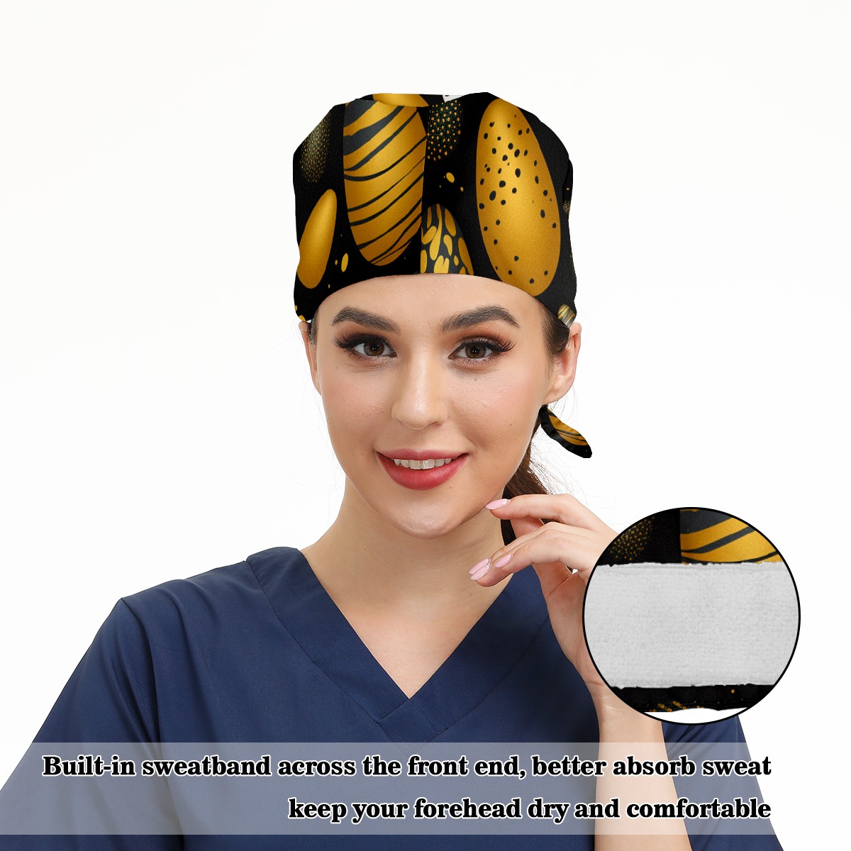 Breathable Working Cap for Women-Nursing Cap with Adjustable Tie,Soft Cotton Sweatband ,Medical Scrub Cap for Nurses Men’s Caps Easter Eggs (24)