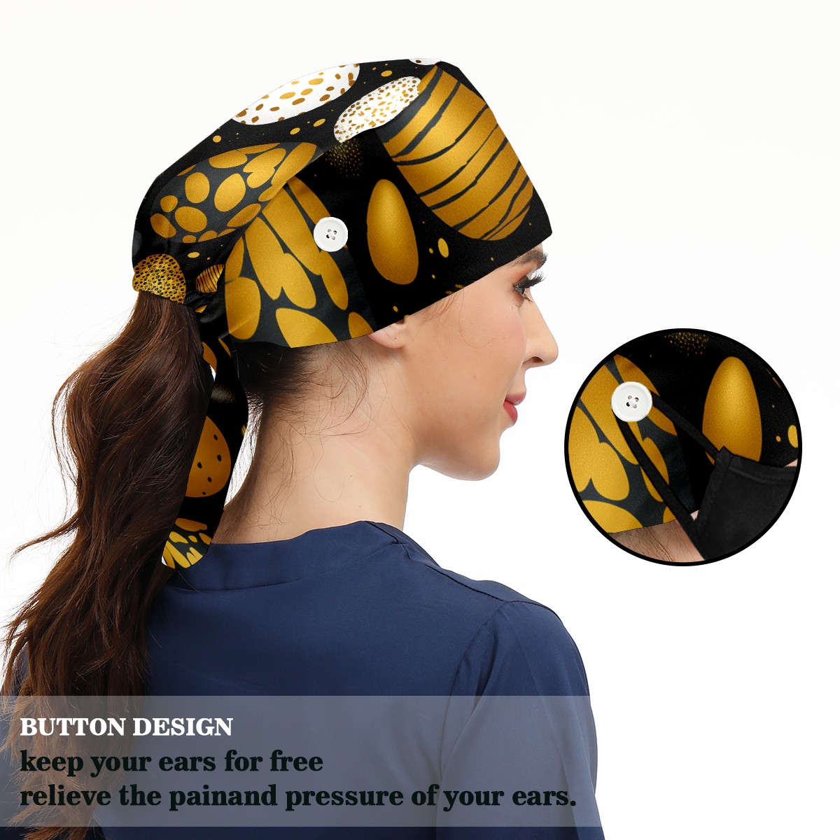 <b>Adjustable Working Cap for Women – Comfortable Medical Scrub Cap with Breathable Polyester and Cotton Towel Fabric, Single-Sided Print, Perfect for Nursing and Everyday Use – Stylish Scrub Caps for Women </b><br> <b>Size:</b> 12x17x37cm / 4.7x6.7x14.6inch <br> <br> ✨<b>Comfort Meets Functionality</b>: Our Working Caps are crafted from a breathable polyester blend and soft cotton terry cloth, ensuring that you stay comfortable and stylish during long shifts as a nurse or surgeon. <br> <br> ✨<b>Adjustable Fit for Everyone</b>: Featuring a convenient adjustable tie, our nursing caps cater to various head sizes, making them the perfect scrub hats for women and men alike – because comfort should never be one-size-fits-all!<br> <br> ✨<b>Sweat No More</b>: Each surgical cap comes with an internal sweat-wicking terry cloth band that keeps you dry and focused, so you can say goodbye to distractions and hello to a productive workday in your favorite medical scrub cap.<br> <br> ✨<b>Stylish & Functional Design</b>: Our single-sided printed working caps feature fun and trendy designs, allowing you to express your personality while maintaining professionalism in the operating room or at the clinic!<br> <br> ✨<b>Dedicated Customer Support</b>: We stand by our products! If you have any questions about your scrub cap or need assistance, our friendly customer service team is ready to help – ensuring your satisfaction with every purchase!