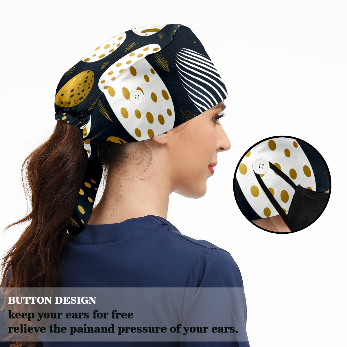 • <b>Adjustable Working Cap for Women – Comfortable Medical Scrub Cap with Breathable Polyester and Cotton Towel Fabric, Single-Sided Print, Perfect for Nursing and Everyday Use – Stylish Scrub Caps for Women </b><br> <b>Size:</b> 12x17x37cm / 4.7x6.7x14.6inch <br> <br> ✨<b>Comfort Meets Functionality</b>: Our Working Caps are crafted from a breathable polyester blend and soft cotton terry cloth, ensuring that you stay comfortable and stylish during long shifts as a nurse or surgeon. <br> <br> ✨<b>Adjustable Fit for Everyone</b>: Featuring a convenient adjustable tie, our nursing caps cater to various head sizes, making them the perfect scrub hats for women and men alike – because comfort should never be one-size-fits-all!<br> <br> ✨<b>Sweat No More</b>: Each surgical cap comes with an internal sweat-wicking terry cloth band that keeps you dry and focused, so you can say goodbye to distractions and hello to a productive workday in your favorite medical scrub cap.<br> <br> ✨<b>Stylish & Functional Design</b>: Our single-sided printed working caps feature fun and trendy designs, allowing you to express your personality while maintaining professionalism in the operating room or at the clinic!<br> <br> ✨<b>Dedicated Customer Support</b>: We stand by our products! If you have any questions about your scrub cap or need assistance, our friendly customer service team is ready to help – ensuring your satisfaction with every purchase!