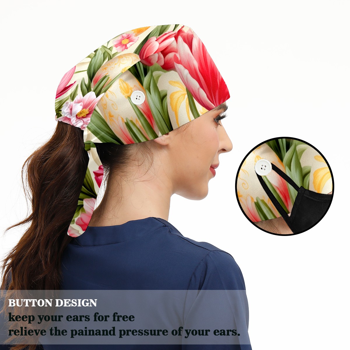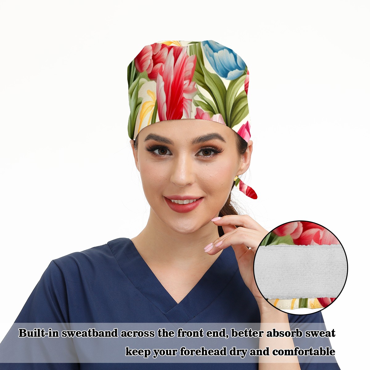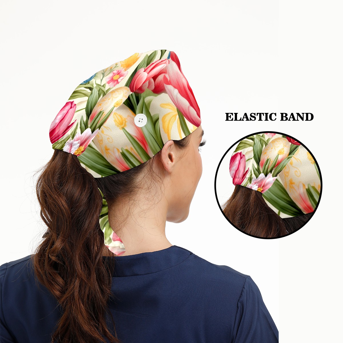 Breathable Working Cap for Women-Nursing Cap with Adjustable Tie,Soft Cotton Sweatband ,Medical Scrub Cap for Nurses Men’s Caps Easter (200)