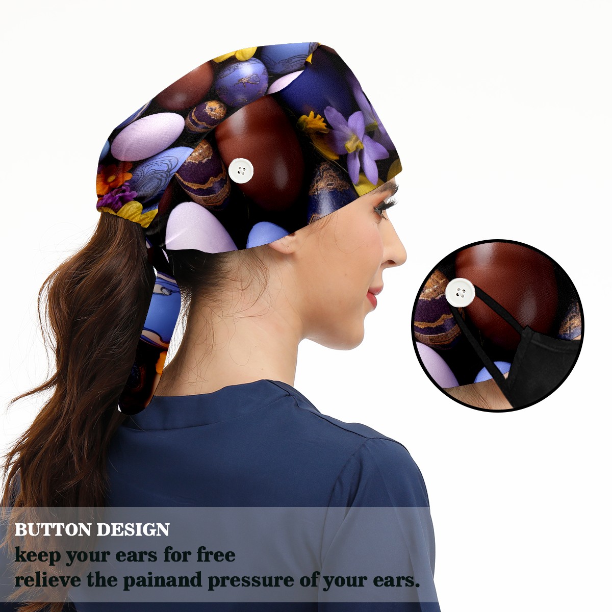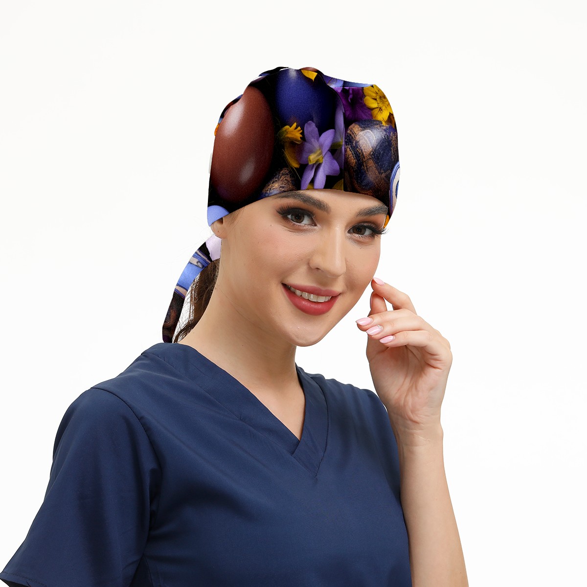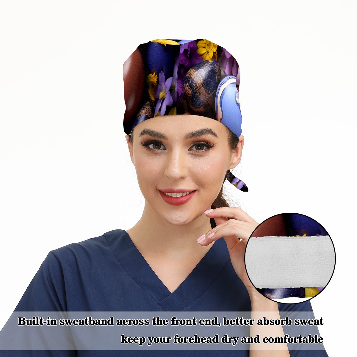 Breathable Working Cap for Women-Nursing Cap with Adjustable Tie,Soft Cotton Sweatband ,Medical Scrub Cap for Nurses Men’s Caps Easter (166)