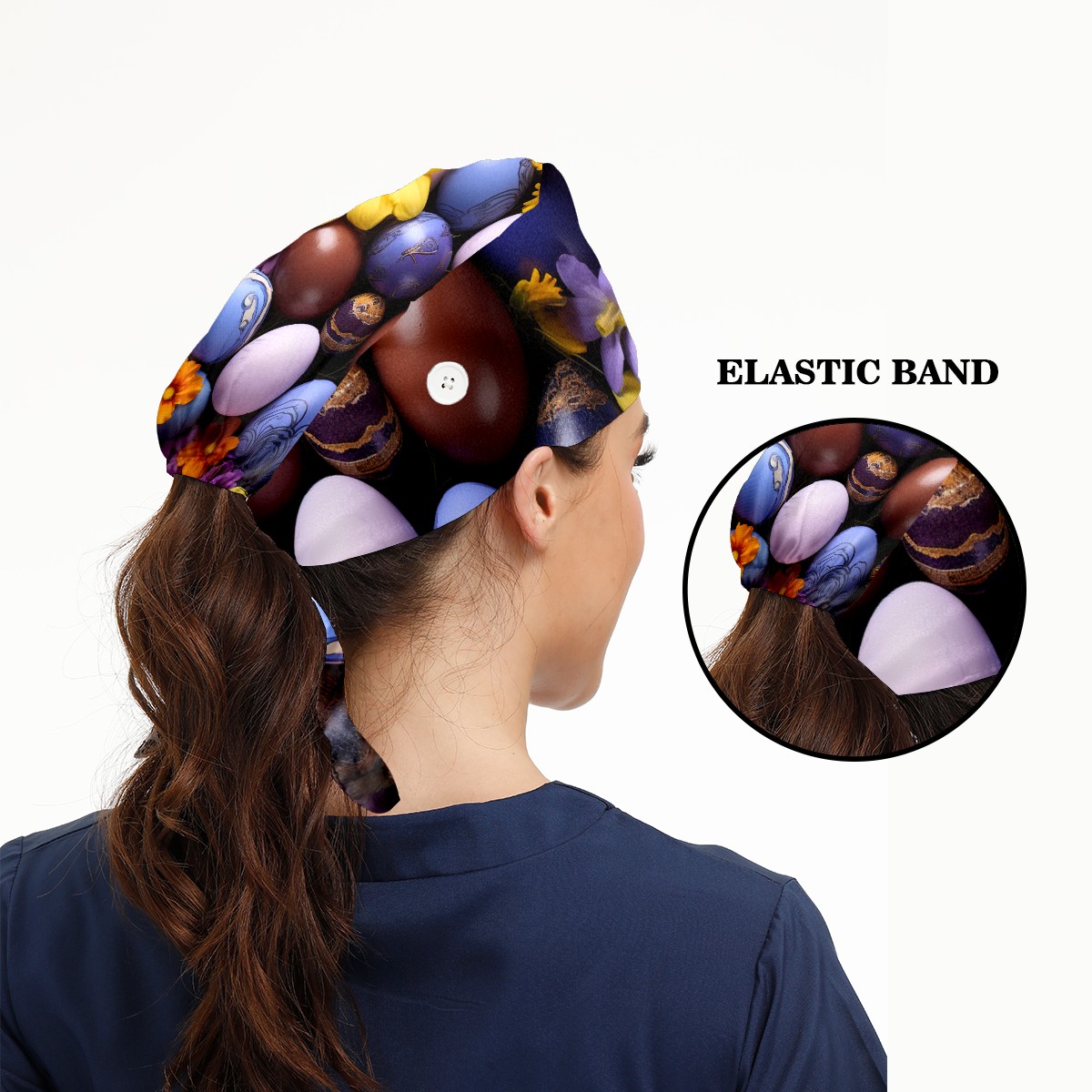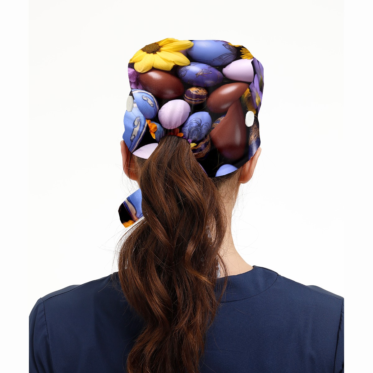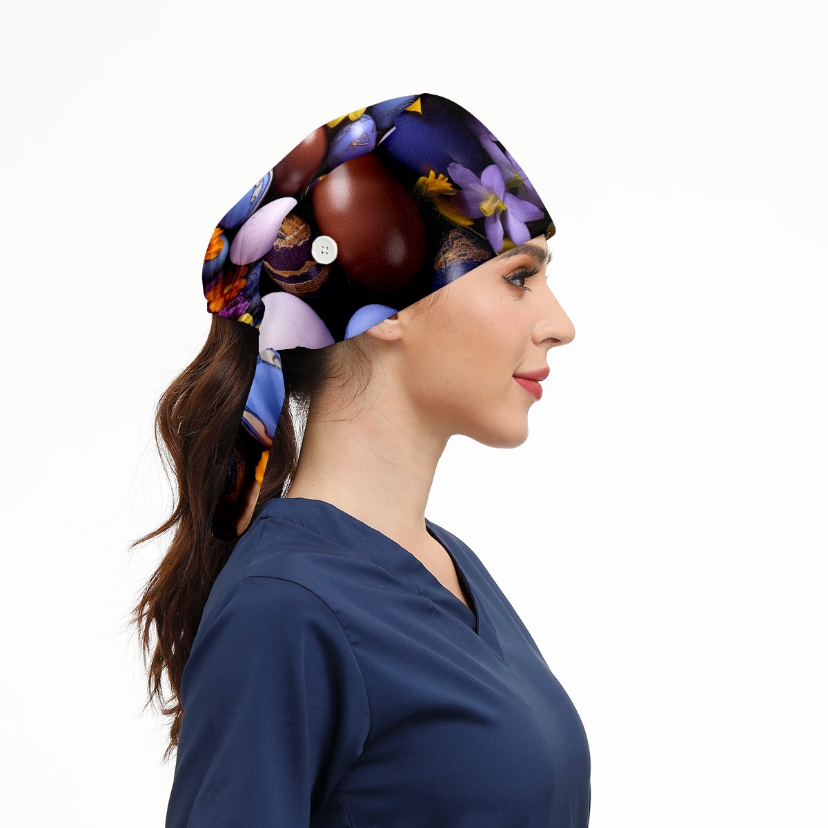 Breathable Working Cap for Women-Nursing Cap with Adjustable Tie,Soft Cotton Sweatband ,Medical Scrub Cap for Nurses Men’s Caps Easter (166)