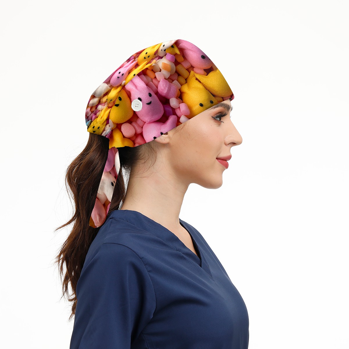 Breathable Working Cap for Women-Nursing Cap with Adjustable Tie,Soft Cotton Sweatband ,Medical Scrub Cap for Nurses Men’s Caps Easter25