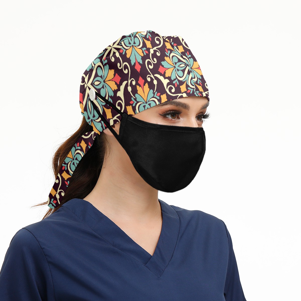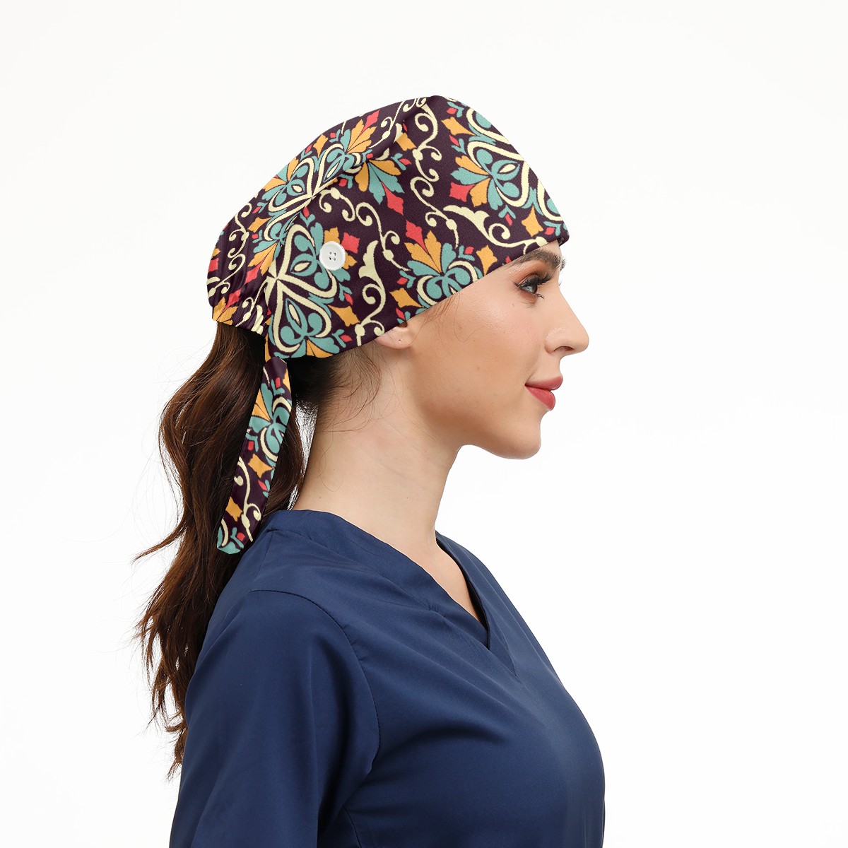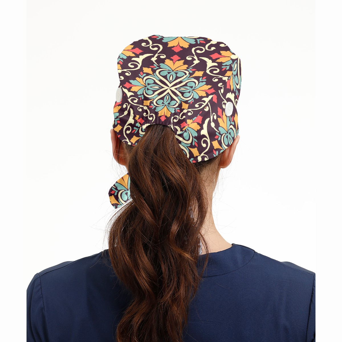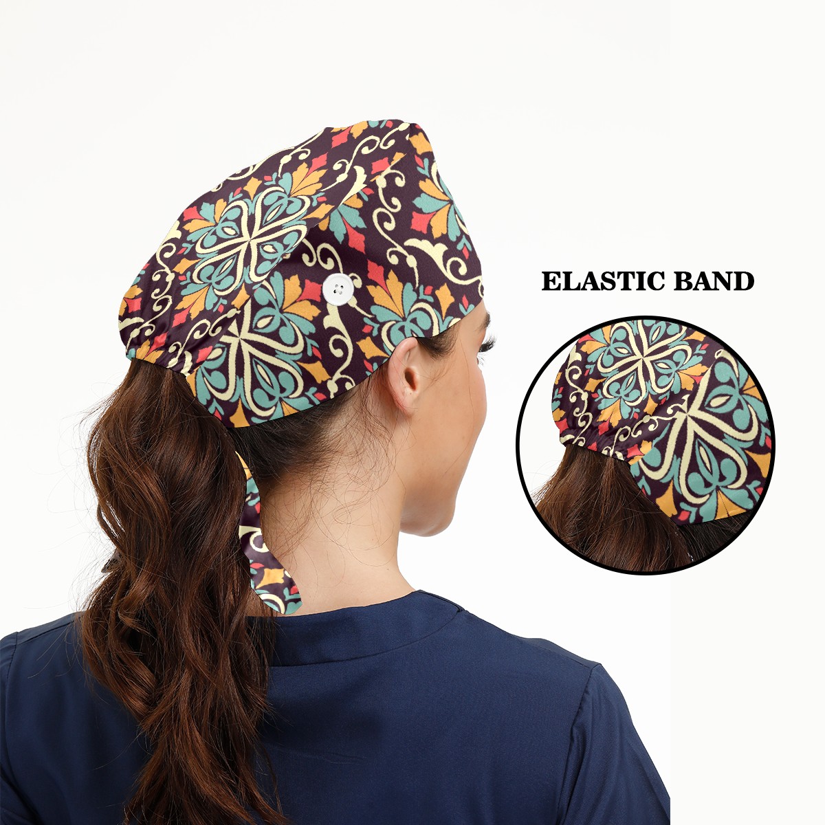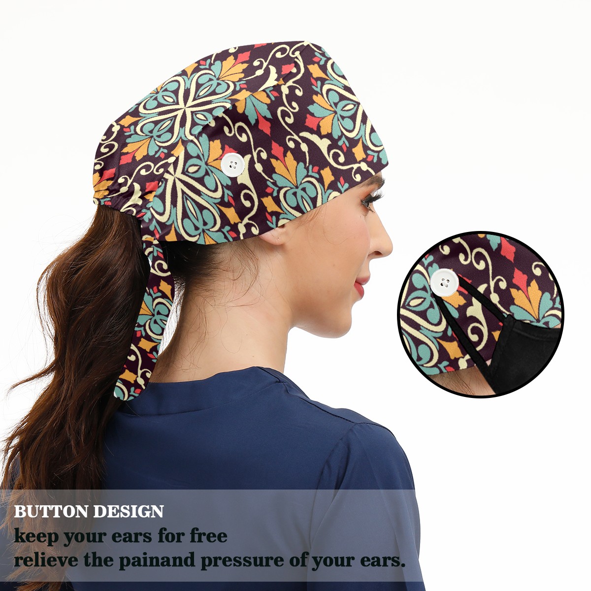 Breathable Working Cap for Women-Nursing Cap with Adjustable Tie,Soft Cotton Sweatband ,Medical Scrub Cap for Nurses Men’s Caps Eastern Ethnic Arabian Style Pattern