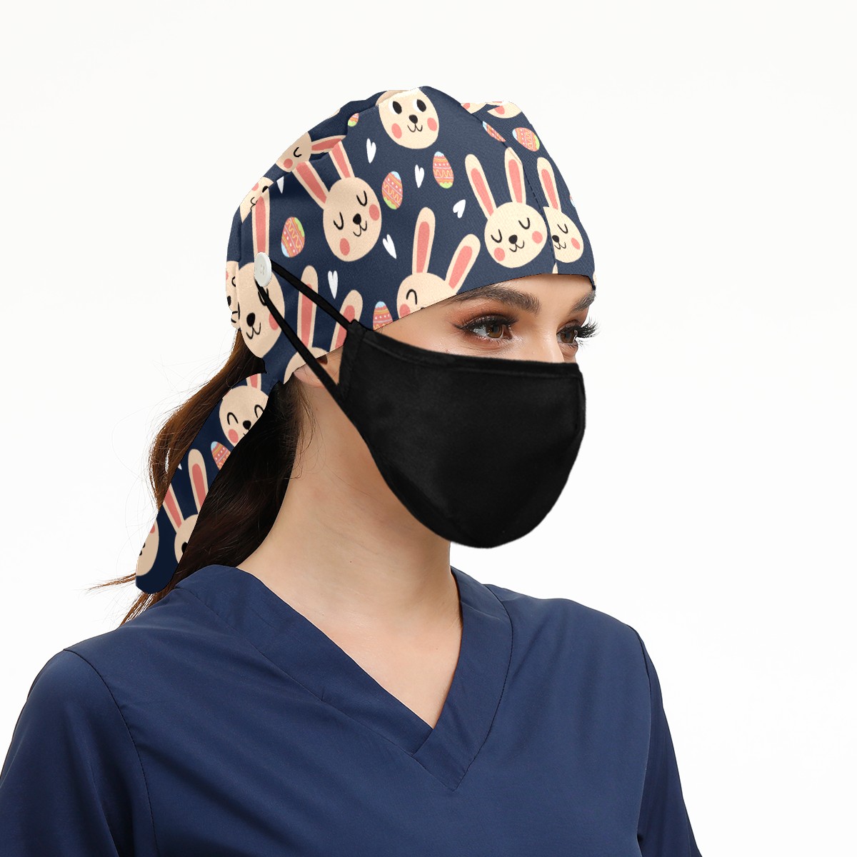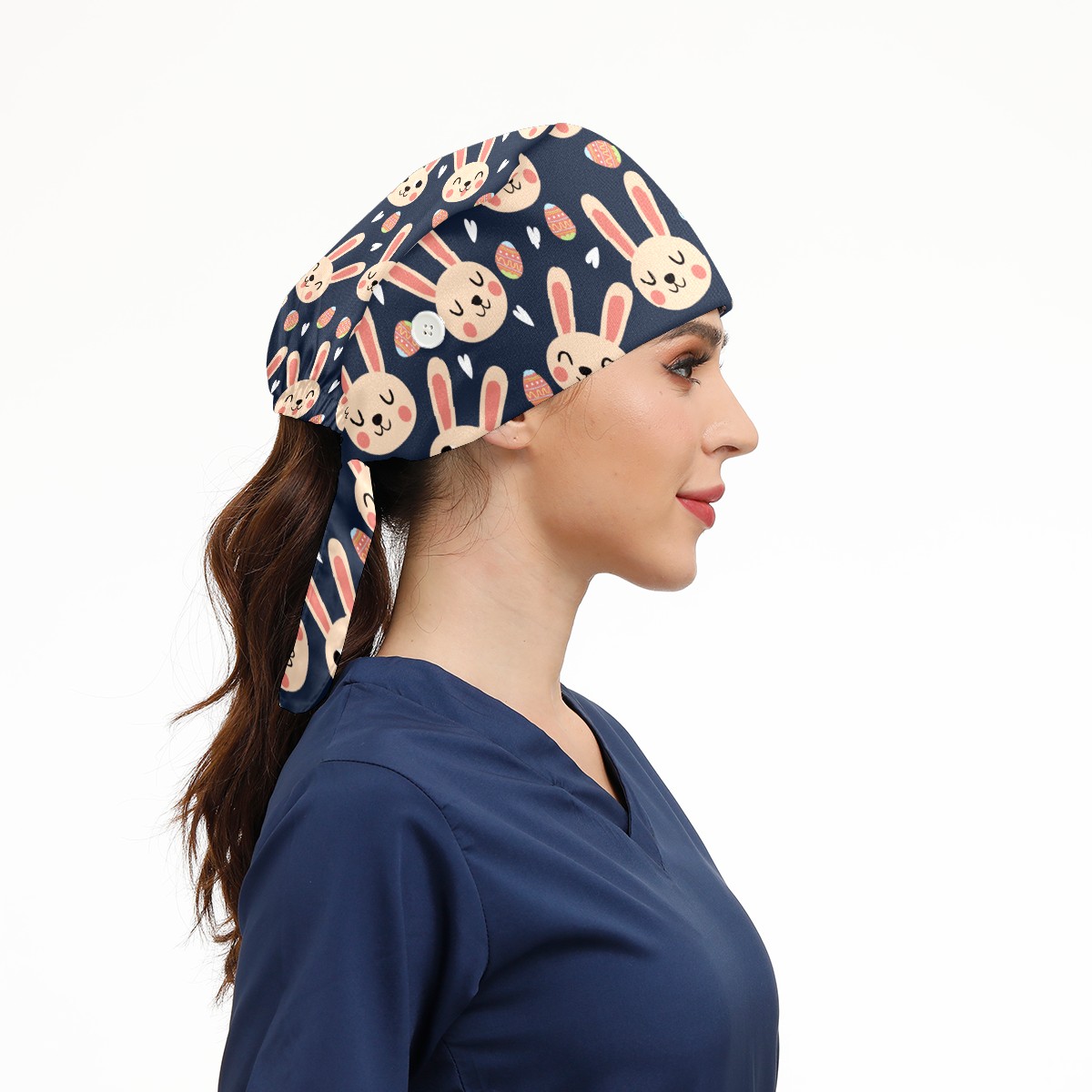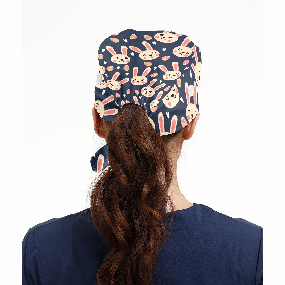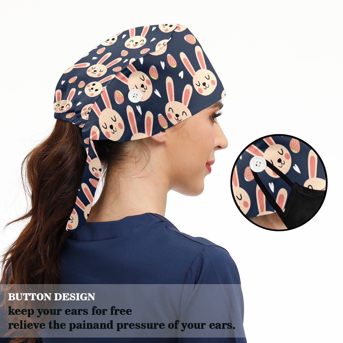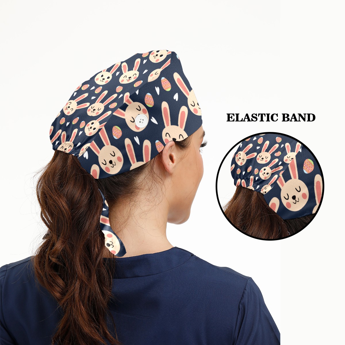 Breathable Working Cap for Women-Nursing Cap with Adjustable Tie,Soft Cotton Sweatband ,Medical Scrub Cap for Nurses Men’s Caps Easter Day Bunny Rabbit