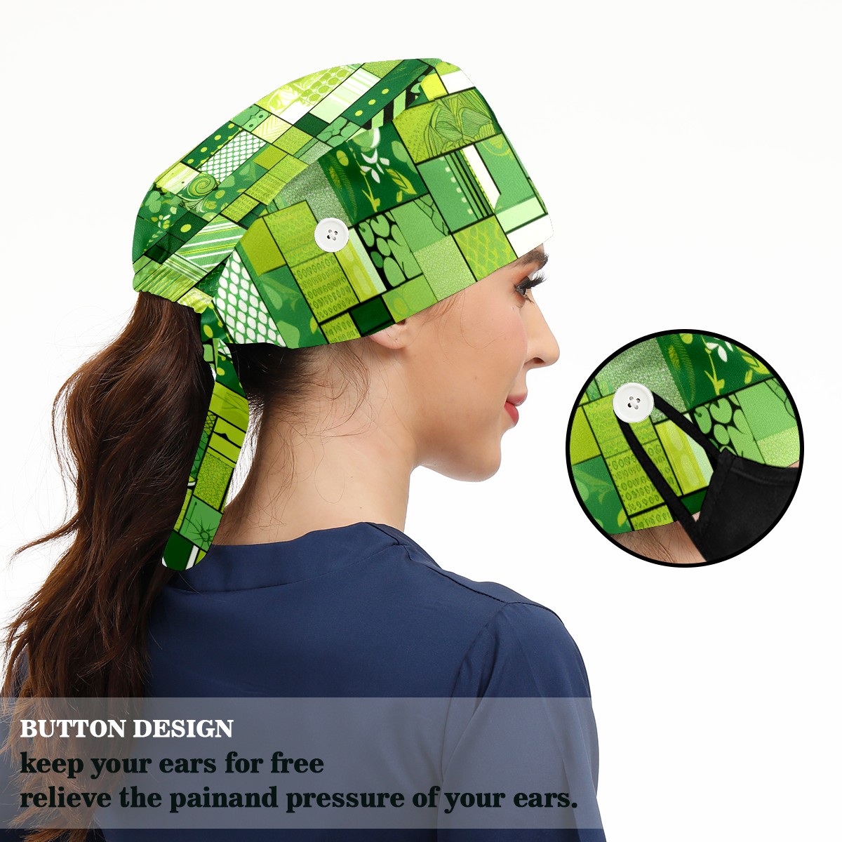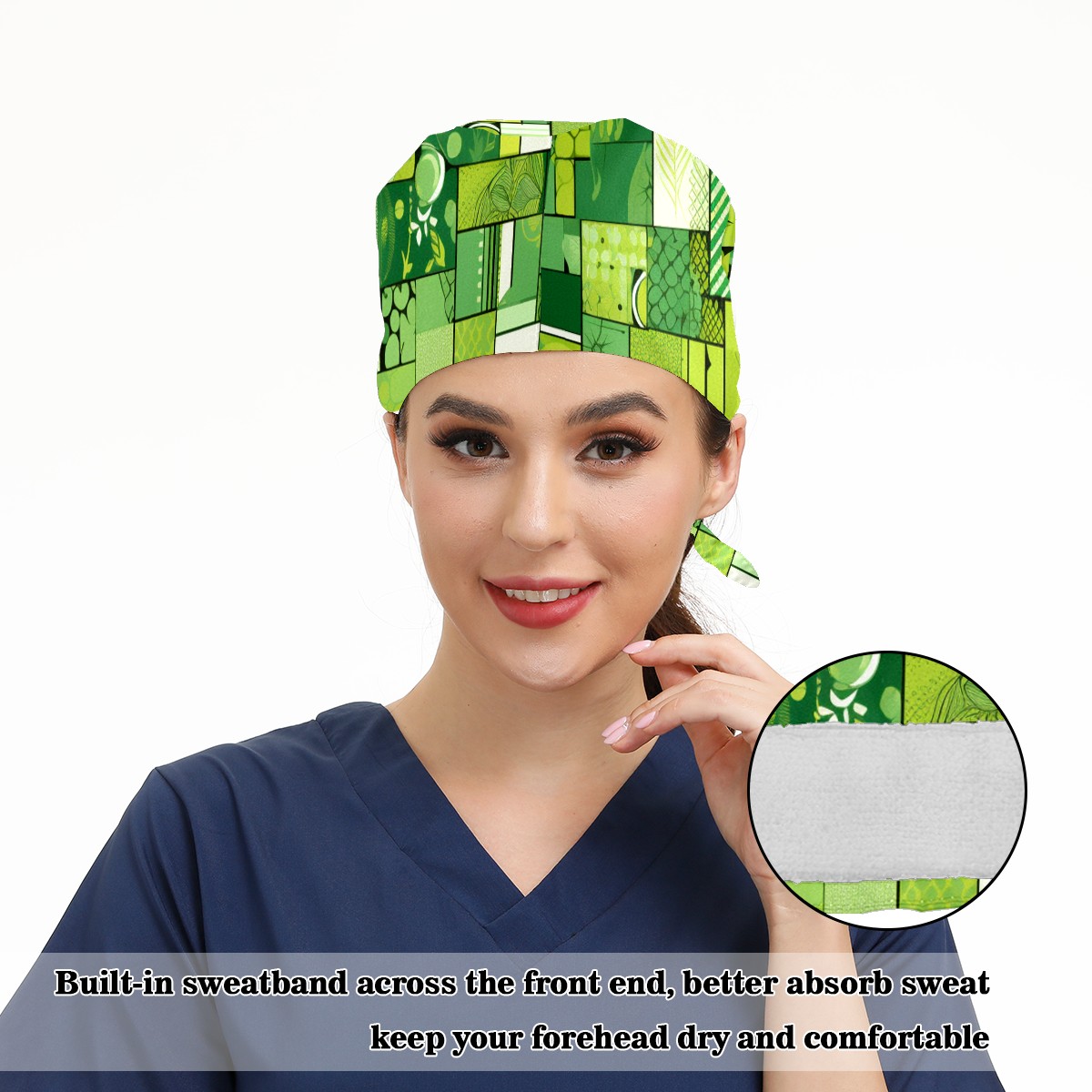 Breathable Working Cap for Women-Nursing Cap with Adjustable Tie,Soft Cotton Sweatband ,Medical Scrub Cap for Nurses Men’s Caps ST Patrick 85