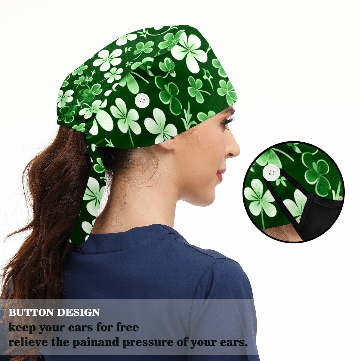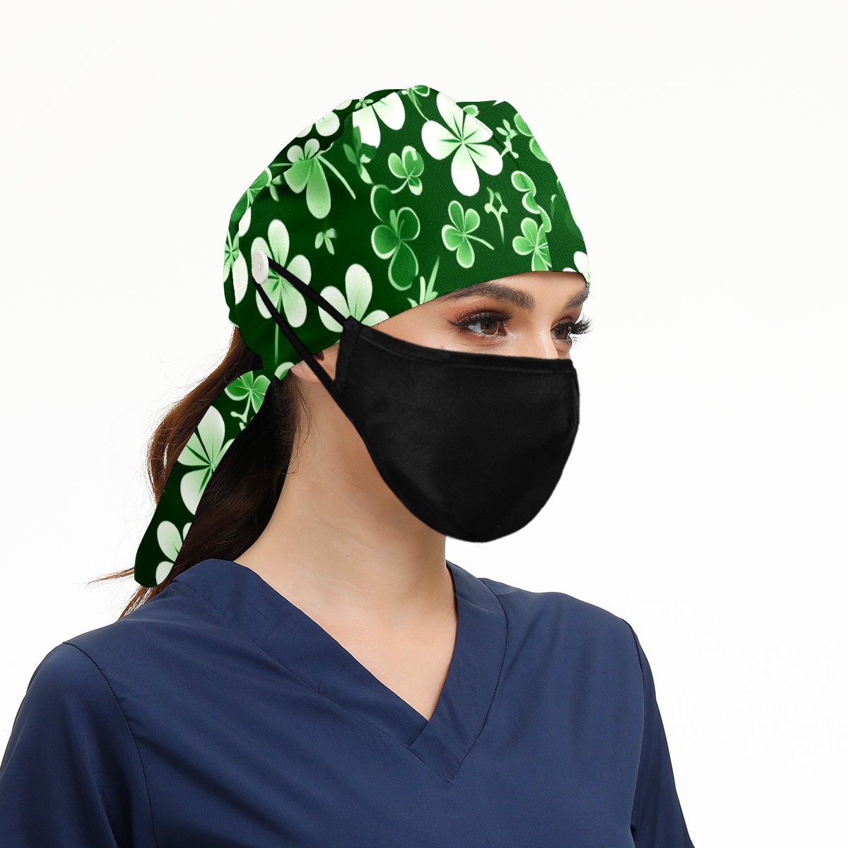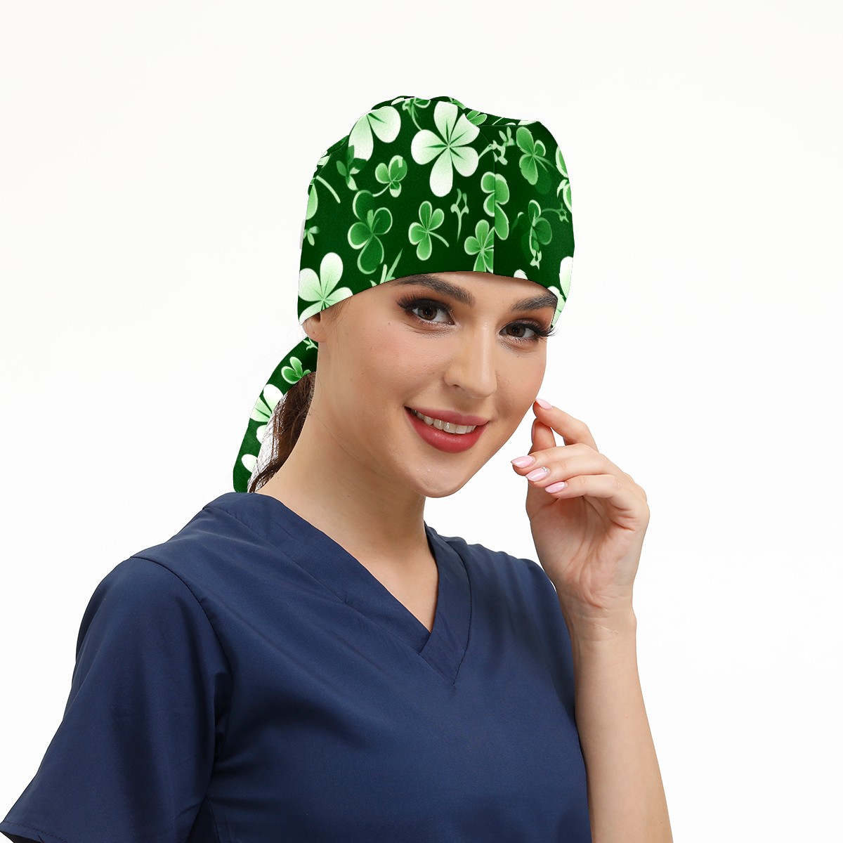 Breathable Working Cap for Women-Nursing Cap with Adjustable Tie,Soft Cotton Sweatband ,Medical Scrub Cap for Nurses Men’s Caps St Patrick's Day (178)