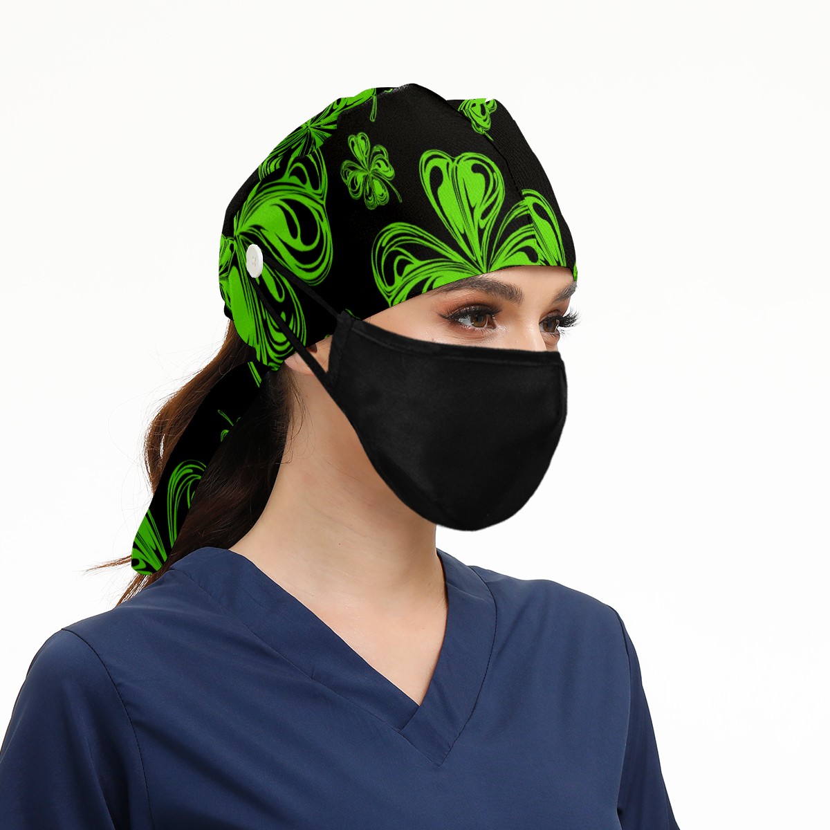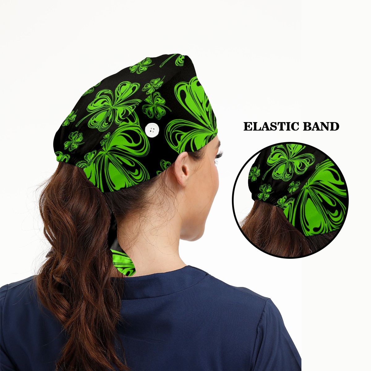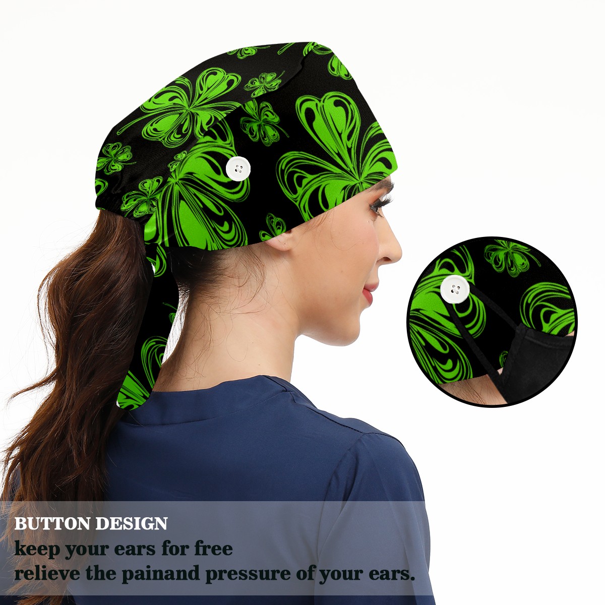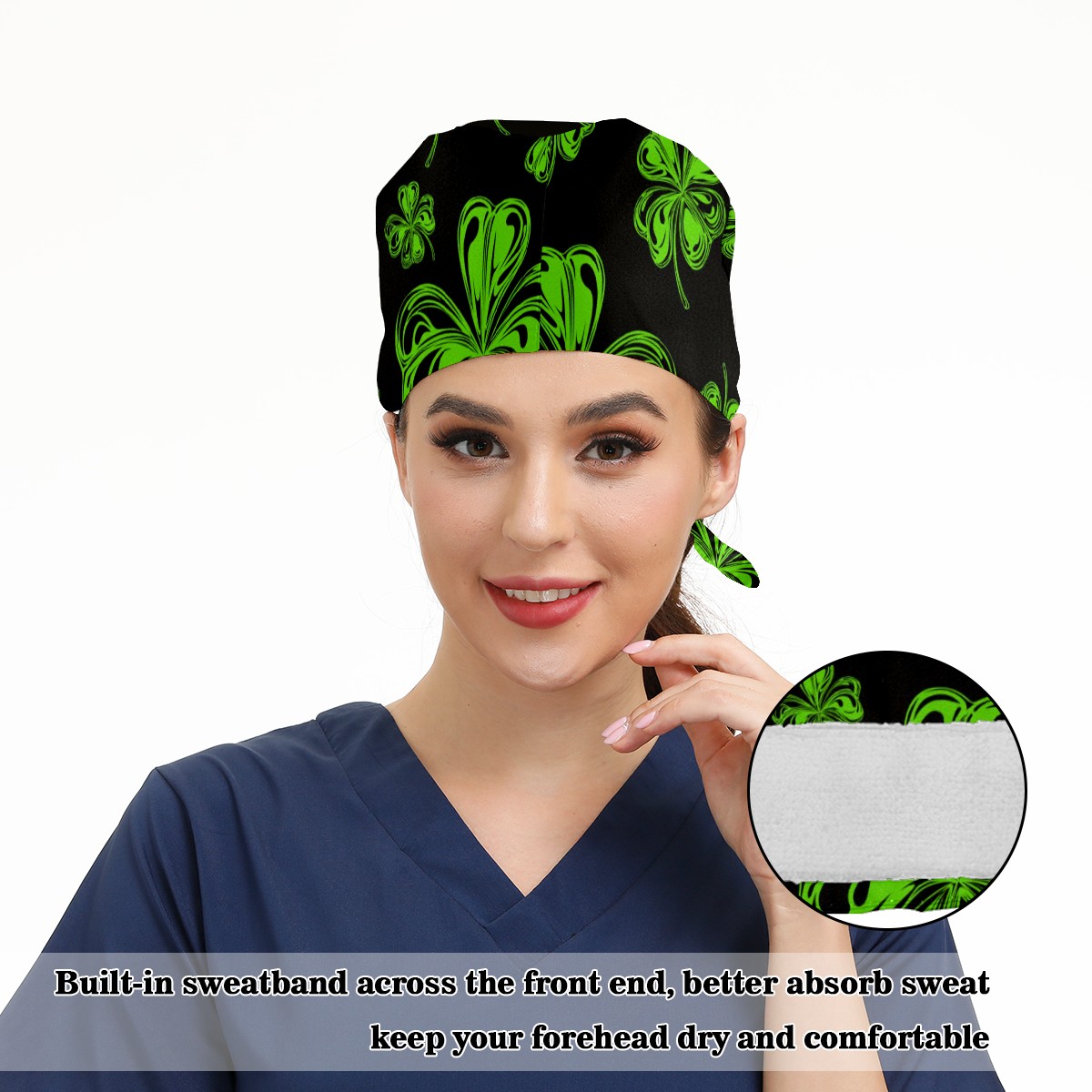 Breathable Working Cap for Women-Nursing Cap with Adjustable Tie,Soft Cotton Sweatband ,Medical Scrub Cap for Nurses Men’s Caps St Patrick Day And Clover Leaves