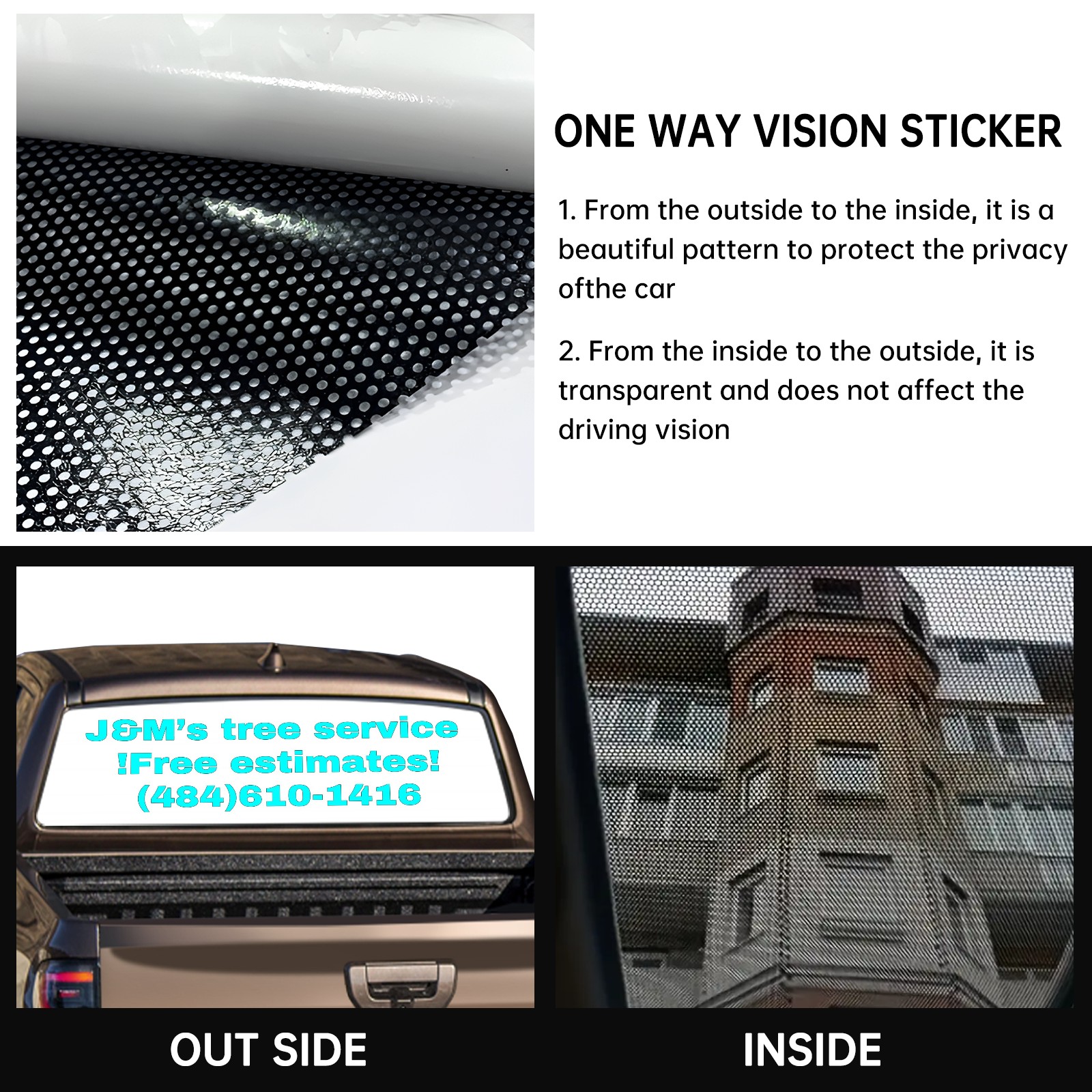 • <p><strong>Truck Rear Window Graphics Decals Pickup Trucks Back Window Film Stickers 66" x 22" Perforated Vinyl Wrap Stickers Decorations for Car Rear Window</strong></p><p><strong><br /></strong></p><p><strong>Features :</strong></p><p>- Size of the rear window decals for trucks is 66x22 Inches (168x56cm).</p><p>- High quality perforated vinyl window film, one way vision sticker.</p><p>- Perforated is see through from the inside but not from outside.</p><p>- Clear printing, waterproof and durable.</p><p>- The car back window graphics stickers fits most truck and makes your vehicle more beautiful.&nbsp;</p><p><br /></p><p><strong>【Installation Instructions】</strong></p><p><strong>1. CLEAN SURFACE -</strong> Clean the rear window thoroughly and make sure the surface clean.</p><p><strong>2. STICK THE DECALS -</strong> Tear off the paper on the back and stick the decal on the window.</p><p><strong>3. SCRAPE OFF AIR BUBBLES -</strong> Use a squeegee or other card to scrape off the excess air bubbles.</p><p><strong>4. TRIM THE EXCESS -</strong> Use a knife to cut off the excess stickers of the window, finally complete.</p><p><br /></p><p>1. Please measure the size before purchasing, back window graphics decal for truck can be cut to your desired size.</p><p>2.The graphics stickers for truck back window is a great gift for yourself also can as a birthday / halloween / christmas gift for your friends and family.</p>