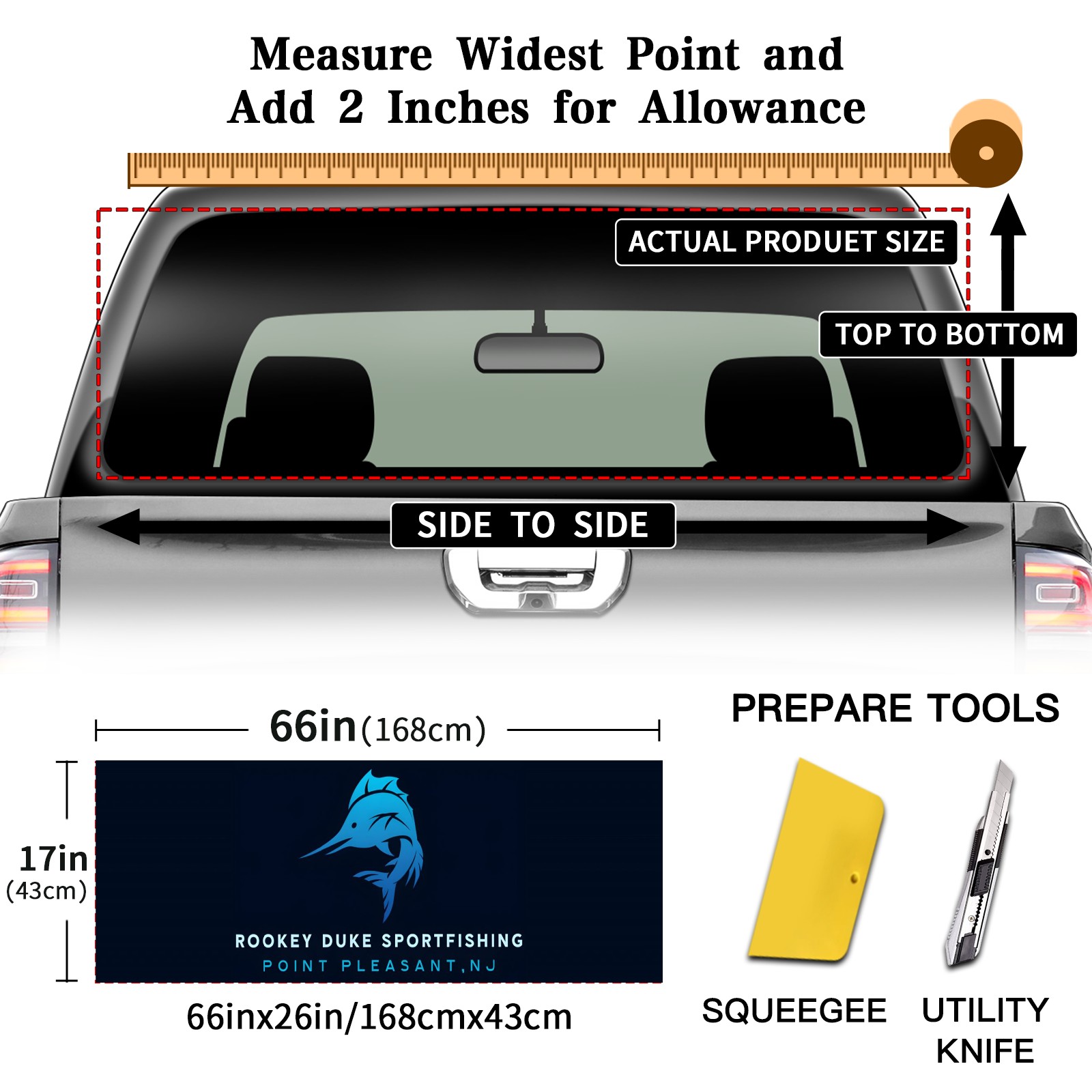 • <p><strong>Truck Rear Window Graphics Decals Pickup Trucks Back Window Film Stickers 66" x 22" Perforated Vinyl Wrap Stickers Decorations for Car Rear Window</strong></p><p><strong><br /></strong></p><p><strong>Features :</strong></p><p>- Size of the rear window decals for trucks is 66x22 Inches (168x56cm).</p><p>- High quality perforated vinyl window film, one way vision sticker.</p><p>- Perforated is see through from the inside but not from outside.</p><p>- Clear printing, waterproof and durable.</p><p>- The car back window graphics stickers fits most truck and makes your vehicle more beautiful.&nbsp;</p><p><br /></p><p><strong>【Installation Instructions】</strong></p><p><strong>1. CLEAN SURFACE -</strong> Clean the rear window thoroughly and make sure the surface clean.</p><p><strong>2. STICK THE DECALS -</strong> Tear off the paper on the back and stick the decal on the window.</p><p><strong>3. SCRAPE OFF AIR BUBBLES -</strong> Use a squeegee or other card to scrape off the excess air bubbles.</p><p><strong>4. TRIM THE EXCESS -</strong> Use a knife to cut off the excess stickers of the window, finally complete.</p><p><br /></p><p>1. Please measure the size before purchasing, back window graphics decal for truck can be cut to your desired size.</p><p>2.The graphics stickers for truck back window is a great gift for yourself also can as a birthday / halloween / christmas gift for your friends and family.</p>