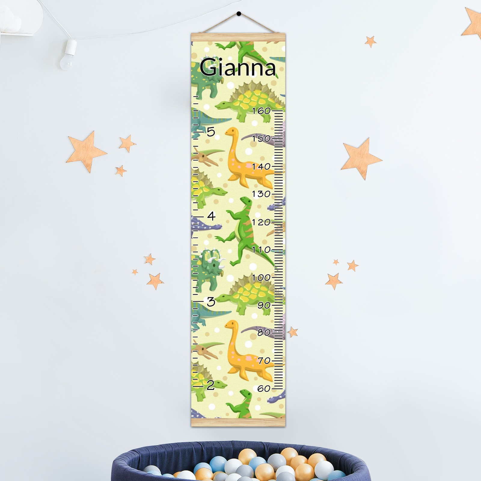 Personalized Kids Name Growth Chart Ruler for Wall Wood Frame Canvas Height Measure Chart 13.4x56 in Hanging Growth Chart Cartoon Dinosaur Animal1.21 Boys Girls Room Decor