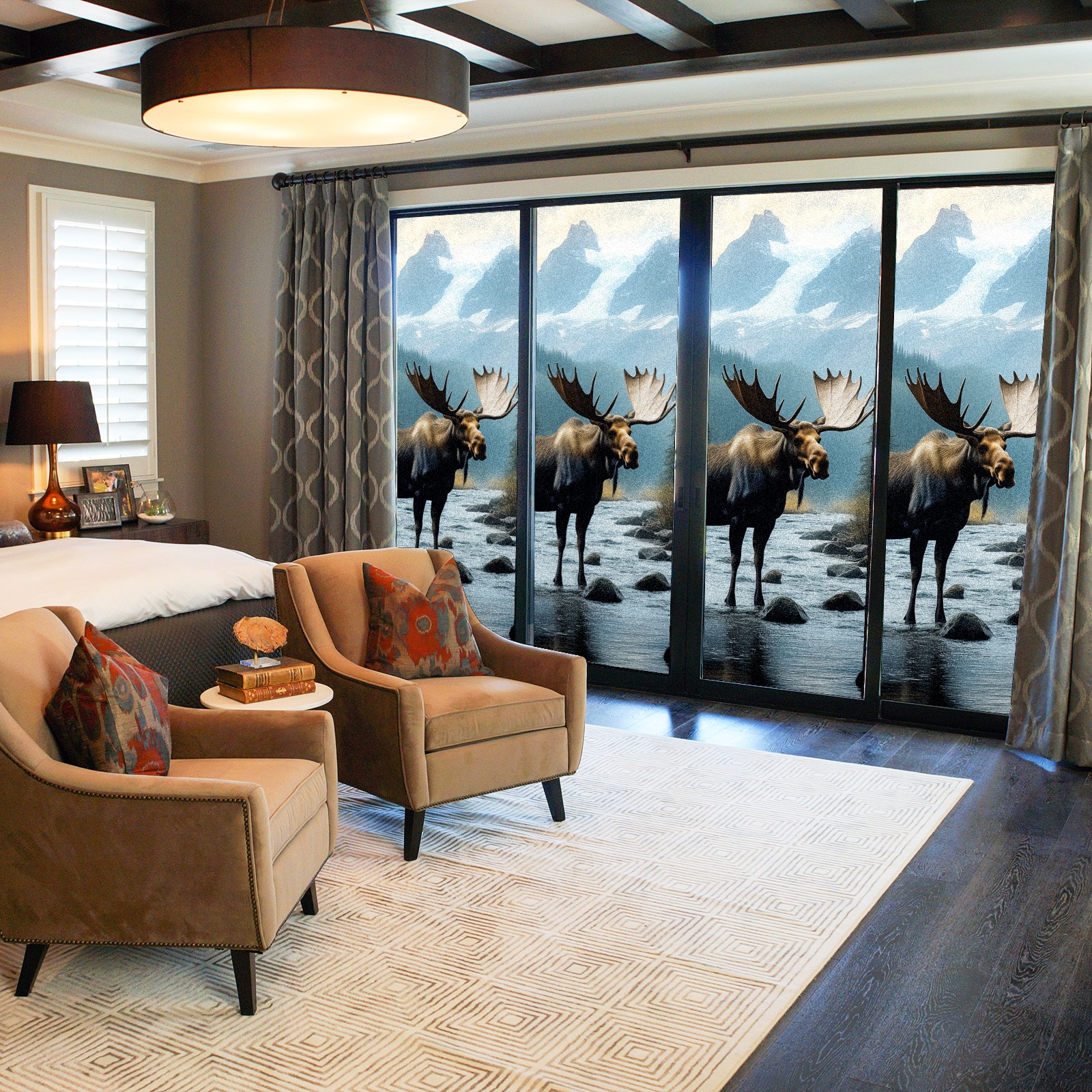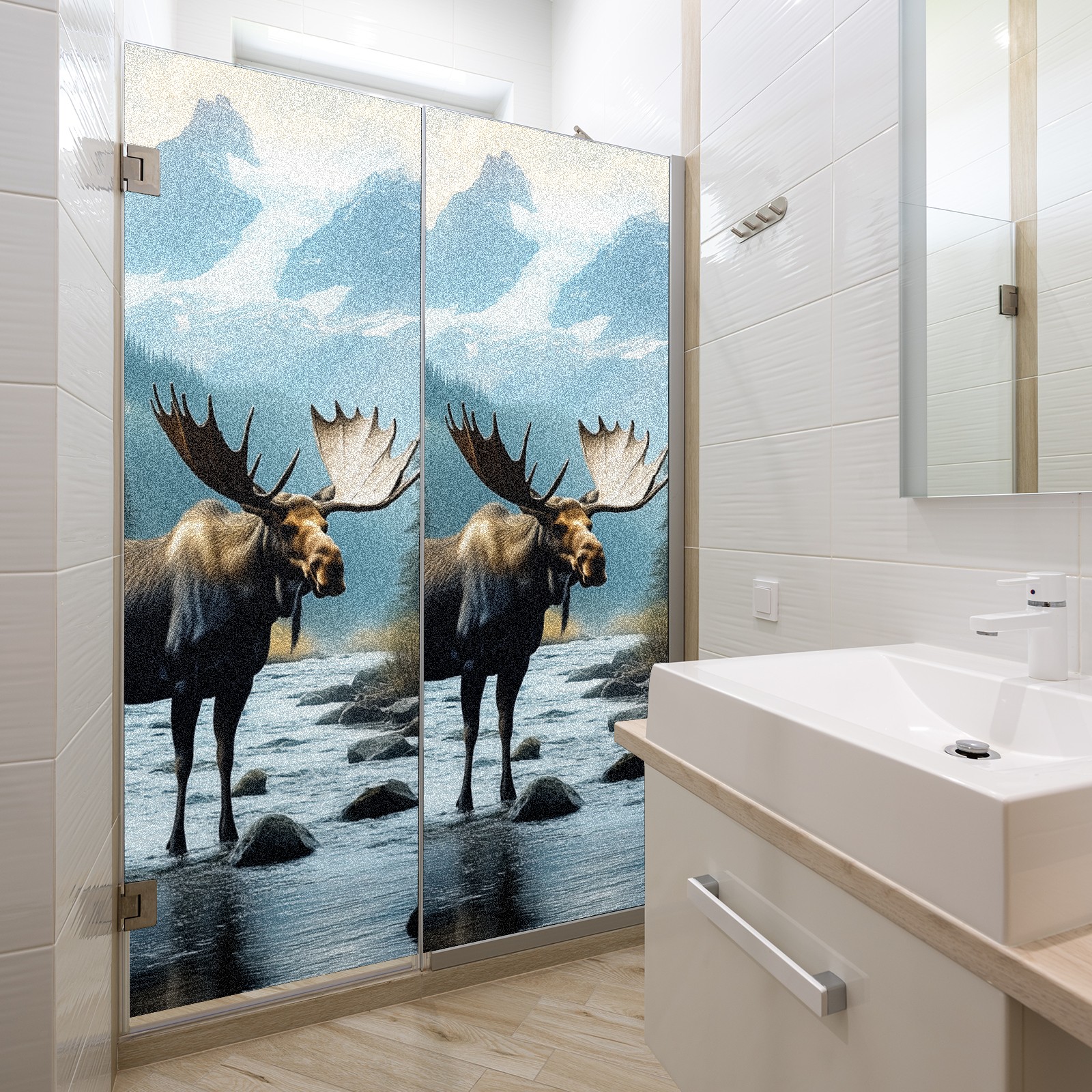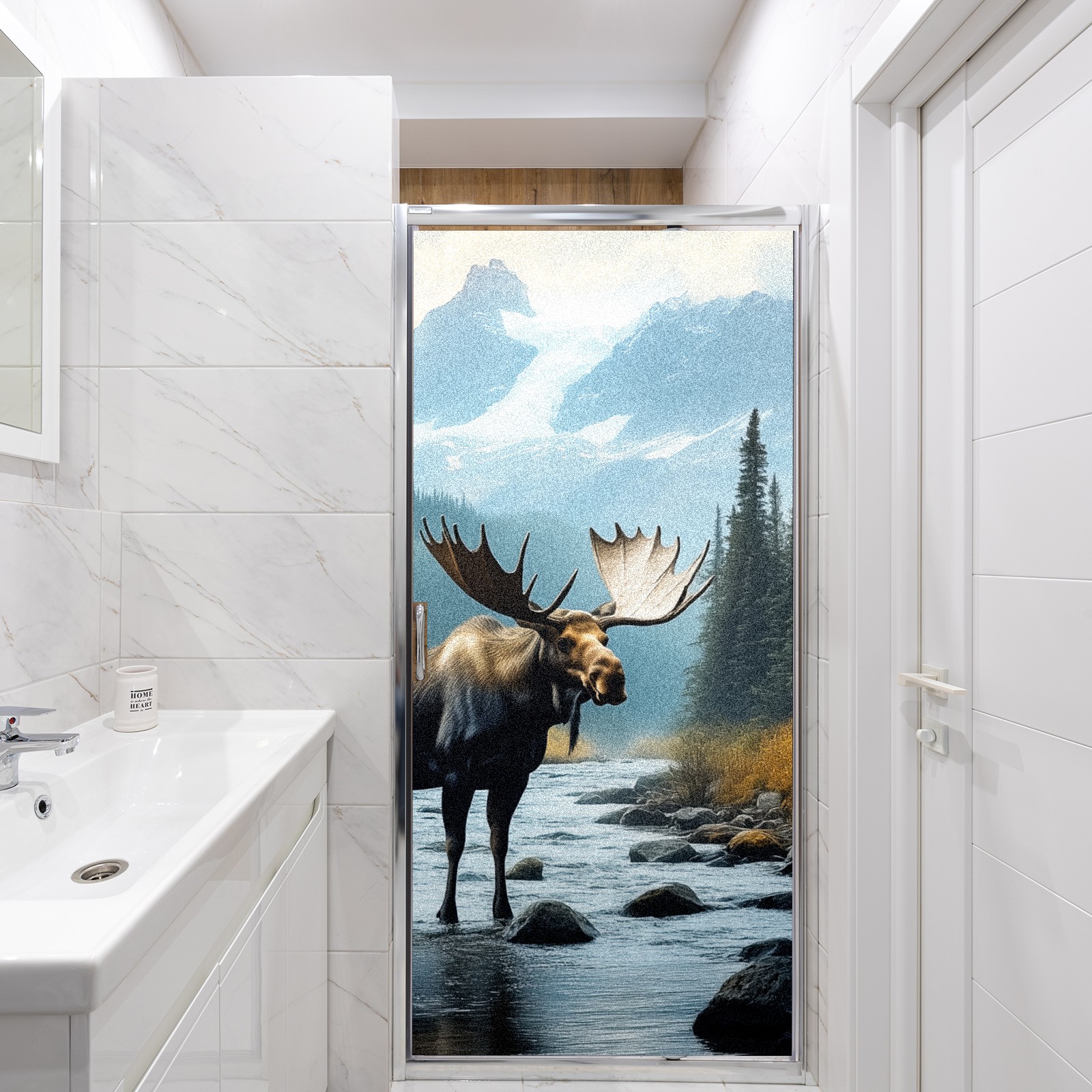 MSINMKOK Window Privacy Film Moose Decorative Frosted Glass Window Film for Glass Door Bathroom Window 17.7'' x 23.6'' Non-Adhesive Window Decals Stickers