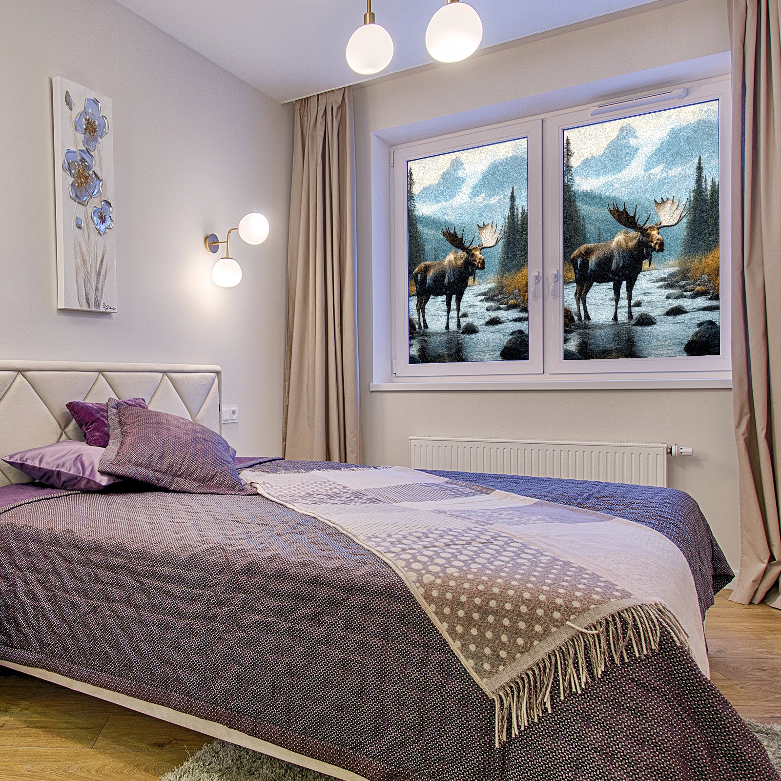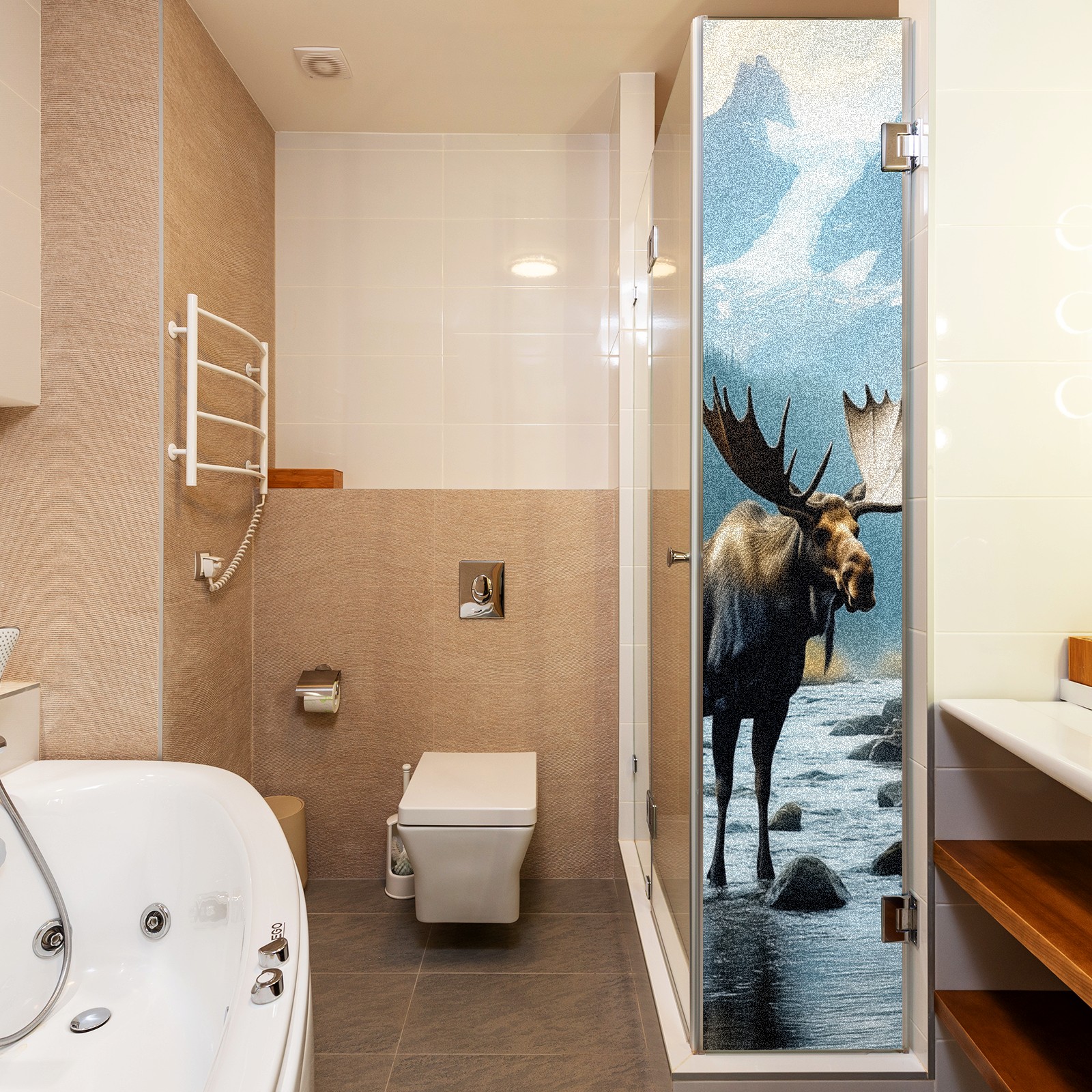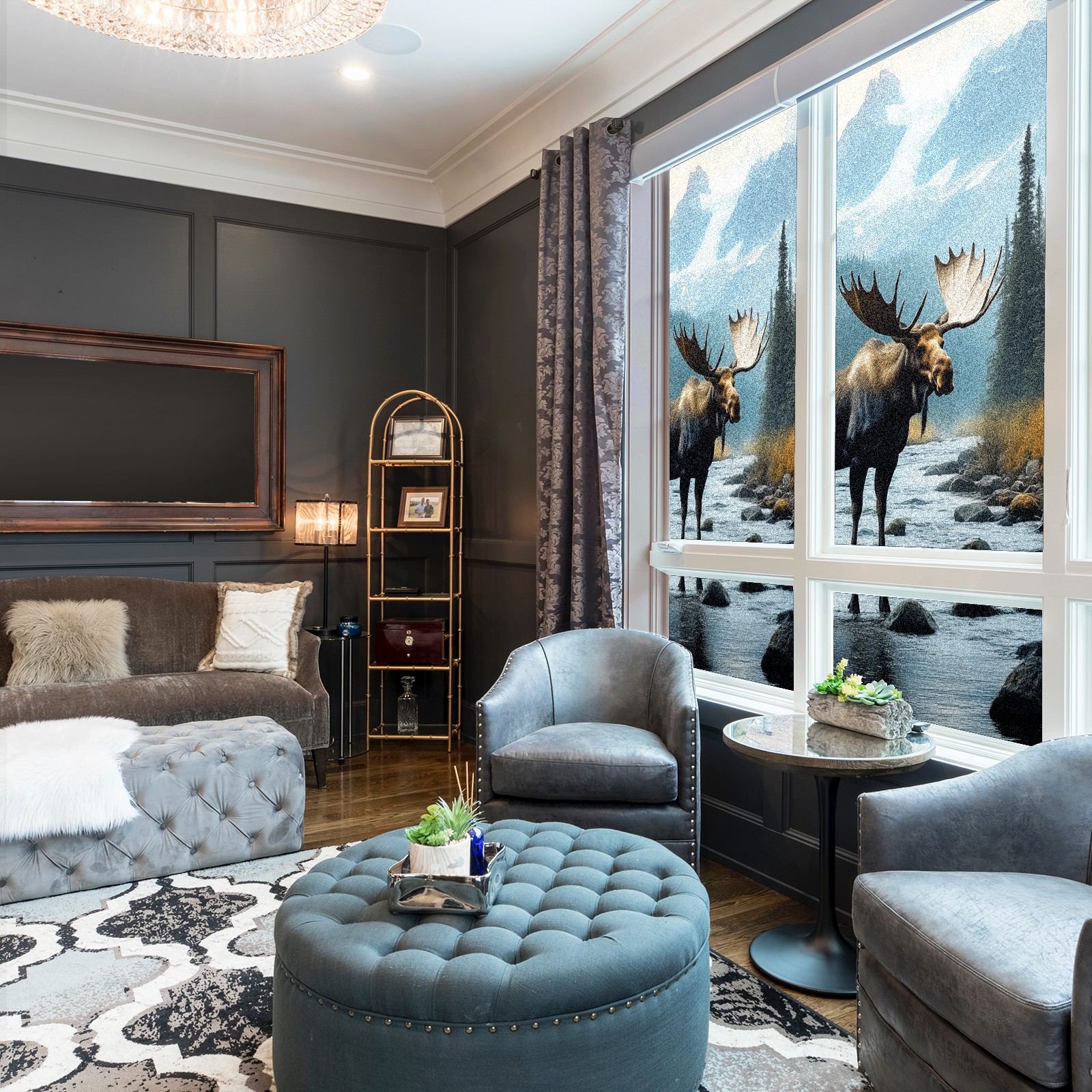 MSINMKOK Window Privacy Film Moose Decorative Frosted Glass Window Film for Glass Door Bathroom Window 17.7'' x 23.6'' Non-Adhesive Window Decals Stickers