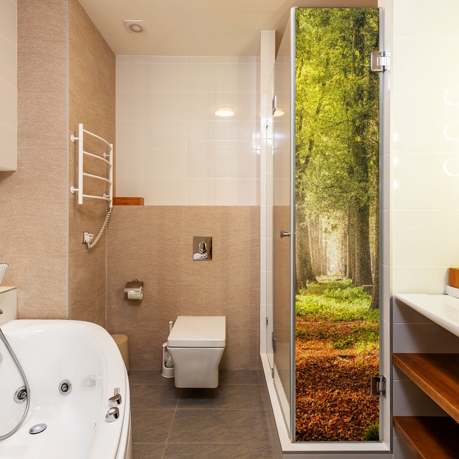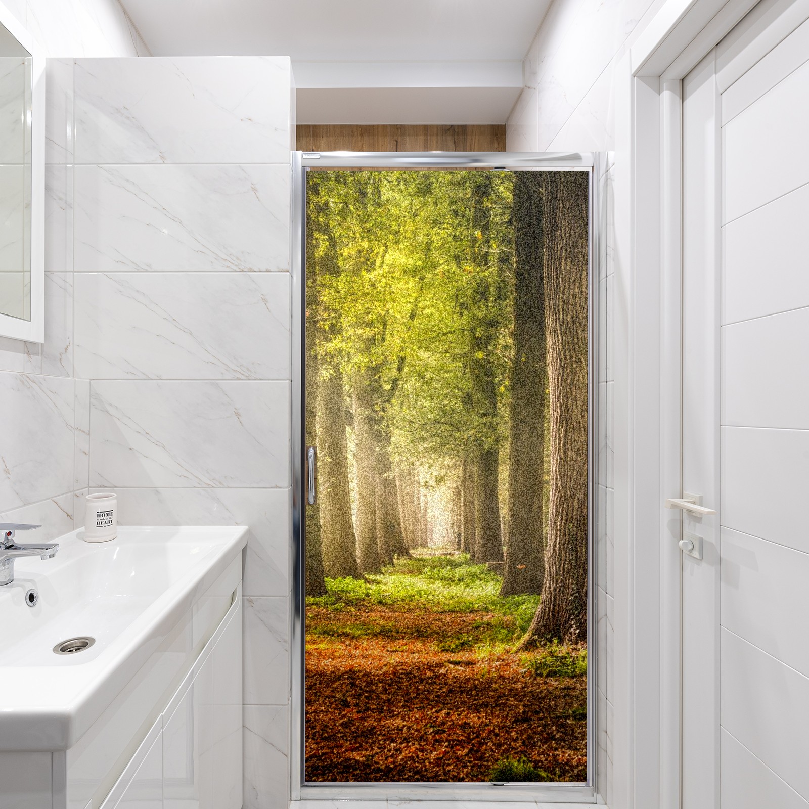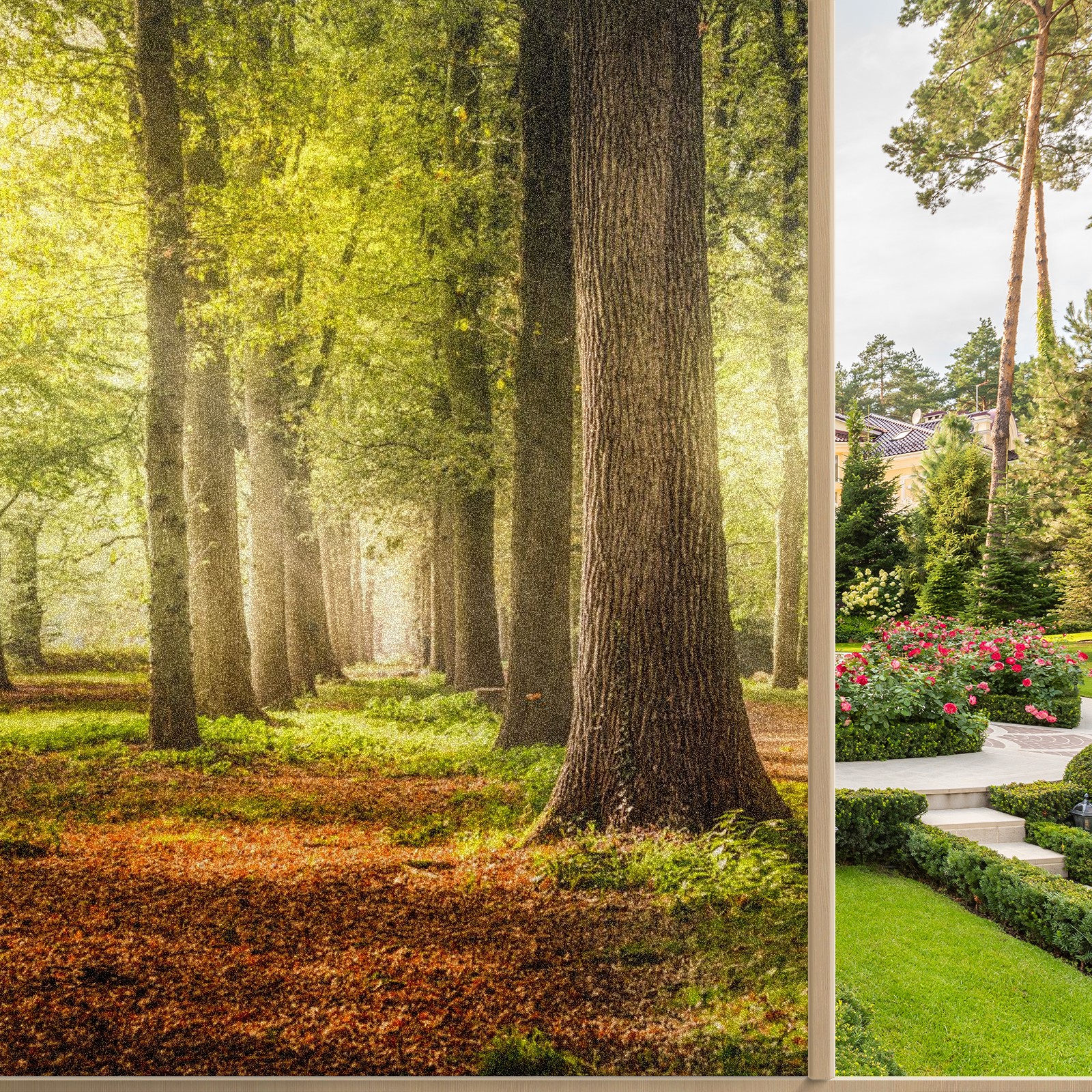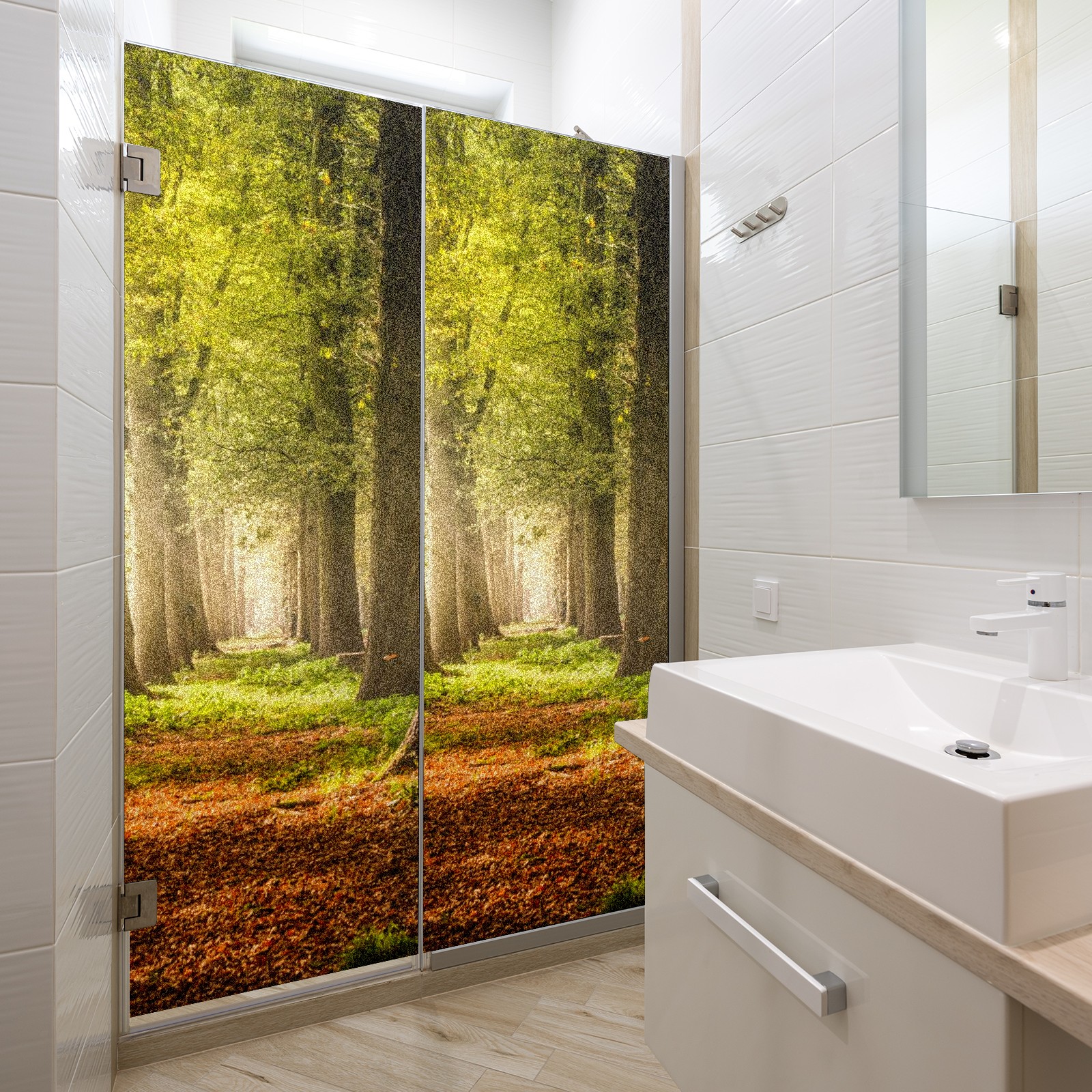MSINMKOK Window Privacy Film Forest Trees Greenery Woodland Decorative Frosted Glass Window Film for Glass Door Bathroom Window 17.7'' x 23.6'' Non-Adhesive Window Decals Stickers