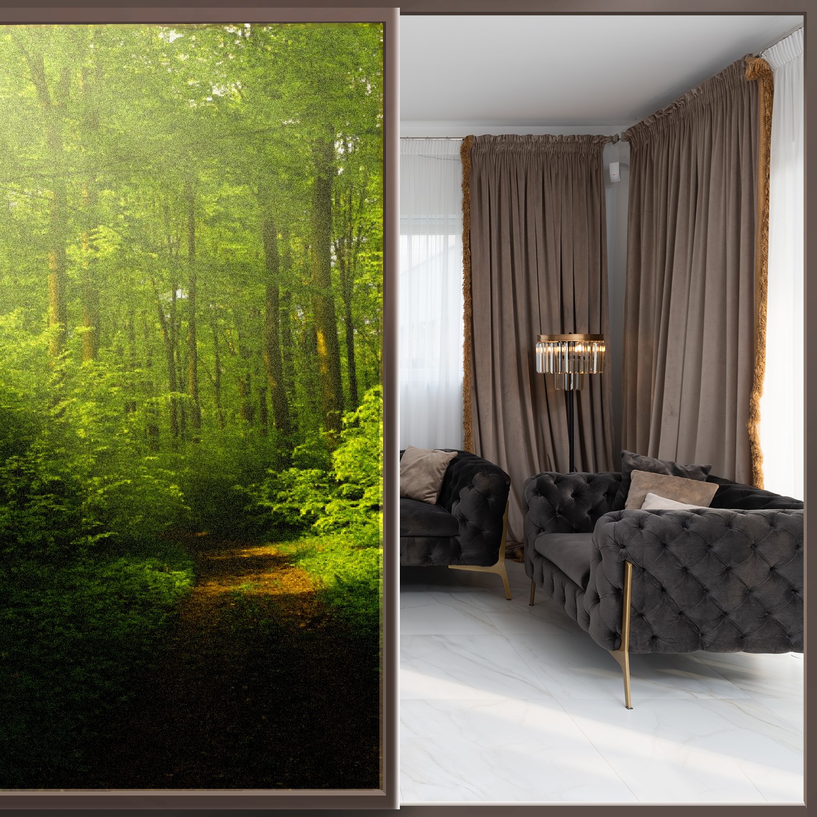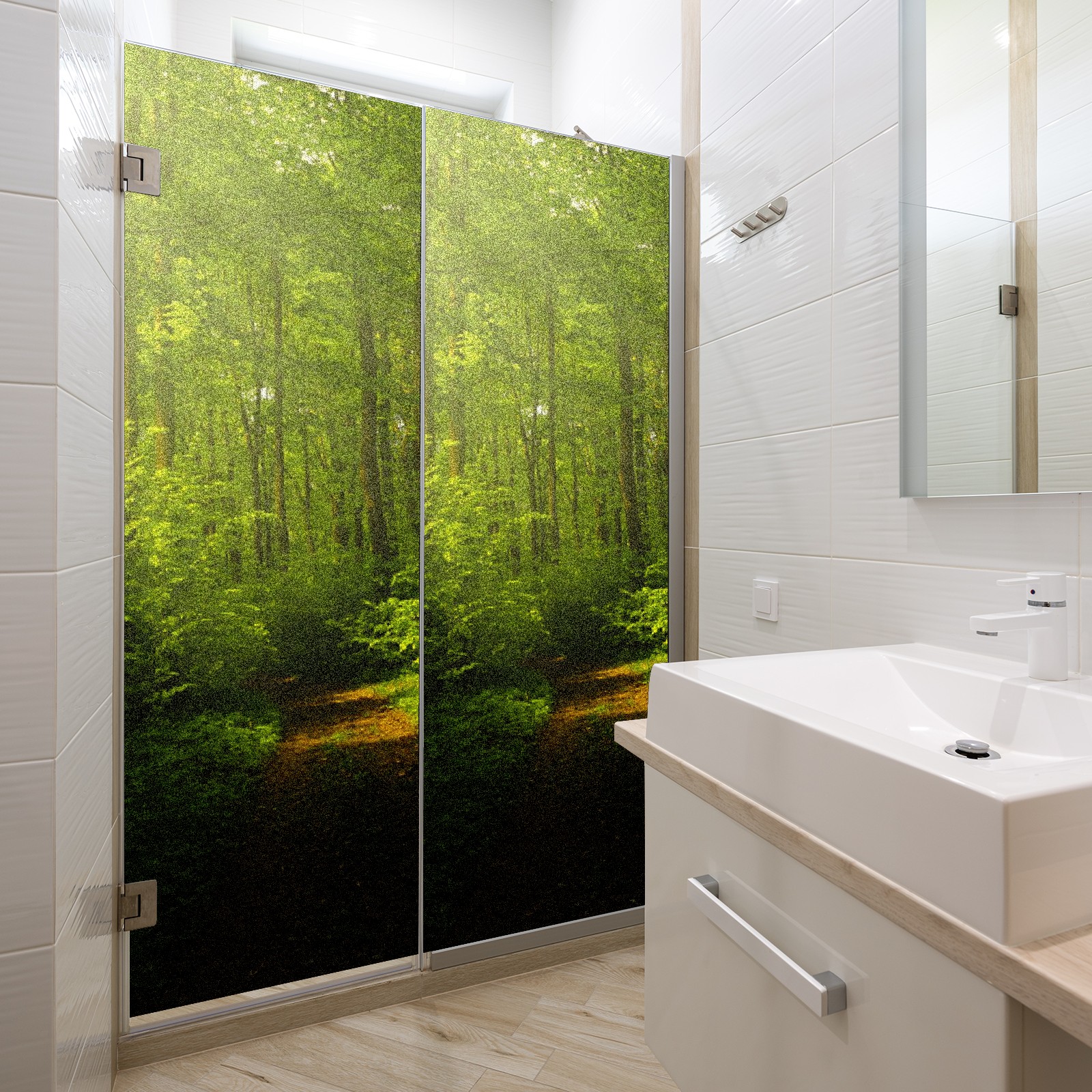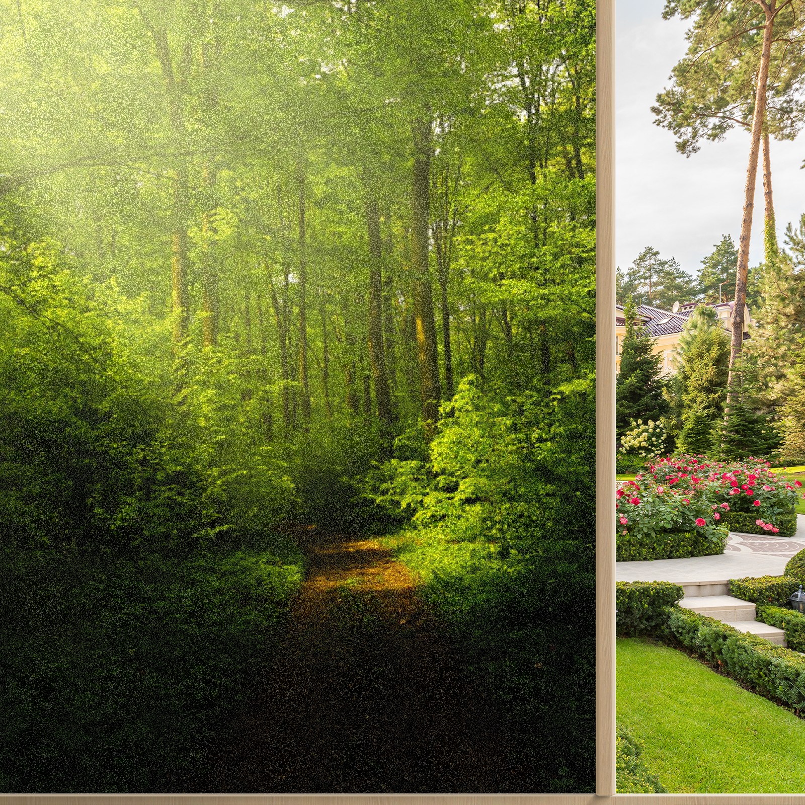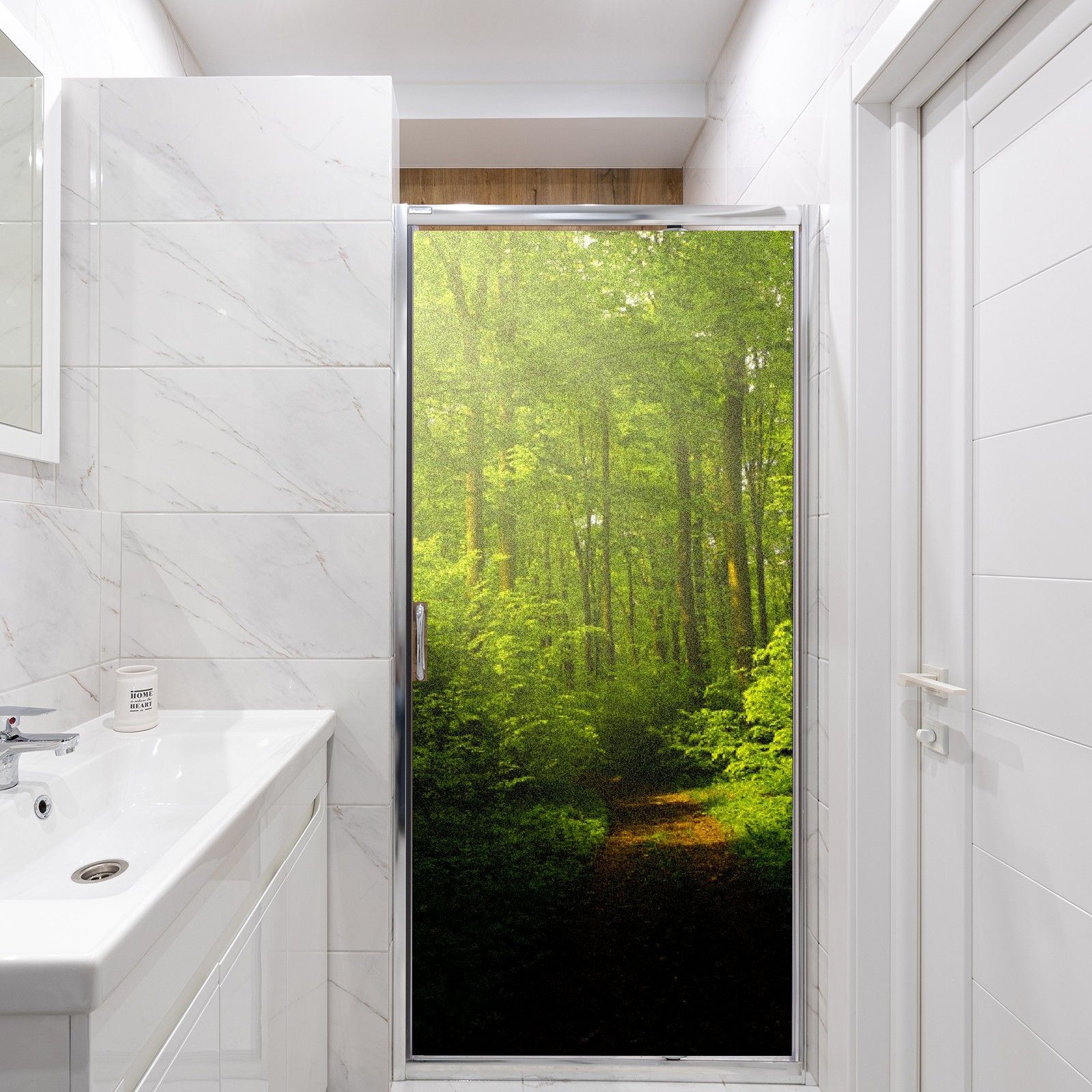 MSINMKOK Window Privacy Film Green-forest-woods-trails-pathway-sun-rays-glade-scenery-3648x2432-5696 Decorative Frosted Glass Window Film for Glass Door Bathroom Window 17.7'' x 23.6'' Non-Adhesive Window Decals Stickers