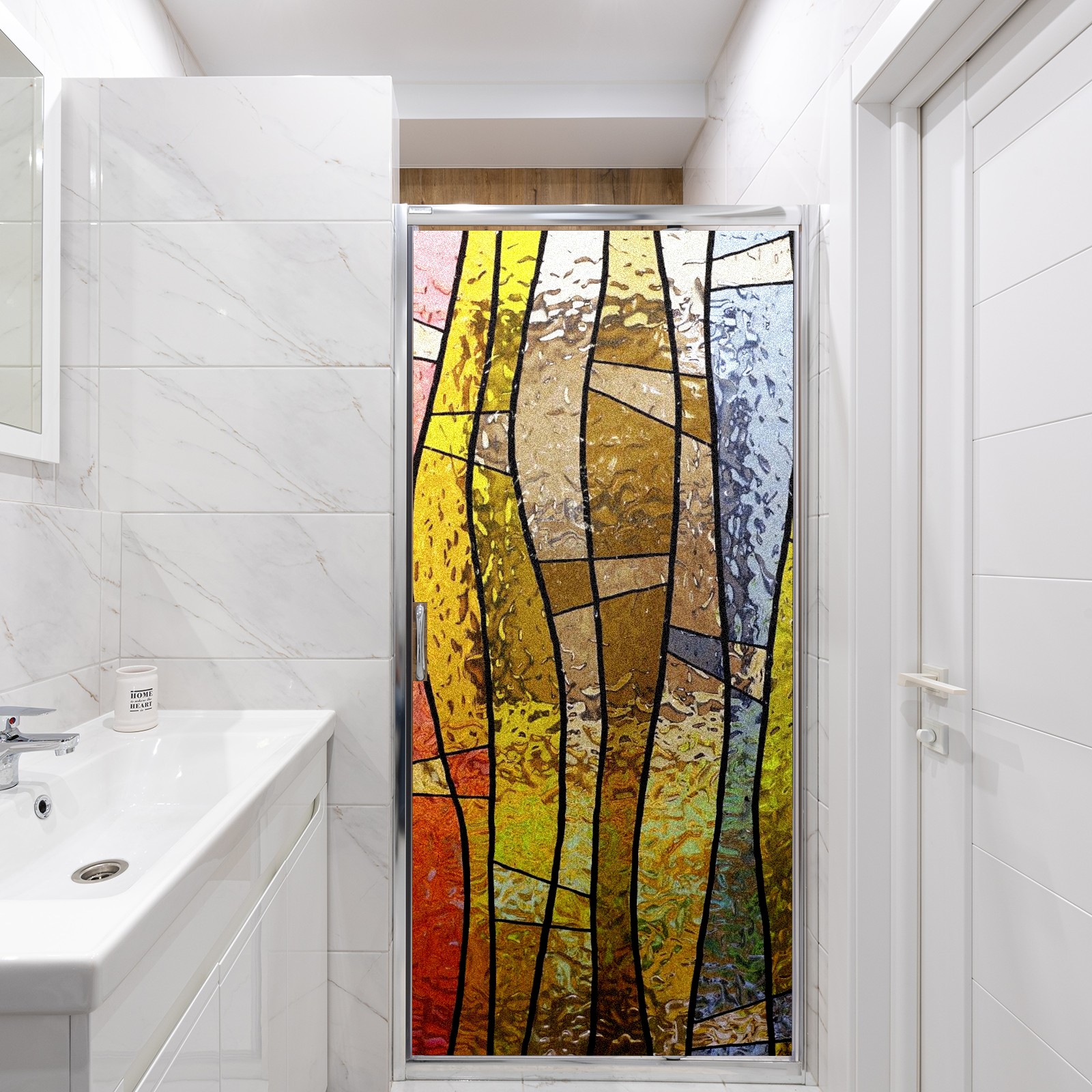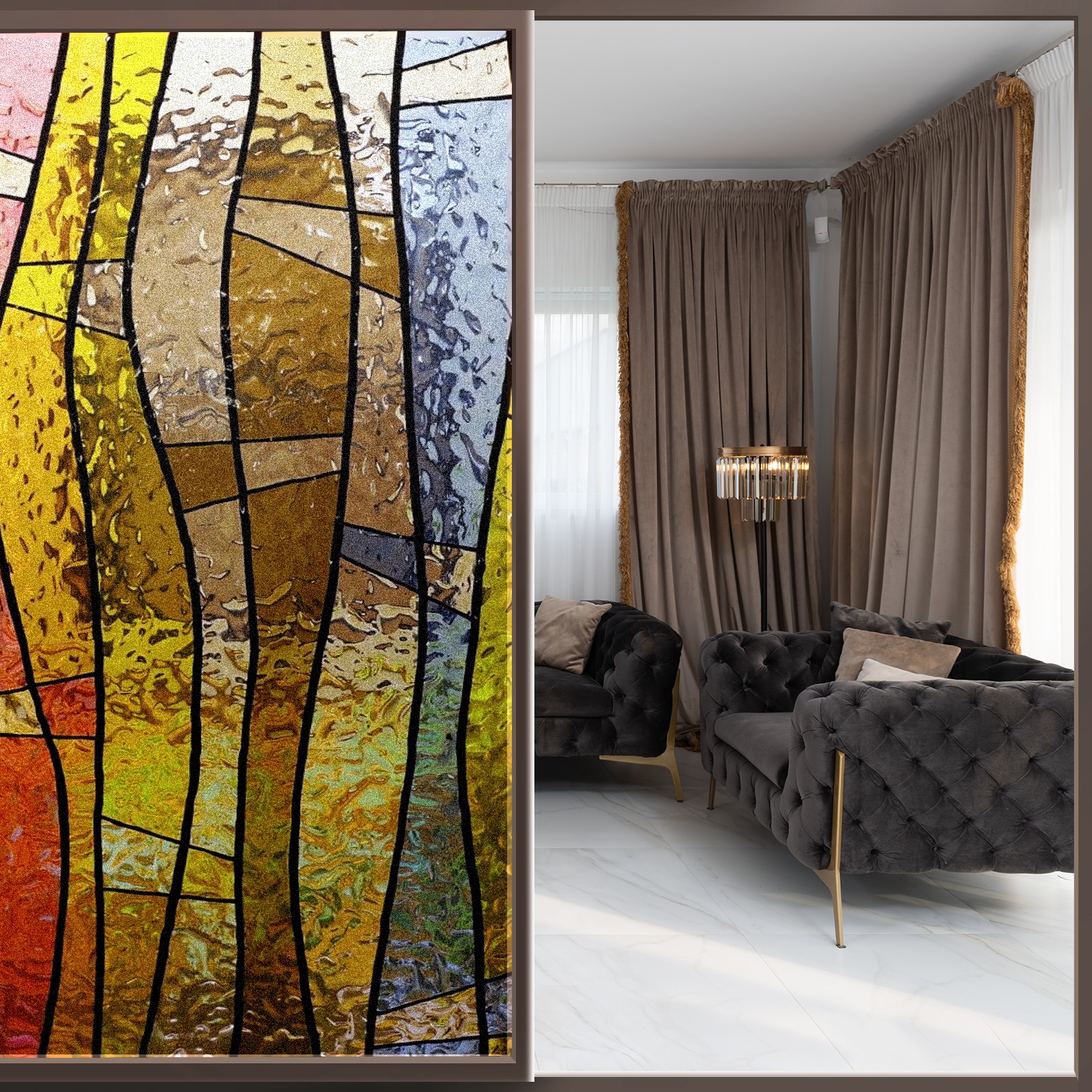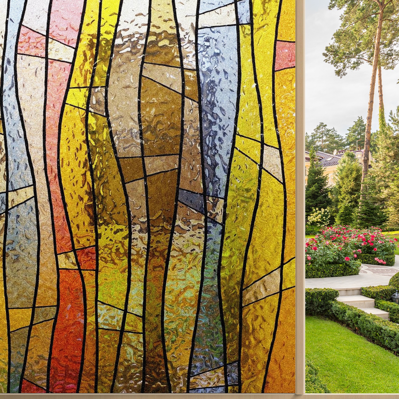 MSINMKOK Window Privacy Film Retro Stained Glasses Yellow (1) Decorative Frosted Glass Window Film for Glass Door Bathroom Window 17.7'' x 23.6'' Non-Adhesive Window Decals Stickers