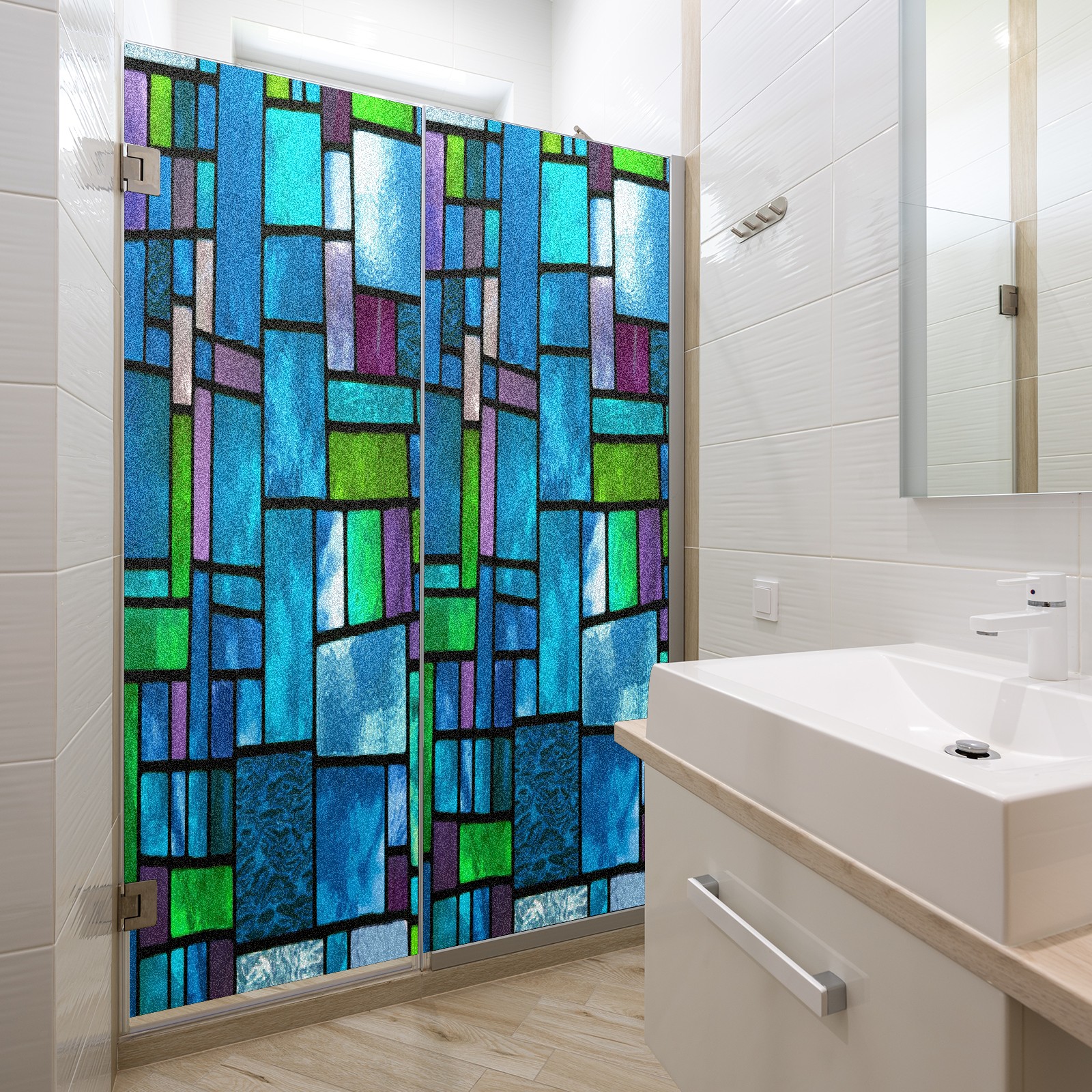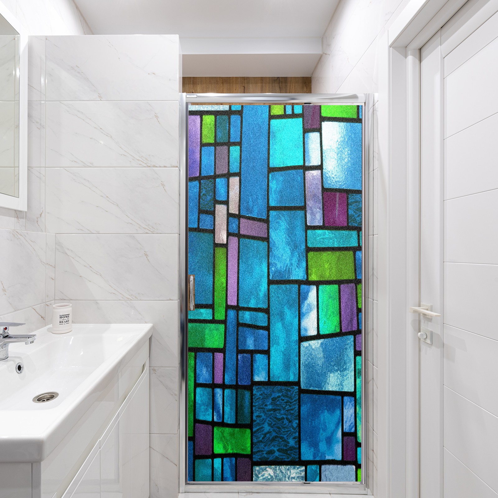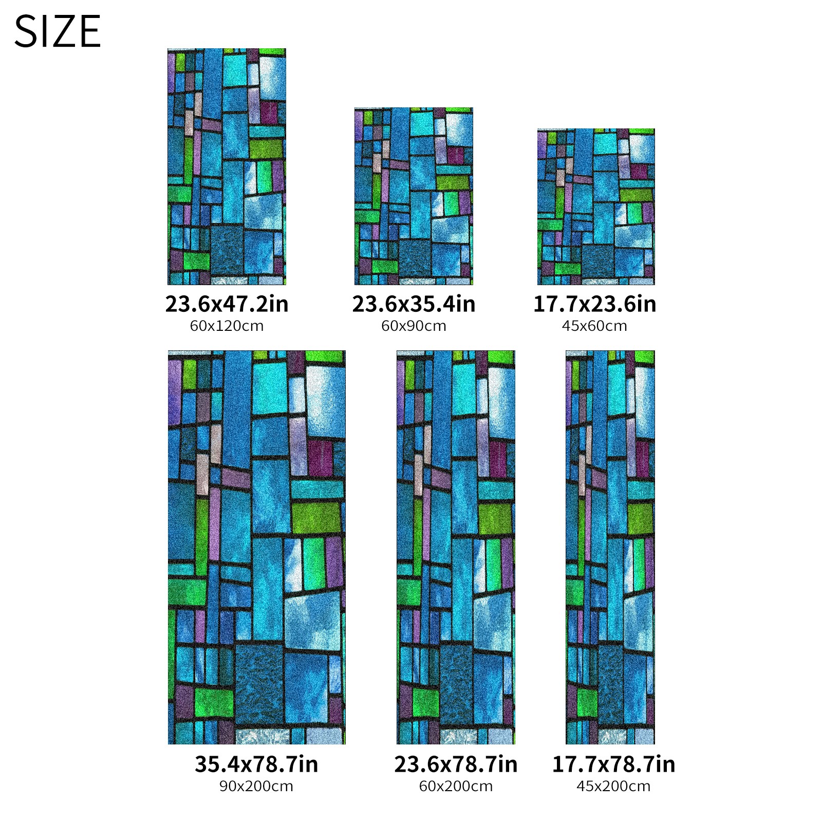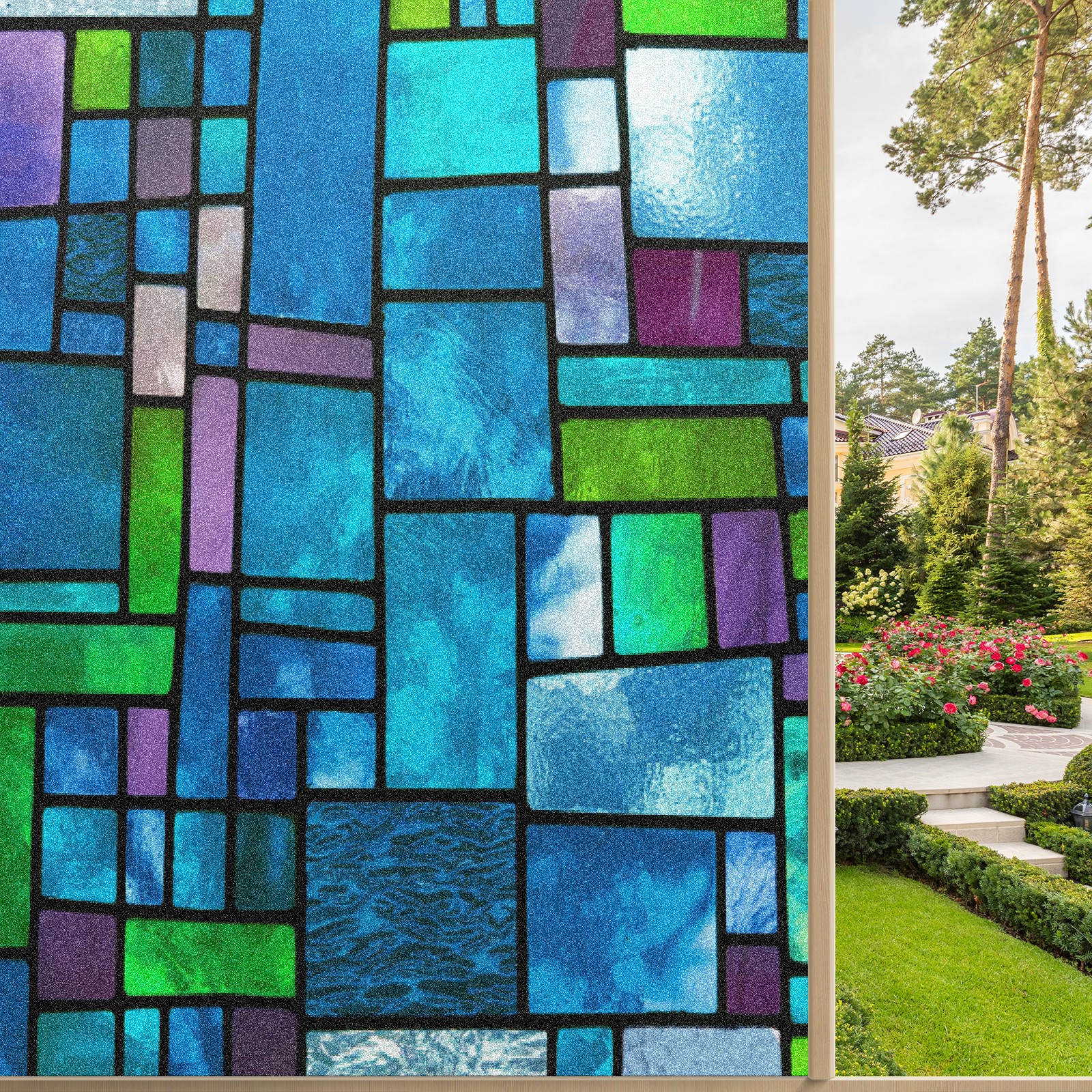 MSINMKOK Window Privacy Film Blue Green Stained Glass Decorative Frosted Glass Window Film for Glass Door Bathroom Window 17.7'' x 23.6'' Non-Adhesive Window Decals Stickers
