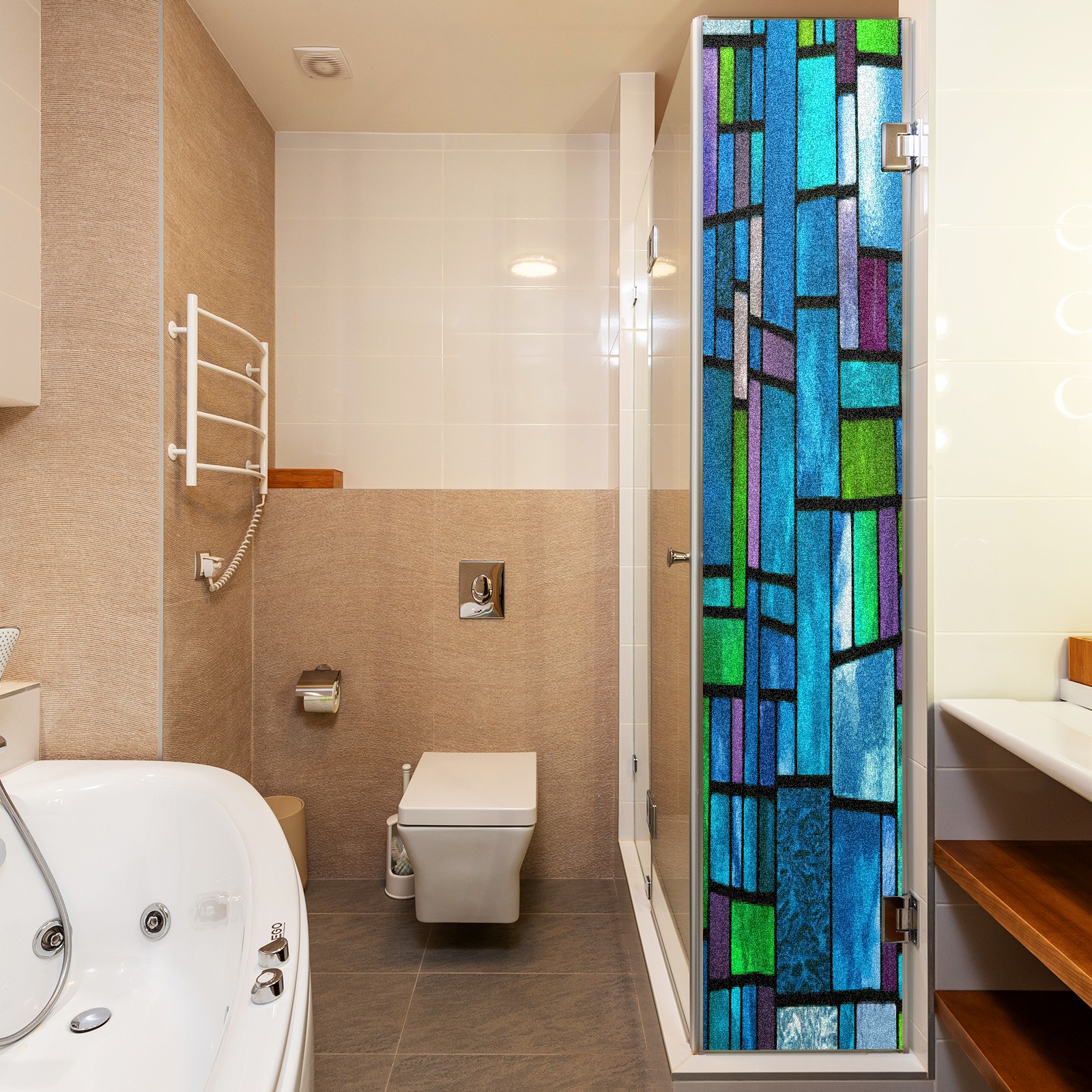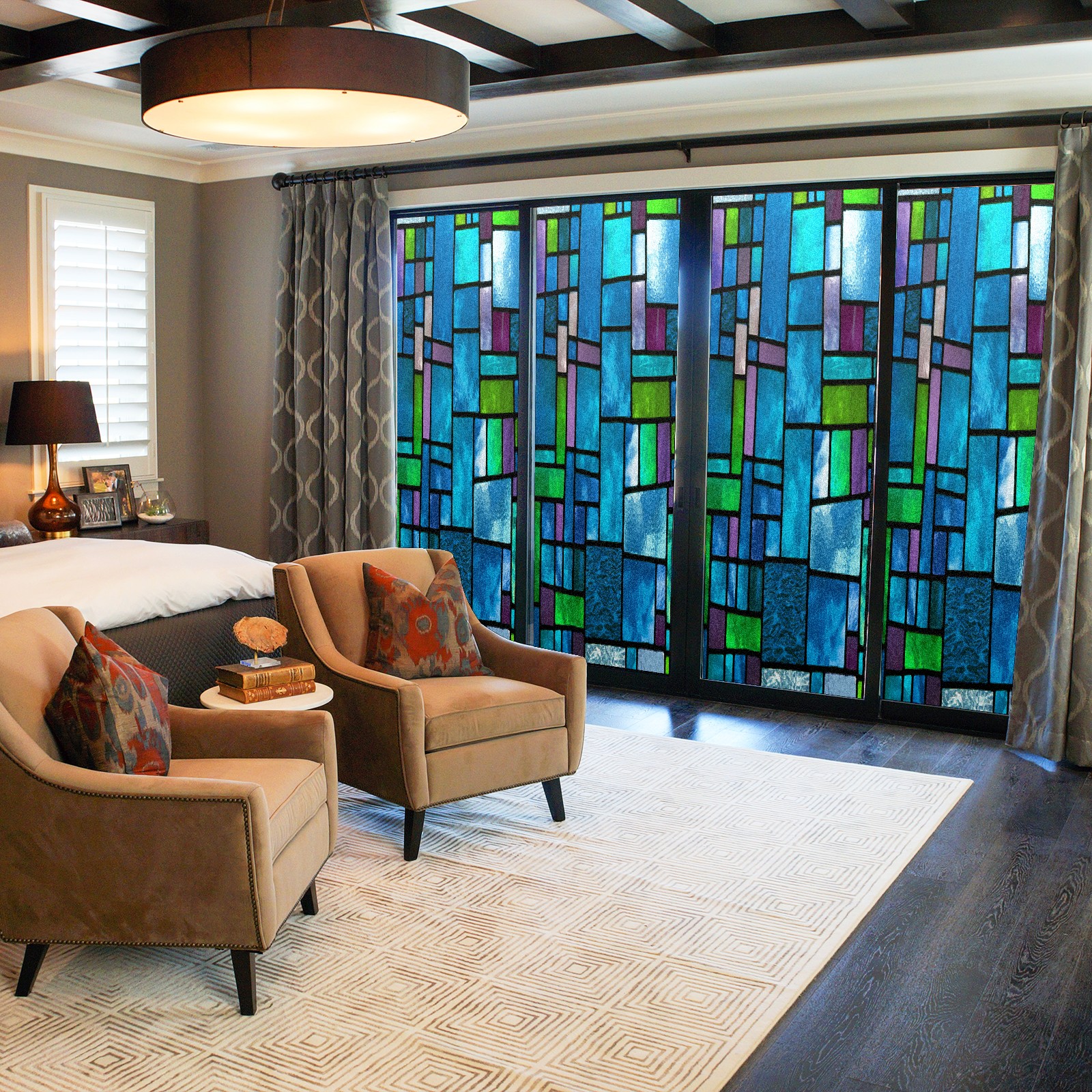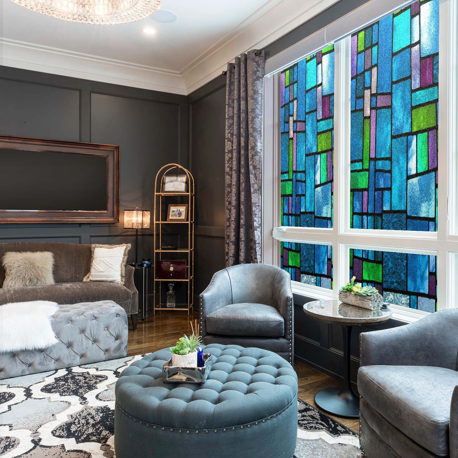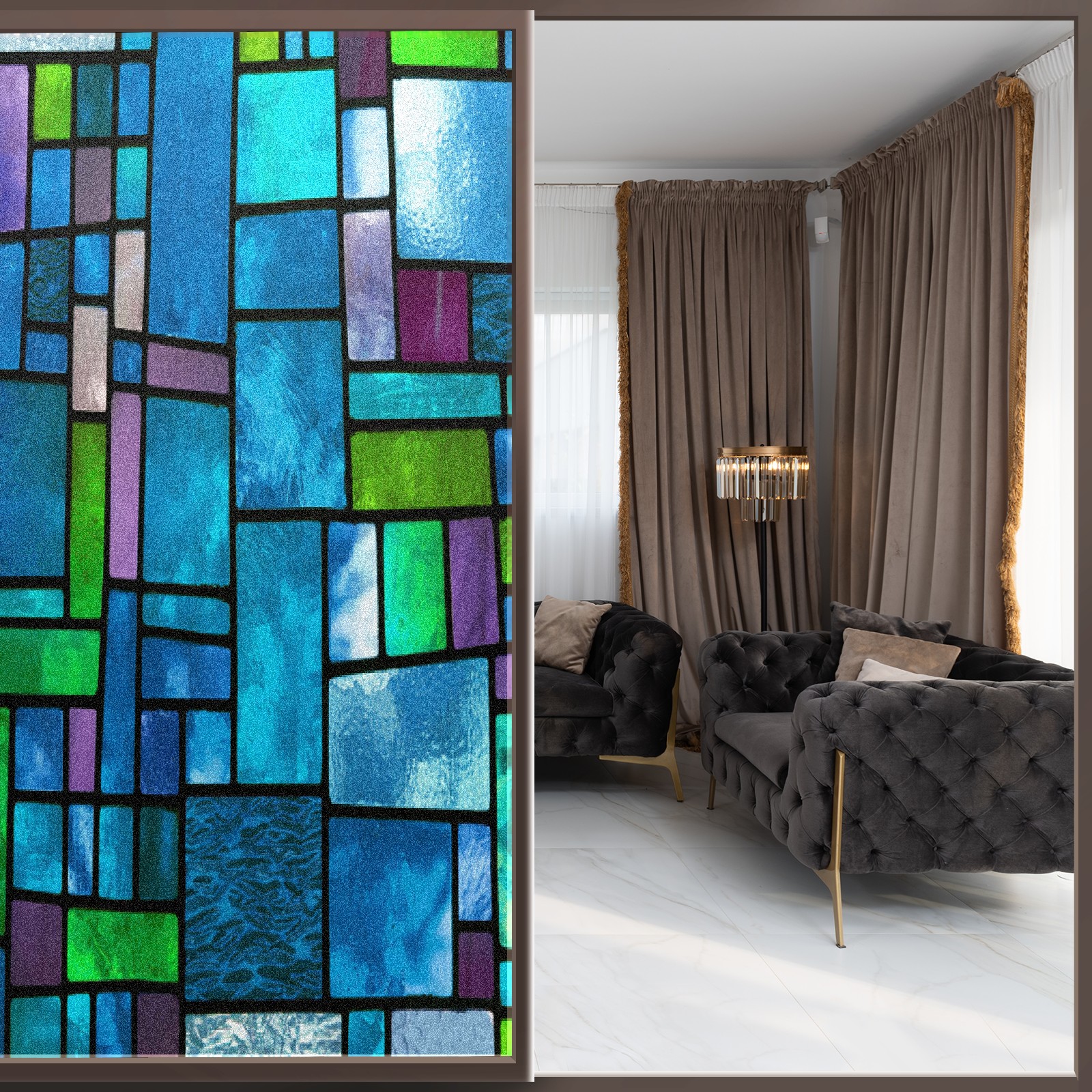 MSINMKOK Window Privacy Film Blue Green Stained Glass Decorative Frosted Glass Window Film for Glass Door Bathroom Window 17.7'' x 23.6'' Non-Adhesive Window Decals Stickers