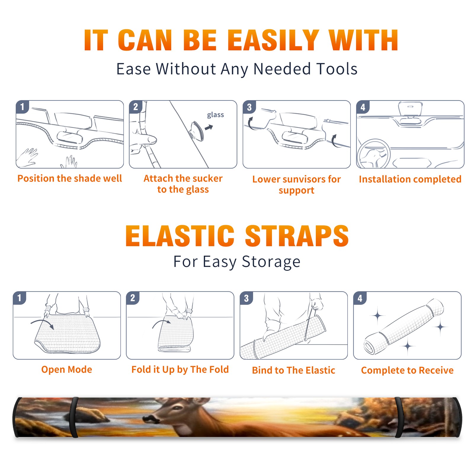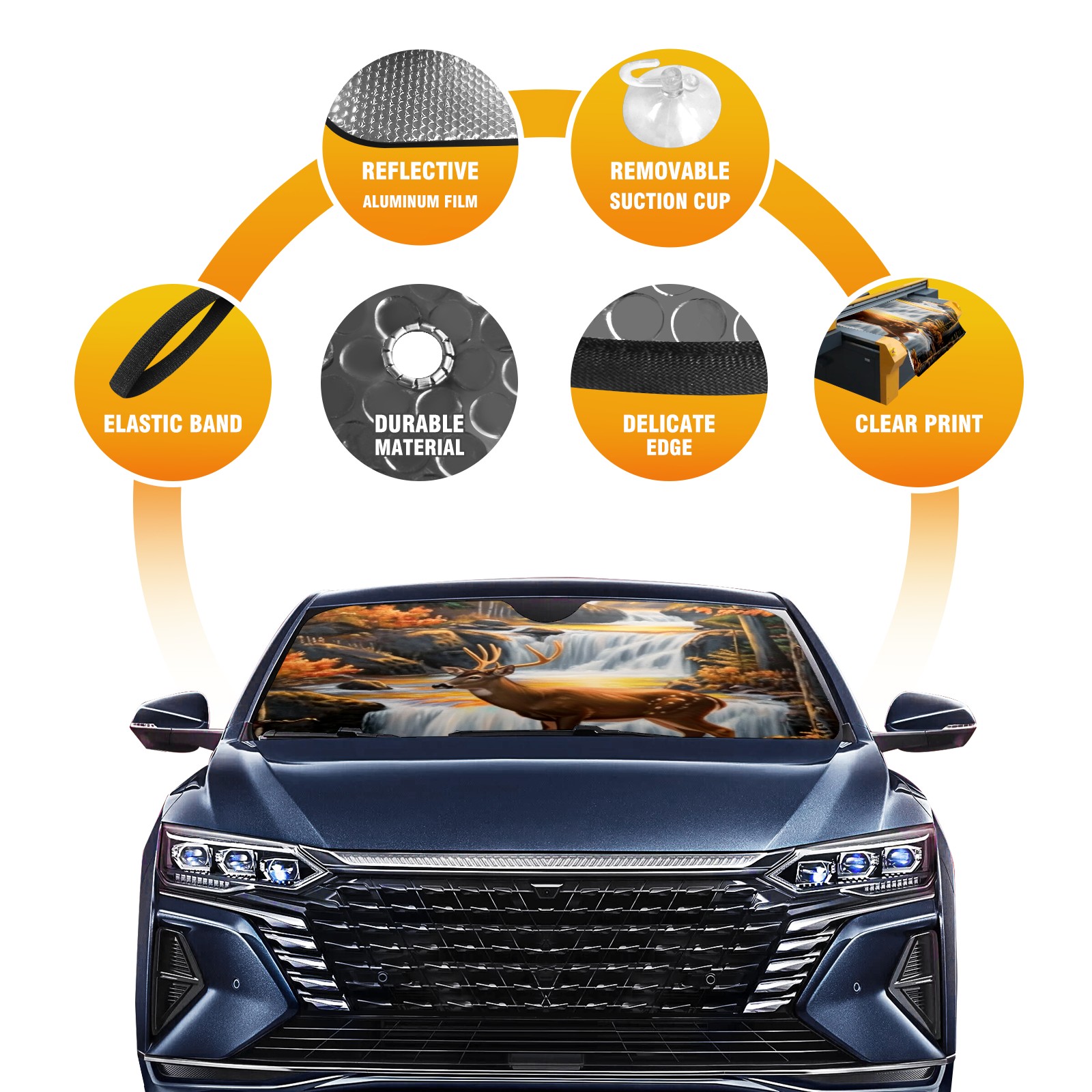 <b>Foldable Premium Car Windshield Sunshade is your great solution to reduce your car’s interior temperature dramatically!This is definitely a must-have item for your summer travel! </b> <br> ●<b>Size: 55"L x 30"W </b> <br> ●<b>Blocking Uv Rays & Heat Insulation</b><br> Our vehicle sunshade provides effective UV, sun, and summer heat protection .Maintains dashboards by preventing fading and cracking <br> ●<b>Easy-To-Store Folding Design Makes Storage Convenient</b> <br> Car sunshades comes with removable suction cups and elastic bands that you can install or remove easily and quickly. In a matter of seconds you can install your purchased windshield visor. And the detachable suction cups on the automotive's sun visor leave no marks on the windows when removed. When not in use, the front windshield can be conveniently and effectively placed on the door pocket or the dashboard, which is beautiful and does not occupy the interior space.<br> <br> <b>Stay cool and protected this summer with our fun and functional car windshield sun shade!Perfectly crafted to fit most vehicles, this premium quality sun blocker is your go-to automotive accessory. it's time to say goodbye to scorching hot seats and hello to comfort on every drive!</b>