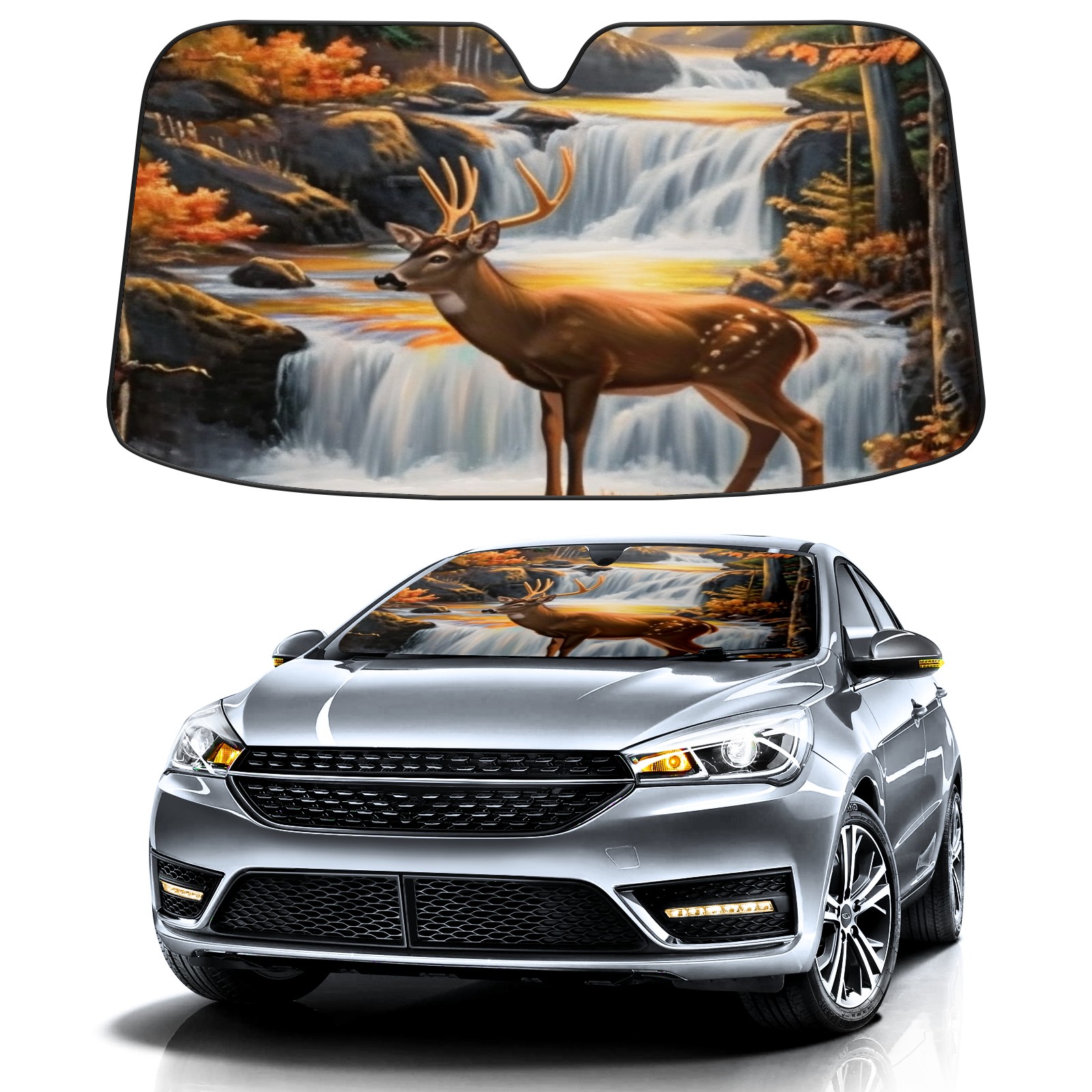 Car Windshield Sun Shade for Front Window-Deers In The Forest (10) Foldable Sun Visor Cover Sunshade for Car Windshield-Car Heat Shield Sunshade Protector-Car Privacy Sun Blocker
