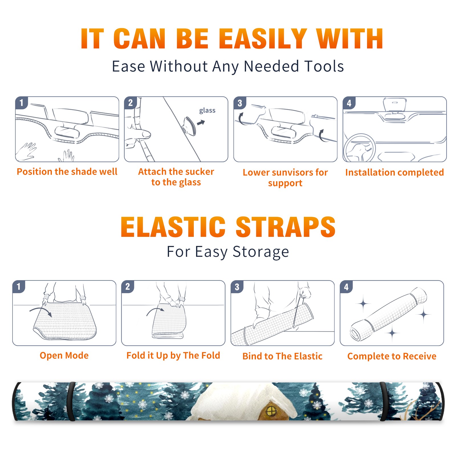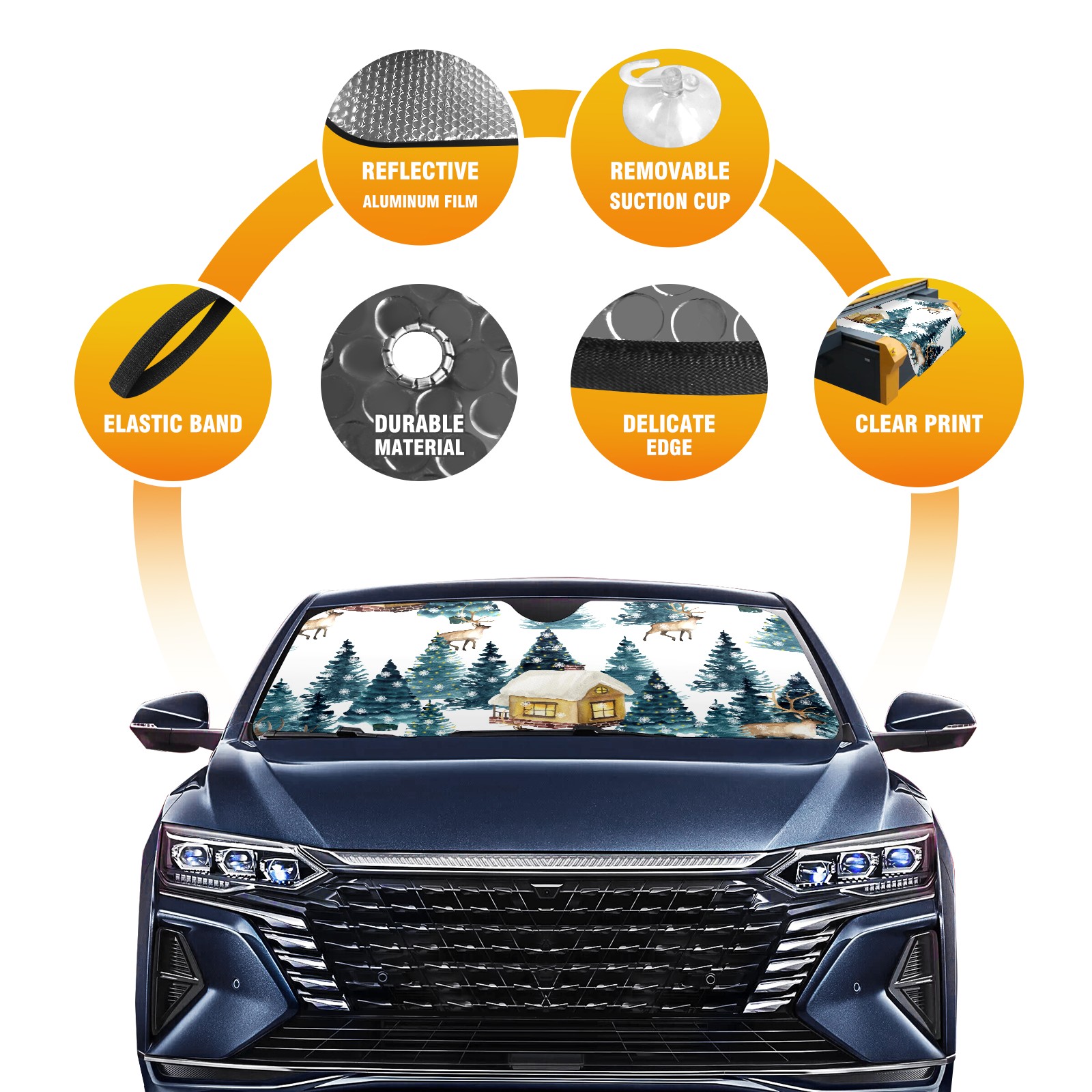 <b>Foldable Premium Car Windshield Sunshade is your great solution to reduce your car’s interior temperature dramatically!This is definitely a must-have item for your summer travel! </b> <br> ●<b>Size: 55"L x 30"W </b> <br> ●<b>Blocking Uv Rays & Heat Insulation</b><br> Our vehicle sunshade provides effective UV, sun, and summer heat protection .Maintains dashboards by preventing fading and cracking <br> ●<b>Easy-To-Store Folding Design Makes Storage Convenient</b> <br> Car sunshades comes with removable suction cups and elastic bands that you can install or remove easily and quickly. In a matter of seconds you can install your purchased windshield visor. And the detachable suction cups on the automotive's sun visor leave no marks on the windows when removed. When not in use, the front windshield can be conveniently and effectively placed on the door pocket or the dashboard, which is beautiful and does not occupy the interior space.<br> <br> <b>Stay cool and protected this summer with our fun and functional car windshield sun shade!Perfectly crafted to fit most vehicles, this premium quality sun blocker is your go-to automotive accessory. it's time to say goodbye to scorching hot seats and hello to comfort on every drive!</b>