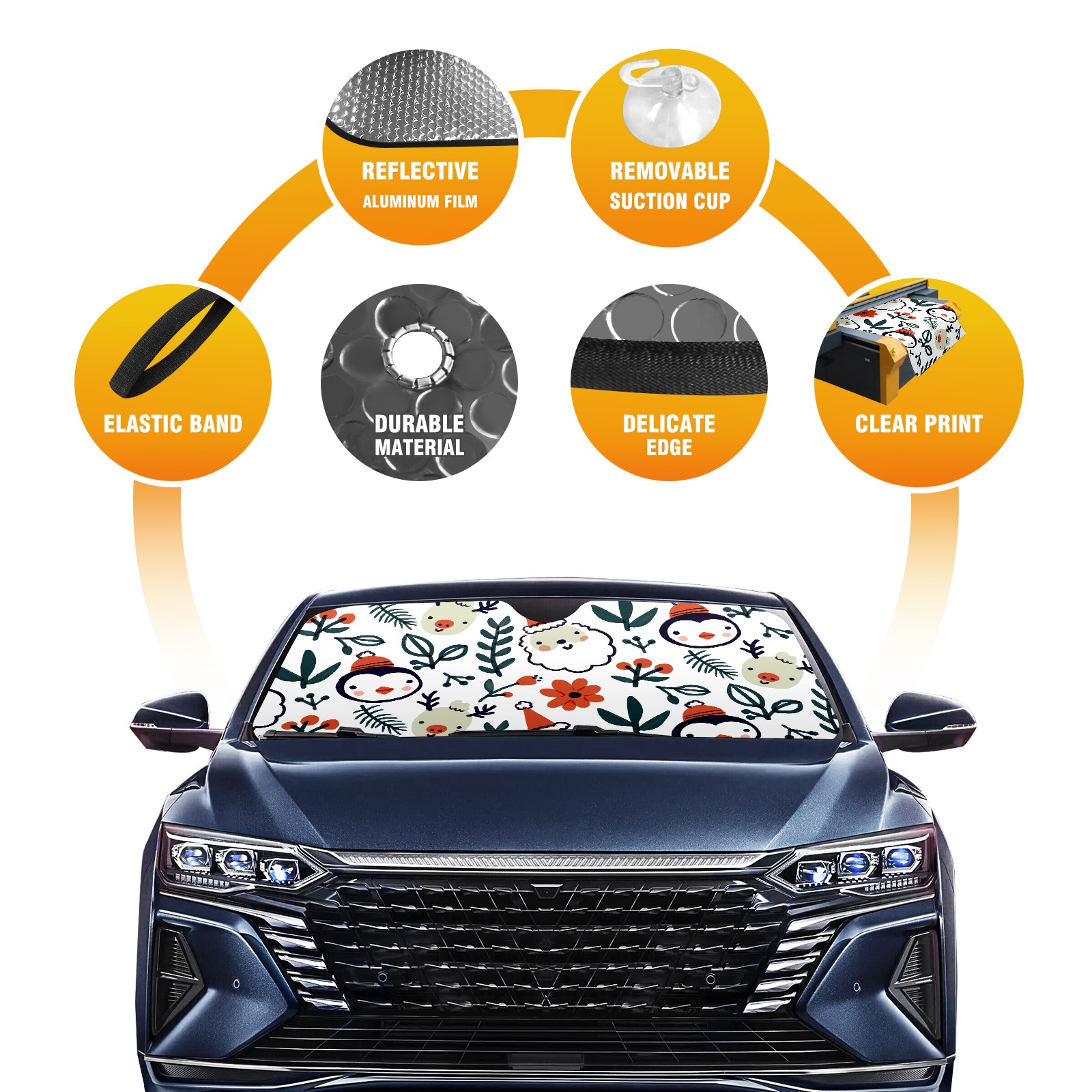 Car Windshield Sun Shade for Front Window-Reindeer Penguin And Leaves Foldable Sun Visor Cover Sunshade for Car Windshield-Car Heat Shield Sunshade Protector-Car Privacy Sun Blocker