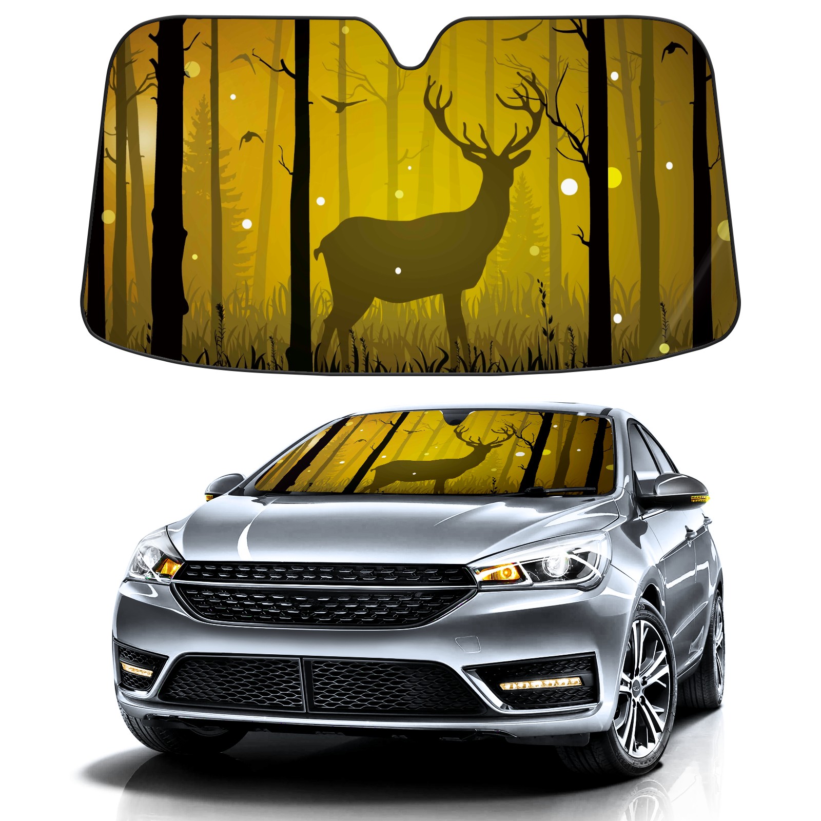 Car Windshield Sun Shade for Front Window-Deer Pattern Foldable Sun Visor Cover Sunshade for Car Windshield-Car Heat Shield Sunshade Protector-Car Privacy Sun Blocker
