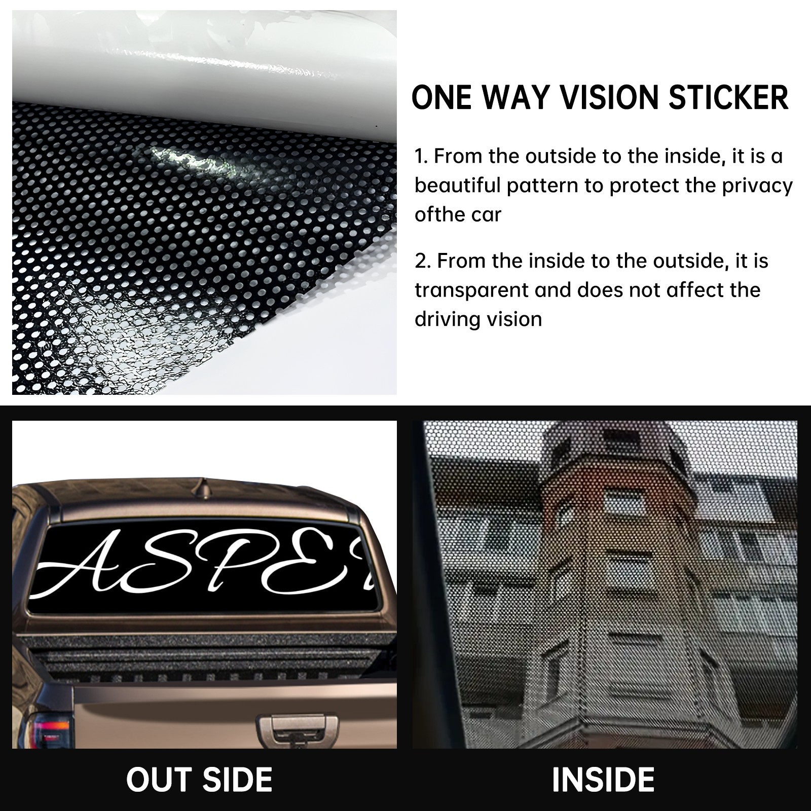 • <p><strong>Truck Rear Window Graphics Decals Pickup Trucks Back Window Film Stickers 66" x 22" Perforated Vinyl Wrap Stickers Decorations for Car Rear Window</strong></p><p><strong><br /></strong></p><p><strong>Features :</strong></p><p>- Size of the rear window decals for trucks is 66x22 Inches (168x56cm).</p><p>- High quality perforated vinyl window film, one way vision sticker.</p><p>- Perforated is see through from the inside but not from outside.</p><p>- Clear printing, waterproof and durable.</p><p>- The car back window graphics stickers fits most truck and makes your vehicle more beautiful.&nbsp;</p><p><br /></p><p><strong>【Installation Instructions】</strong></p><p><strong>1. CLEAN SURFACE -</strong> Clean the rear window thoroughly and make sure the surface clean.</p><p><strong>2. STICK THE DECALS -</strong> Tear off the paper on the back and stick the decal on the window.</p><p><strong>3. SCRAPE OFF AIR BUBBLES -</strong> Use a squeegee or other card to scrape off the excess air bubbles.</p><p><strong>4. TRIM THE EXCESS -</strong> Use a knife to cut off the excess stickers of the window, finally complete.</p><p><br /></p><p>1. Please measure the size before purchasing, back window graphics decal for truck can be cut to your desired size.</p><p>2.The graphics stickers for truck back window is a great gift for yourself also can as a birthday / halloween / christmas gift for your friends and family.</p>