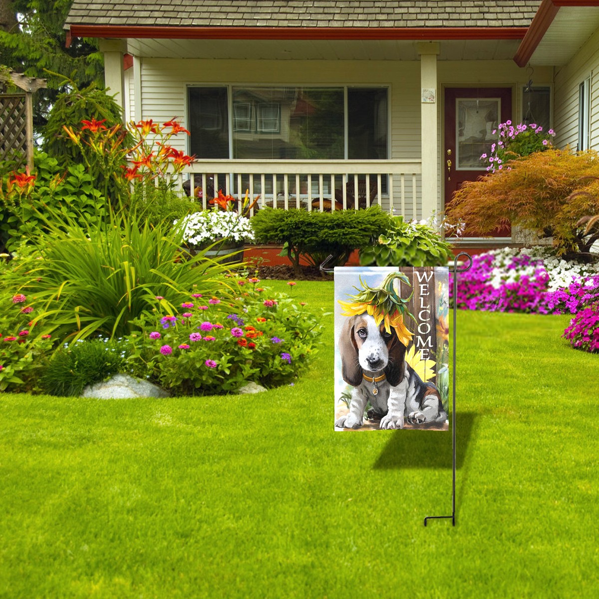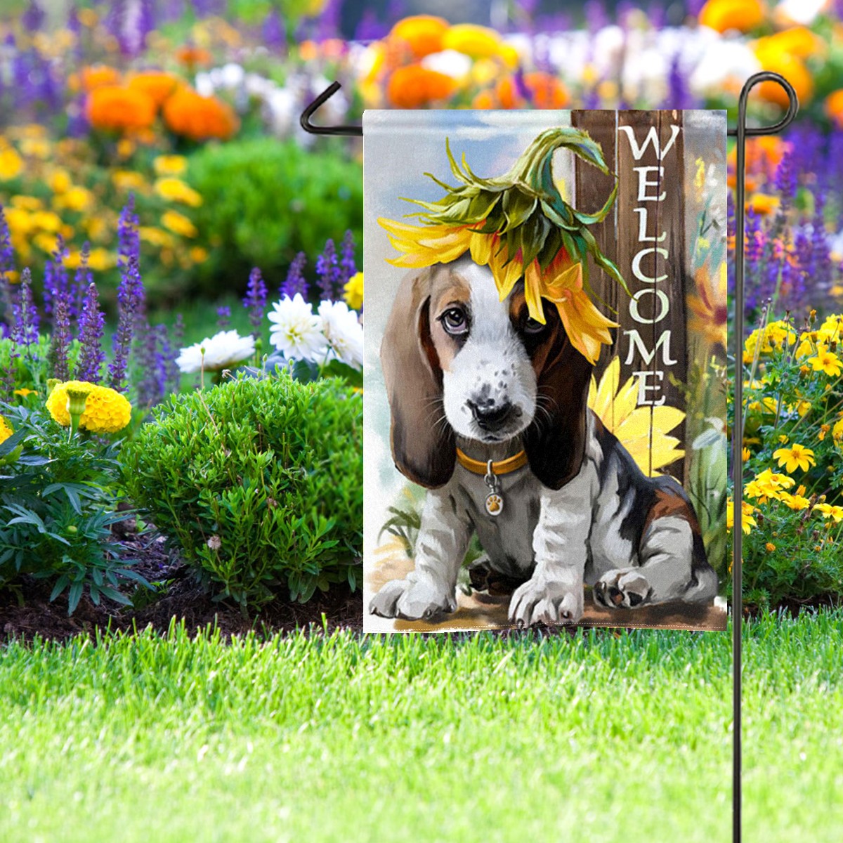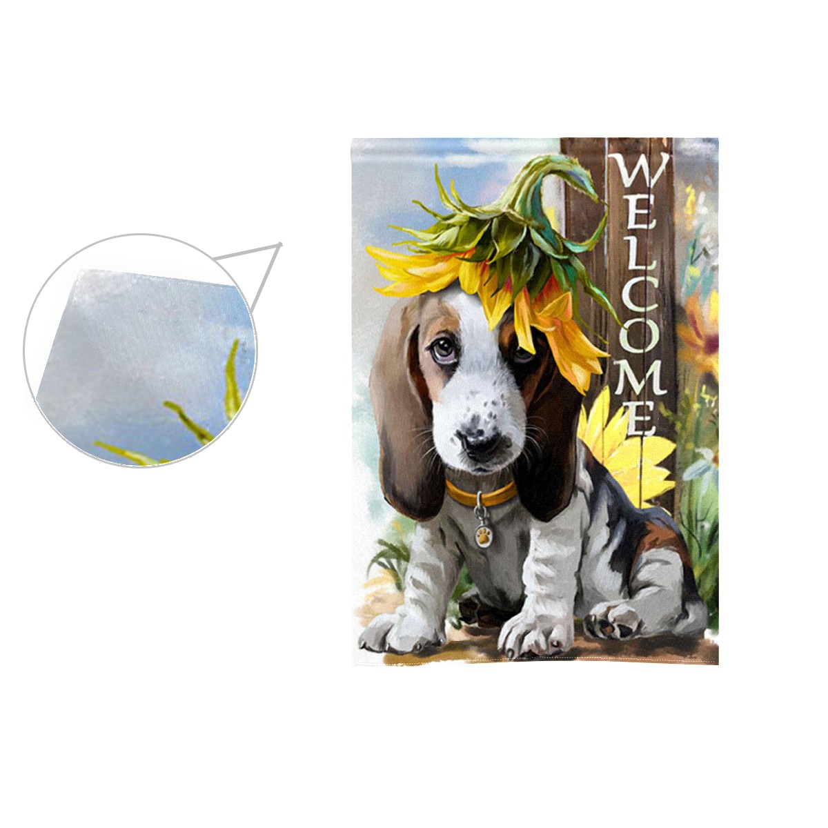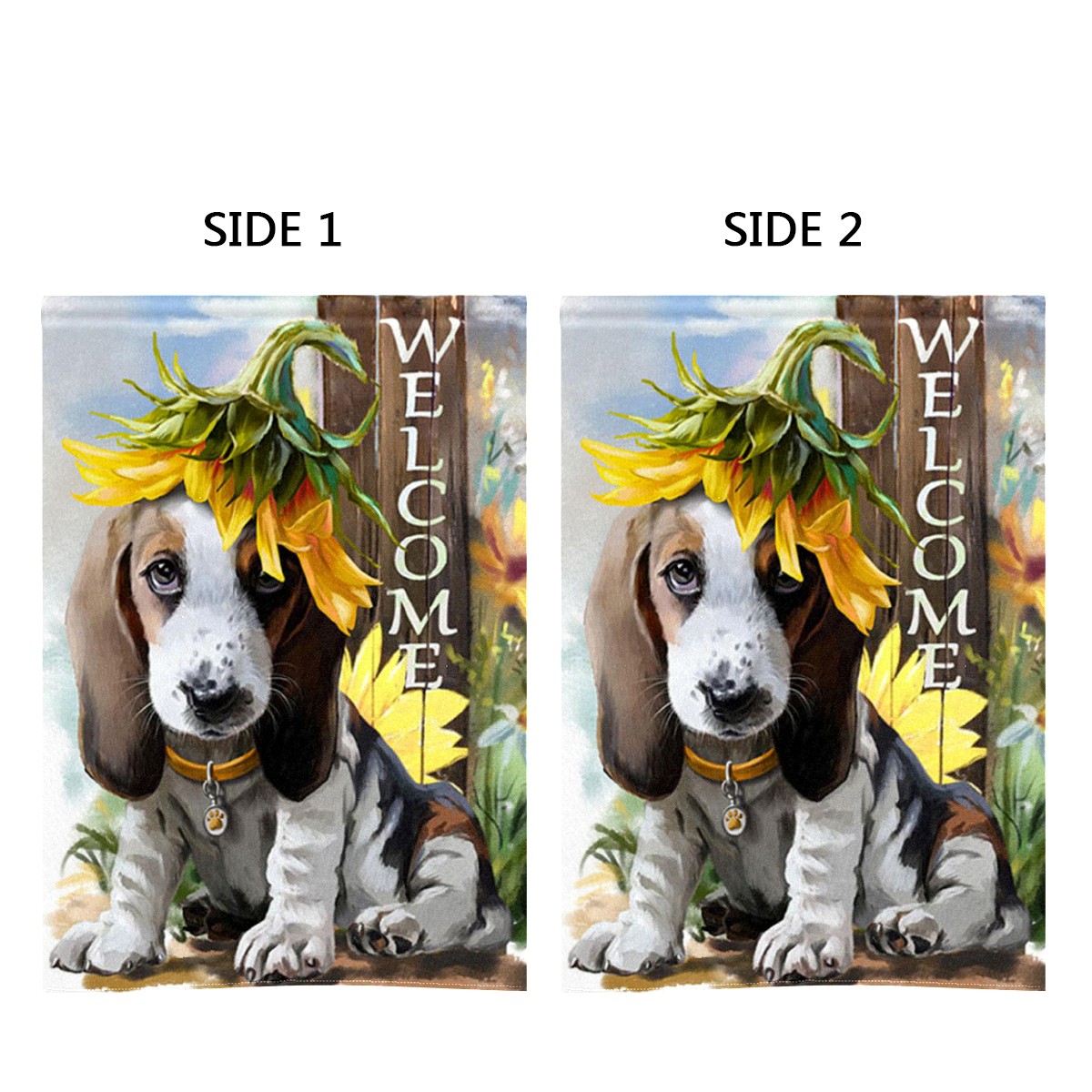 Welcome Cute Dog And Sunflower Garden Flag Double Sided Yard Flags Banners for Outside Outdoor House Lawn Decor Holiday Decoration