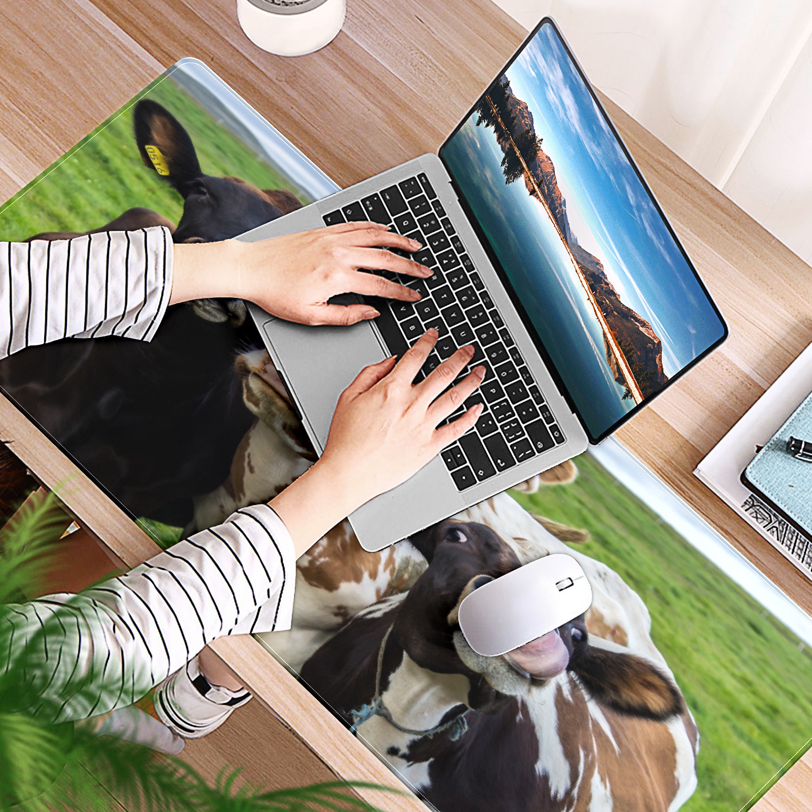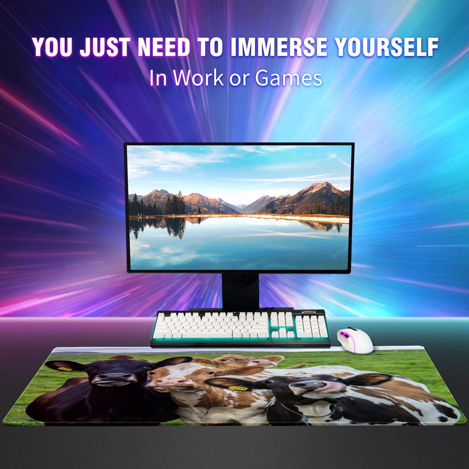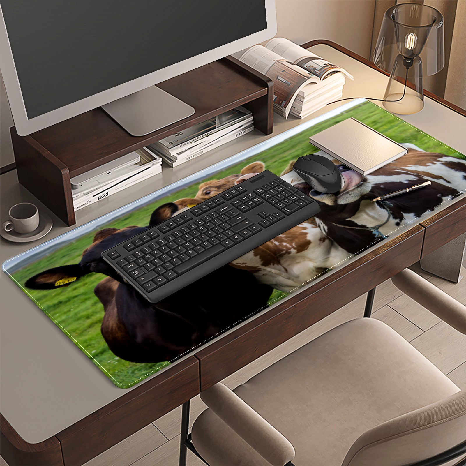 Farm Cows Animal Mouse Pad 35.4'' x 15.7'' Extra Large Gaming Mousepad Non-Slip Soft Rubber Desk Mat Pad Computer Keyboard Mats for Desk Desktop Mat