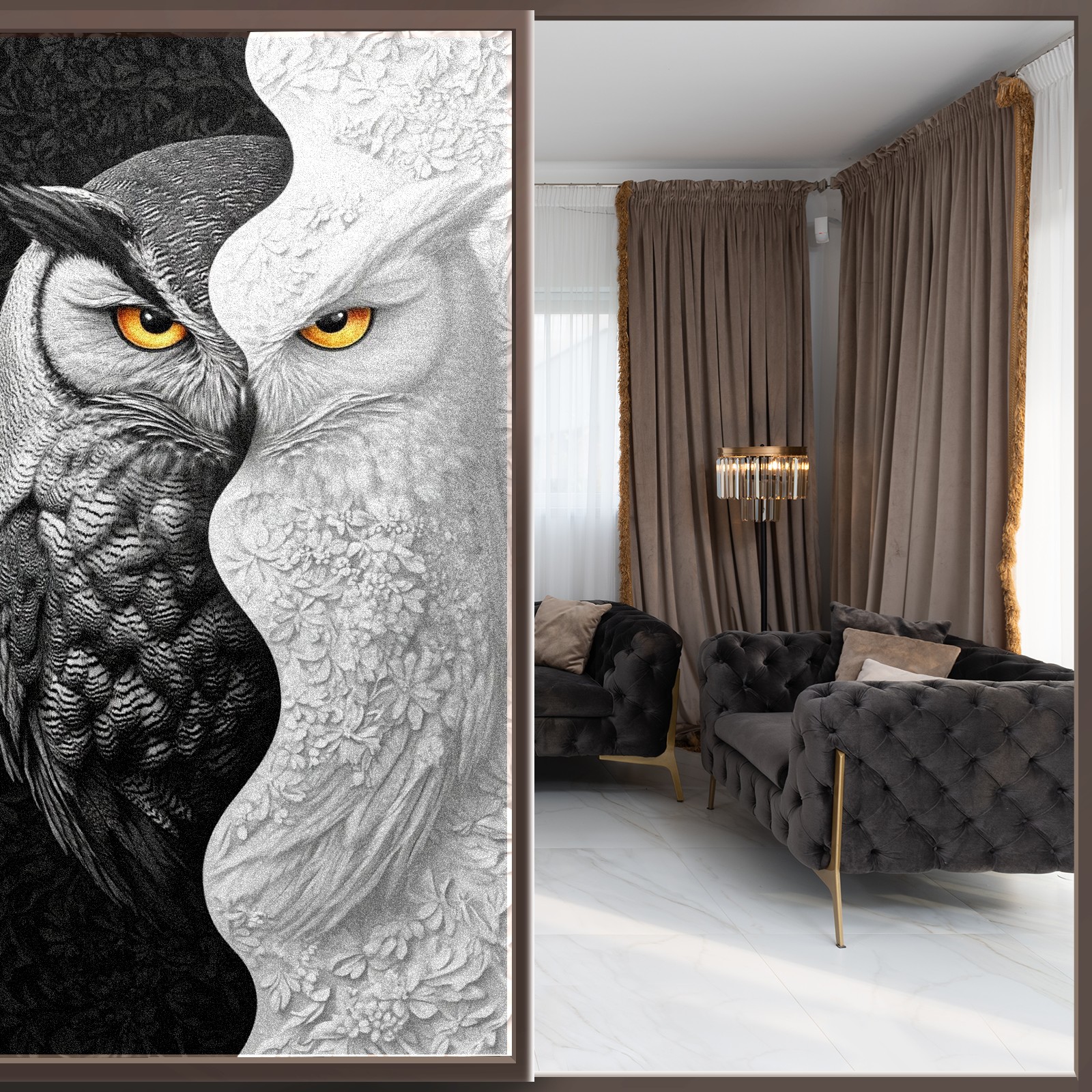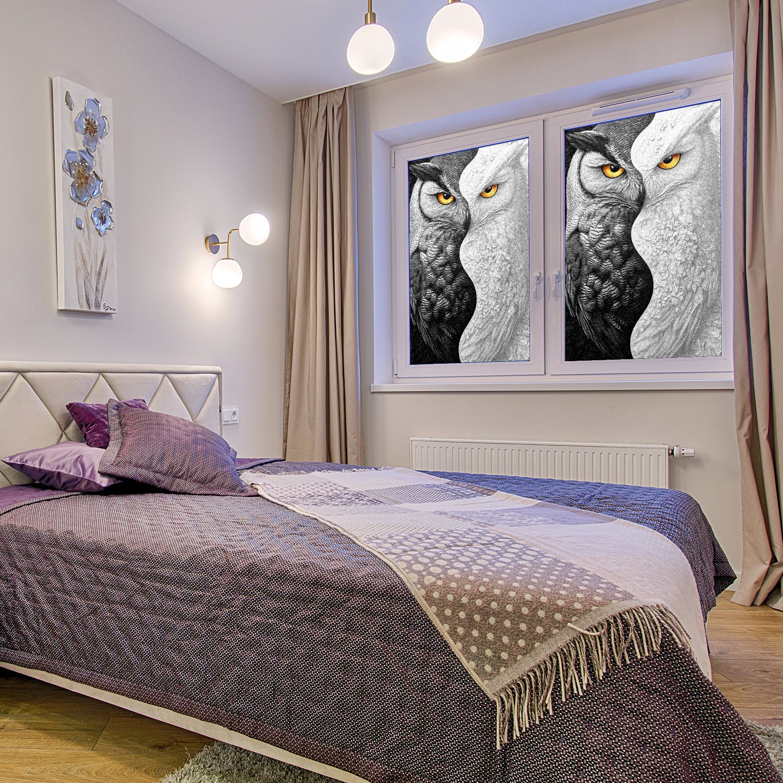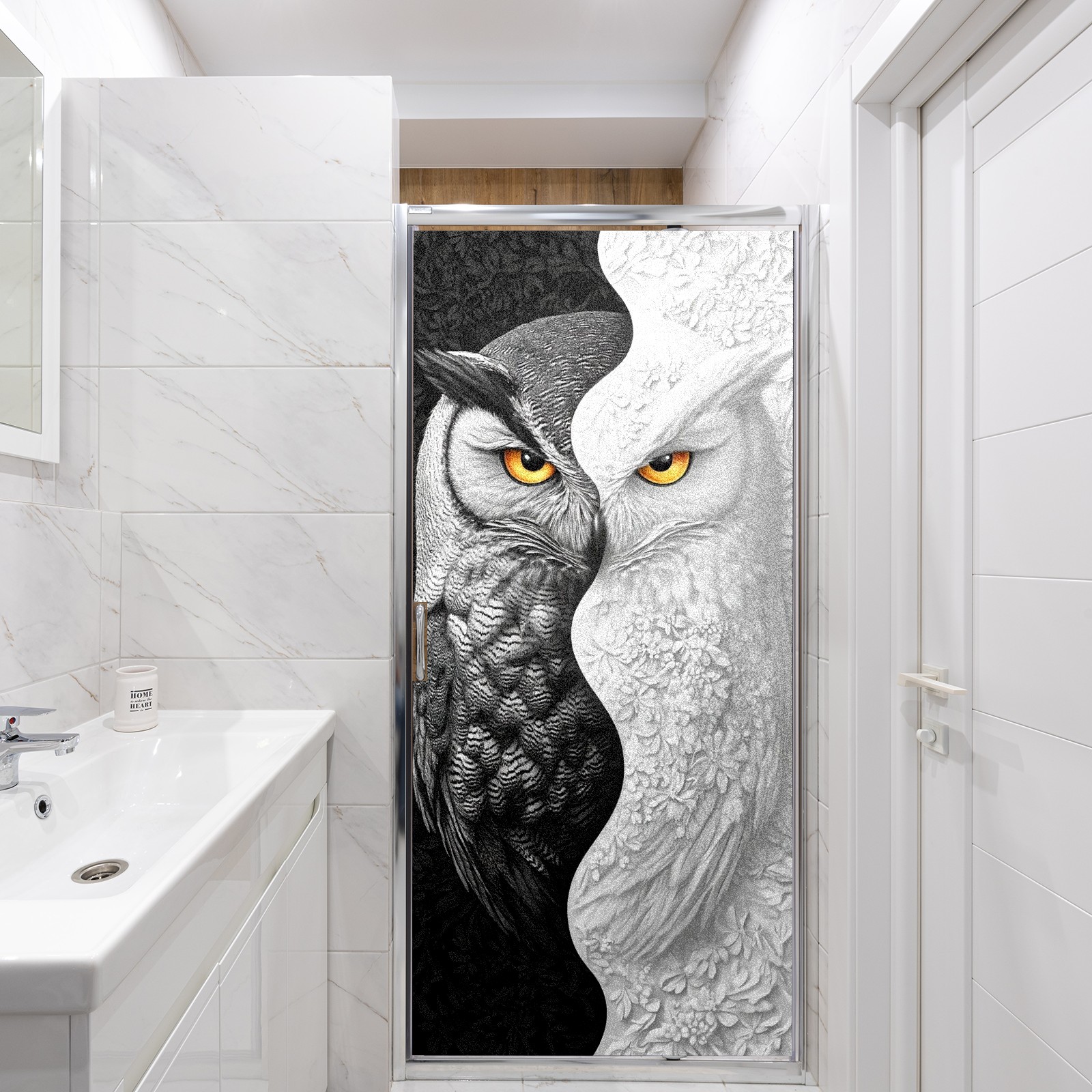 Static Cling Decorative Window Film Frosted Privacy Film Window Clings for Glass Windows No Glue Window Sticker for Bathroom Bedroom Office Owl
