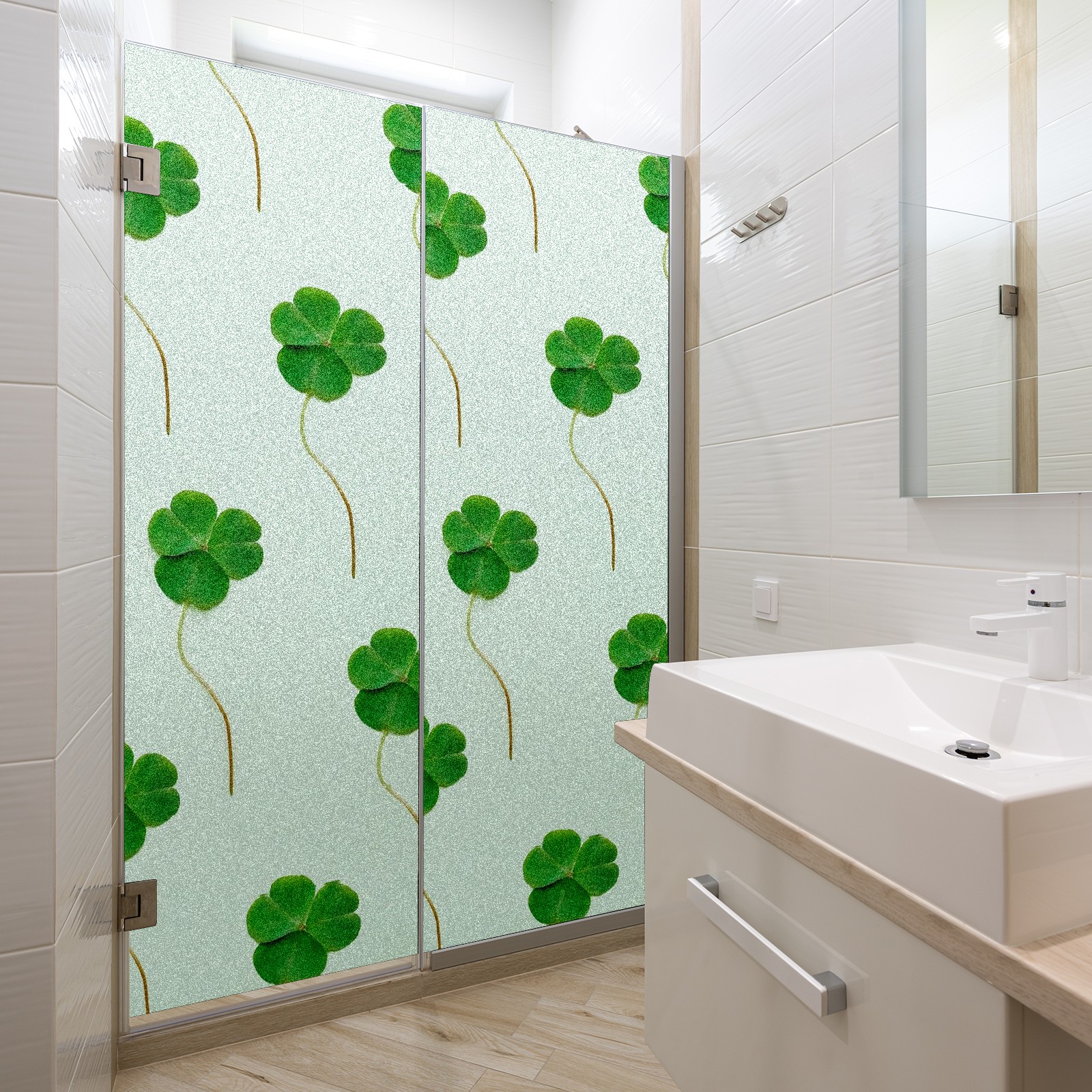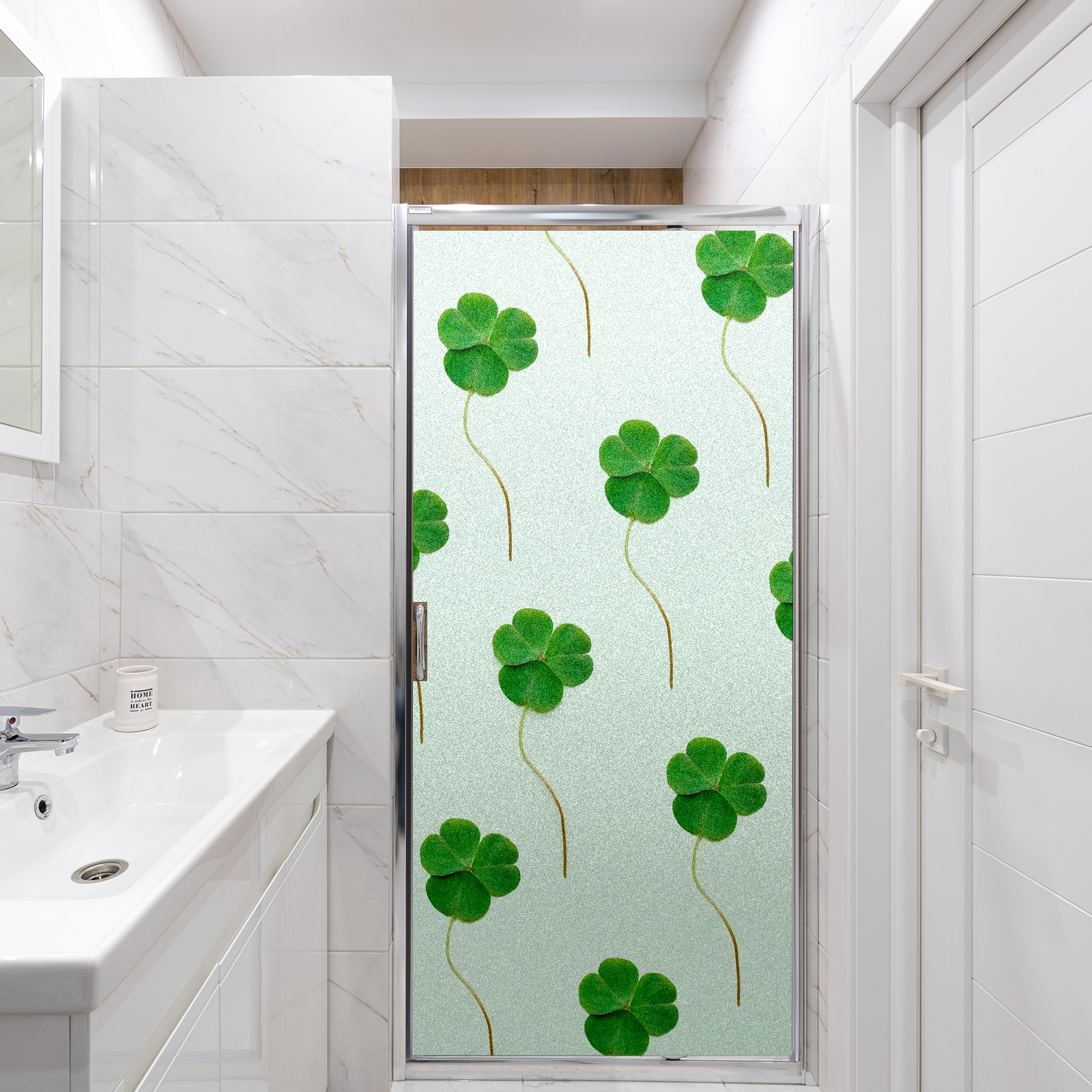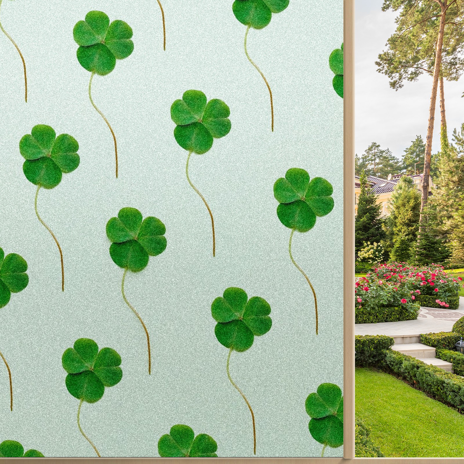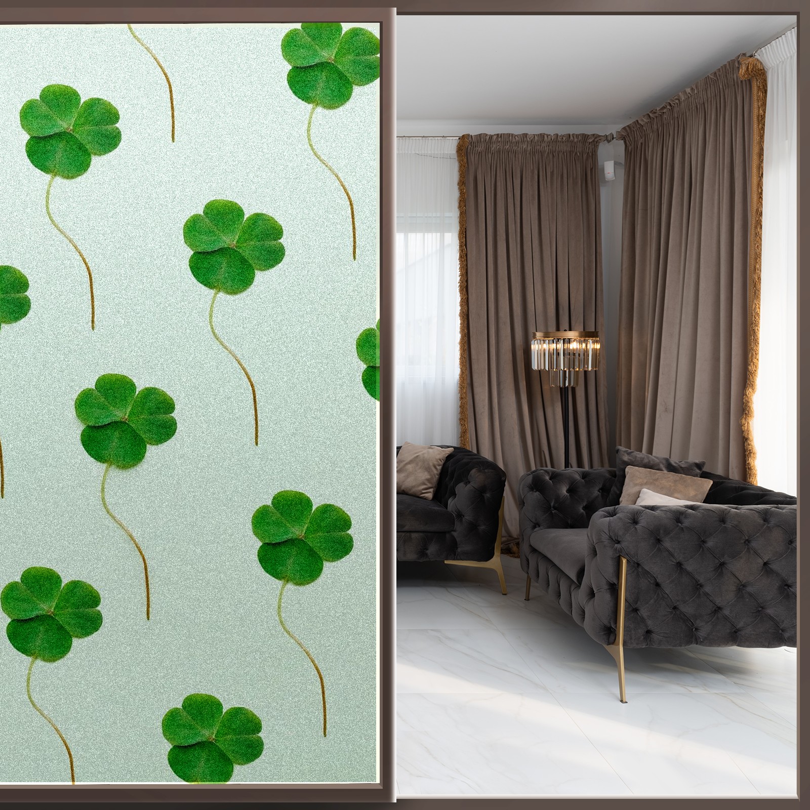 Static Cling Decorative Window Film Frosted Privacy Film Window Clings for Glass Windows No Glue Window Sticker for Bathroom Bedroom Office Four-leaf Clover