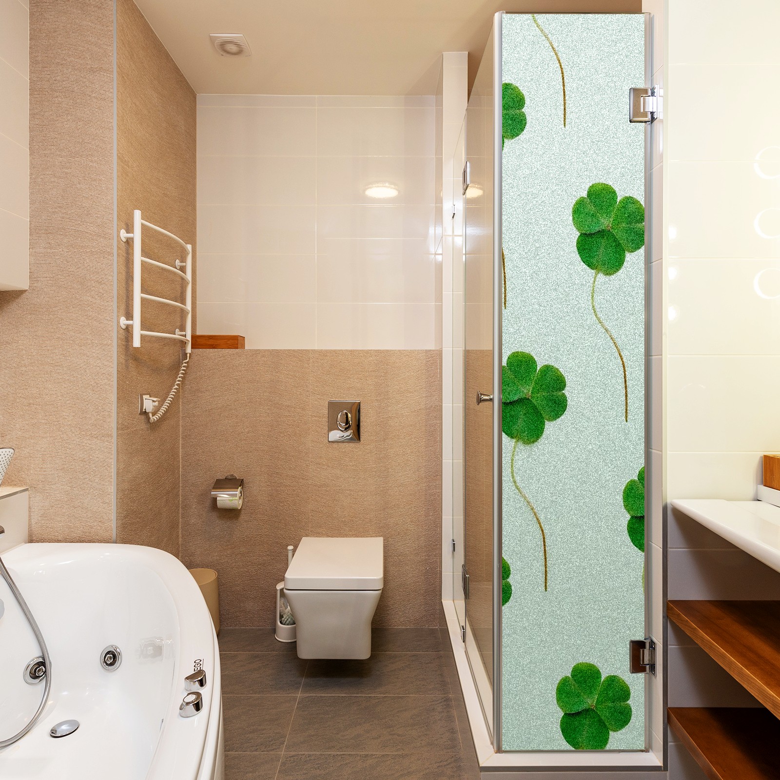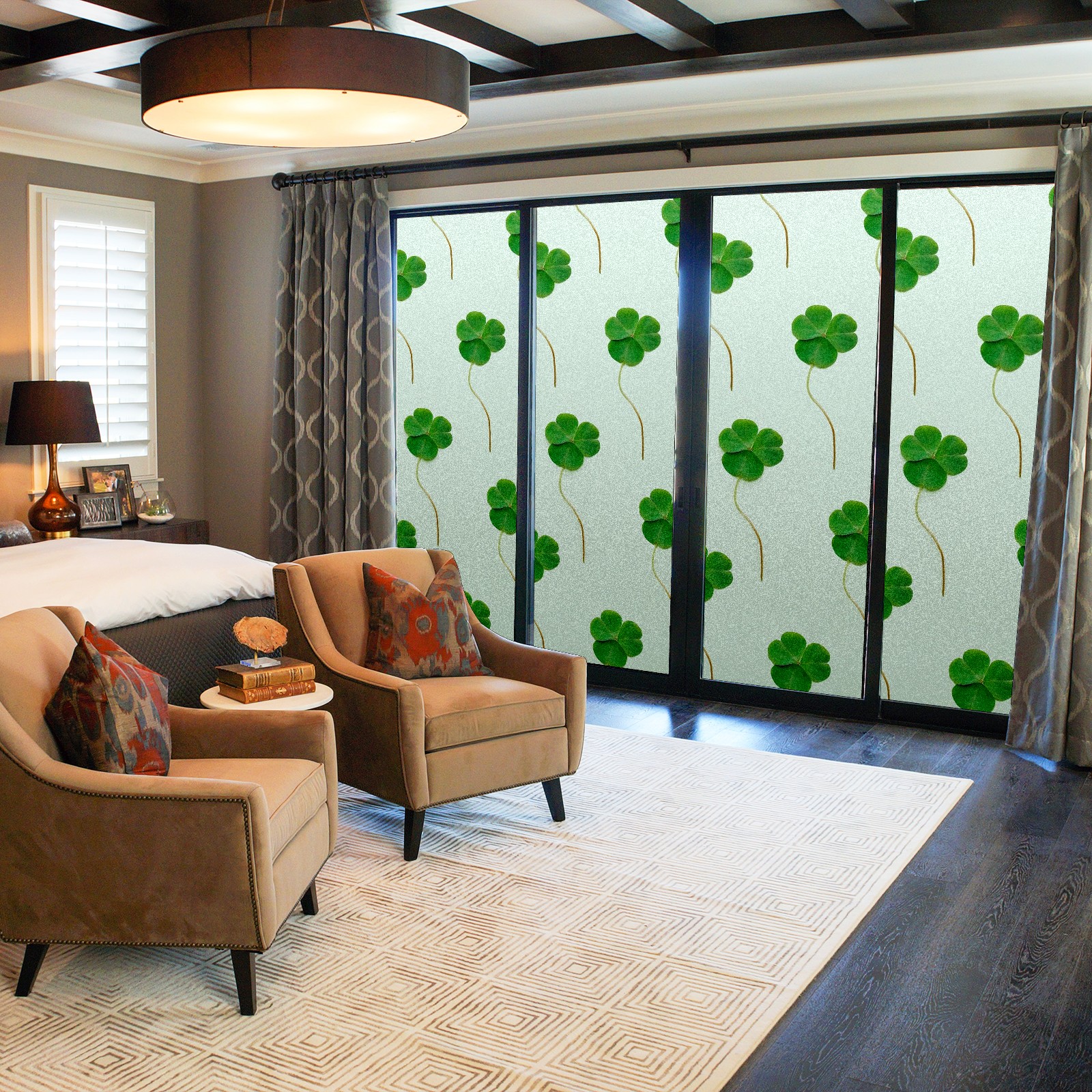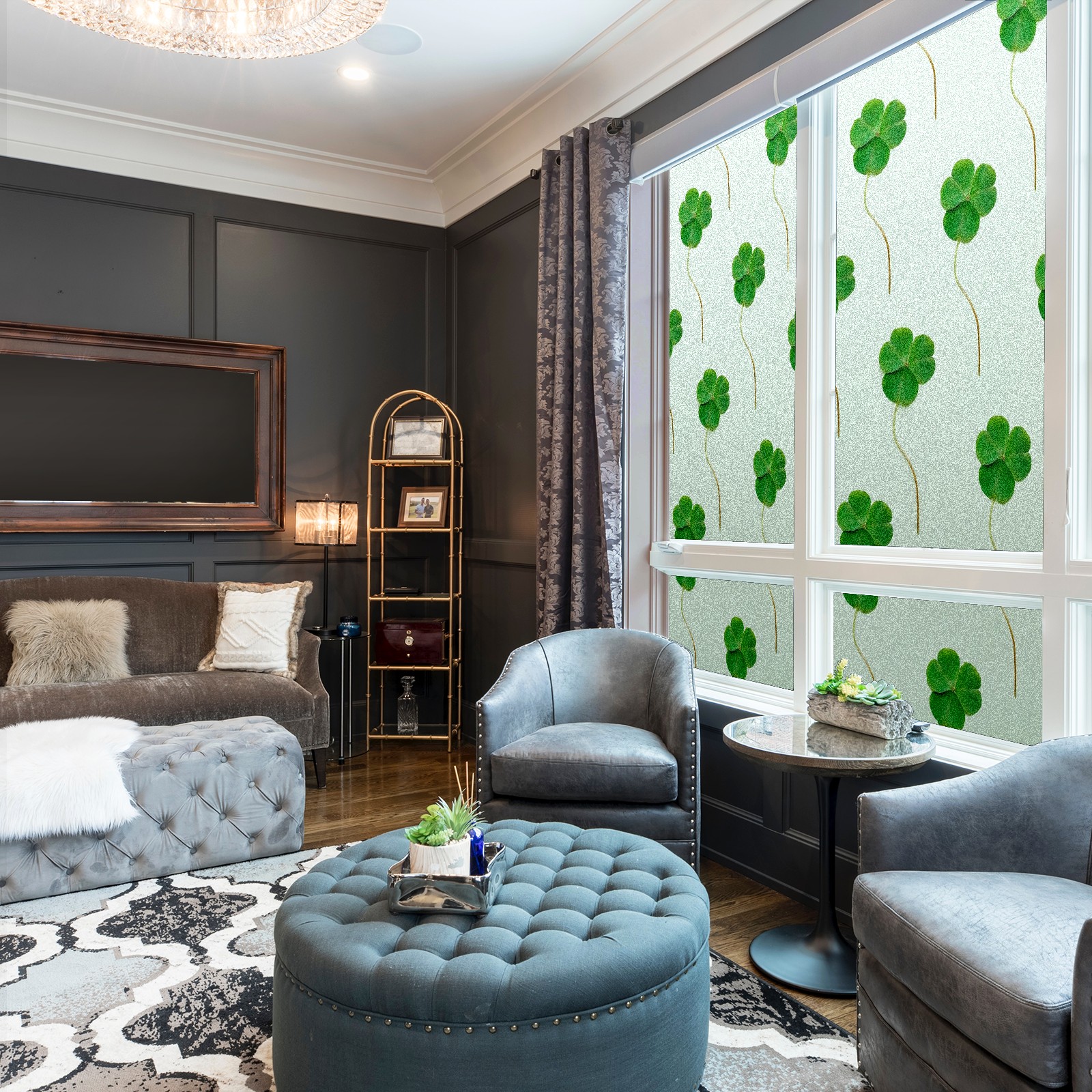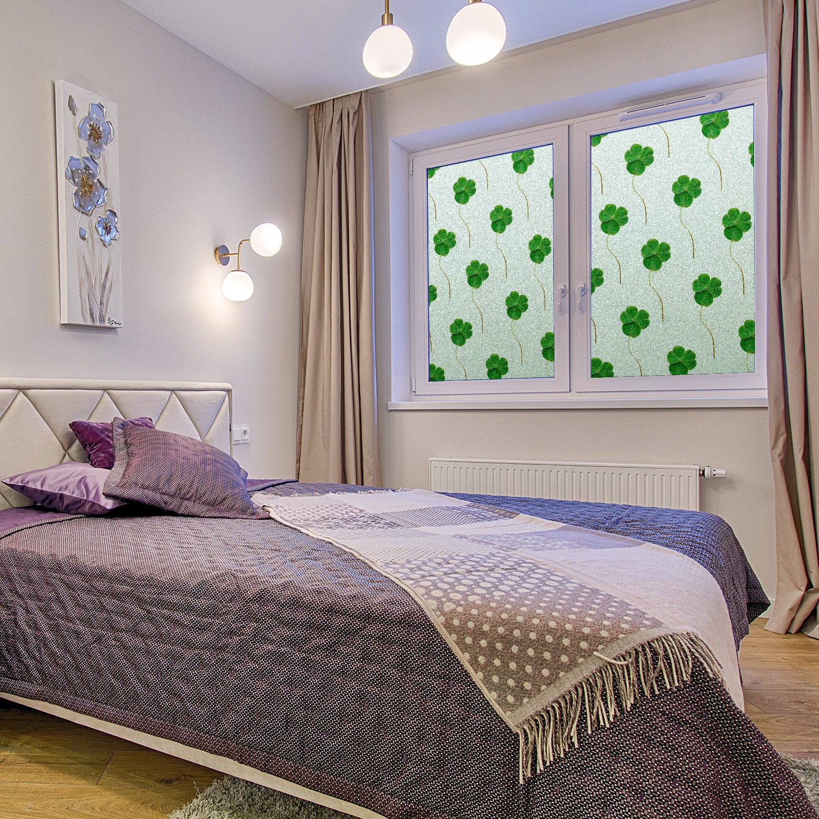 Static Cling Decorative Window Film Frosted Privacy Film Window Clings for Glass Windows No Glue Window Sticker for Bathroom Bedroom Office Four-leaf Clover