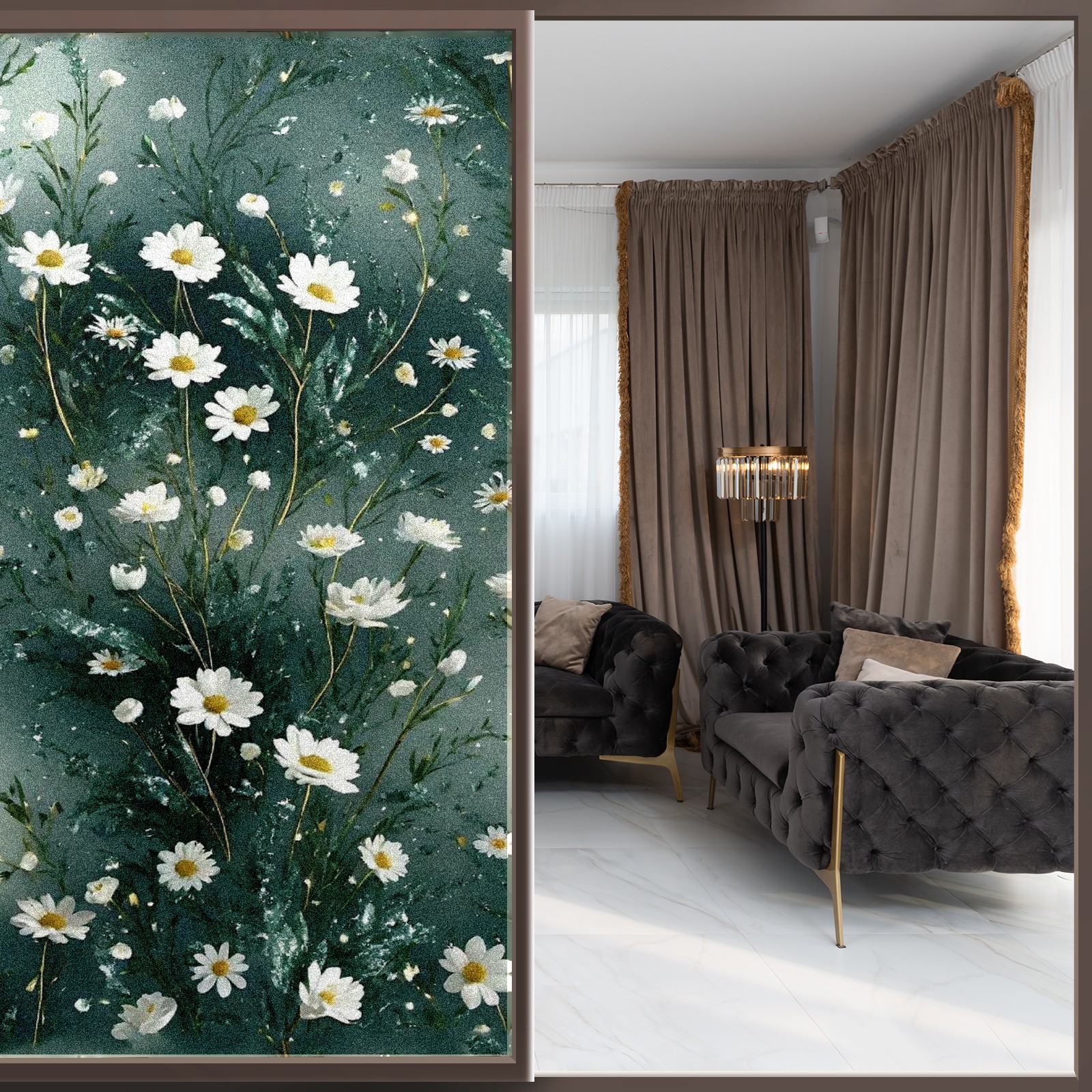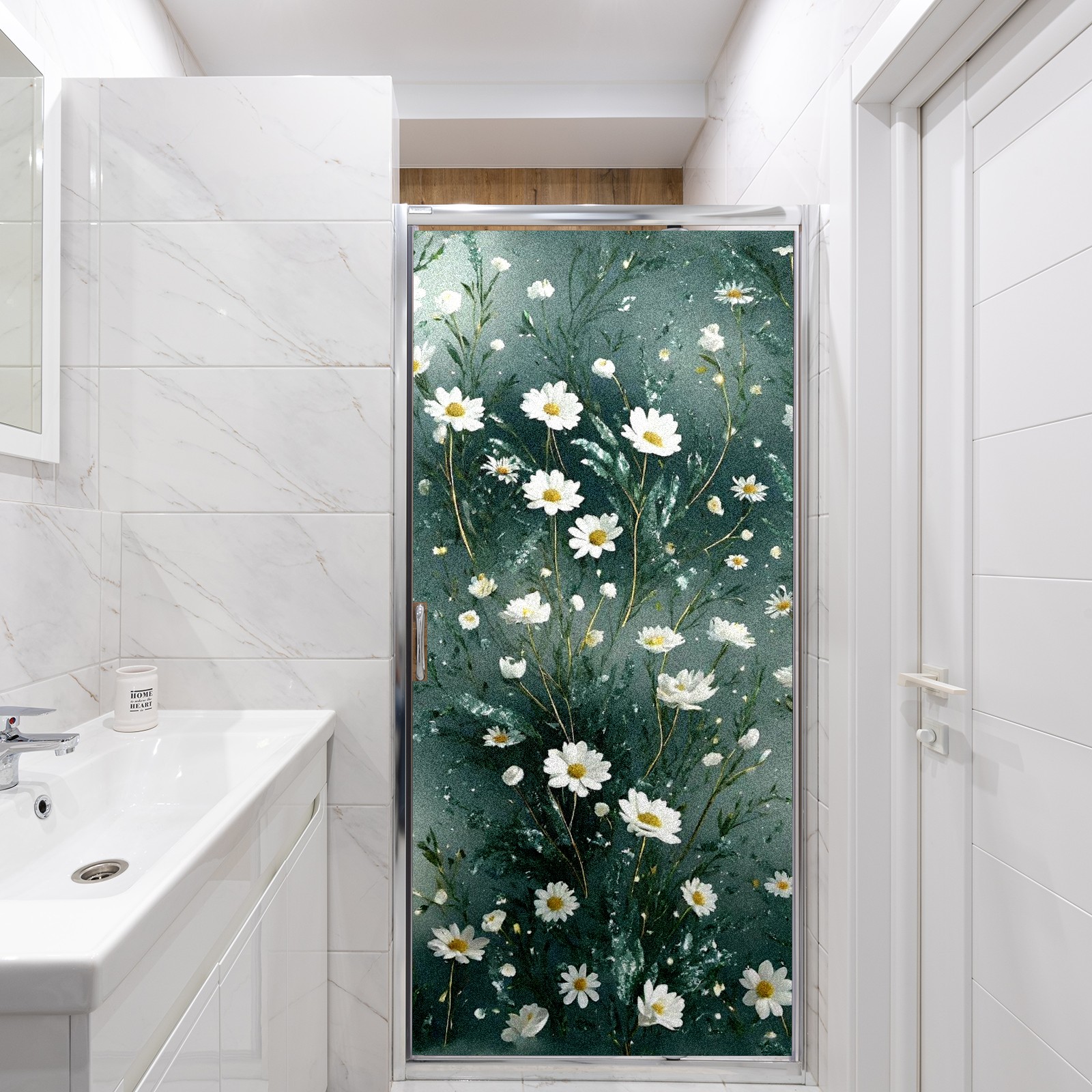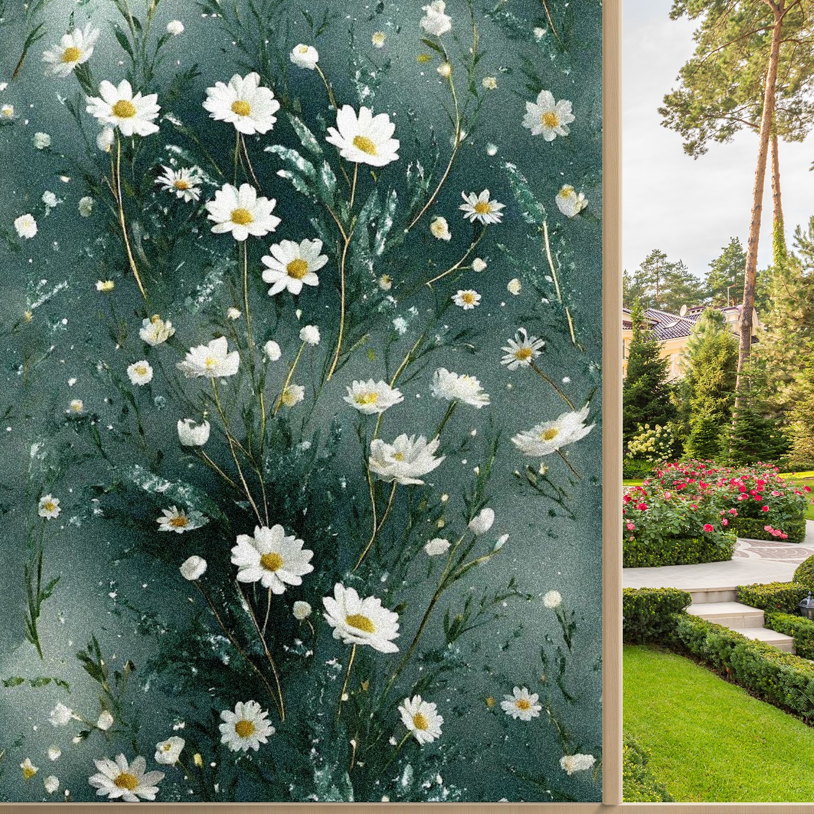 Static Cling Decorative Window Film Frosted Privacy Film Window Clings for Glass Windows No Glue Window Sticker for Bathroom Bedroom Office Daisy Flower