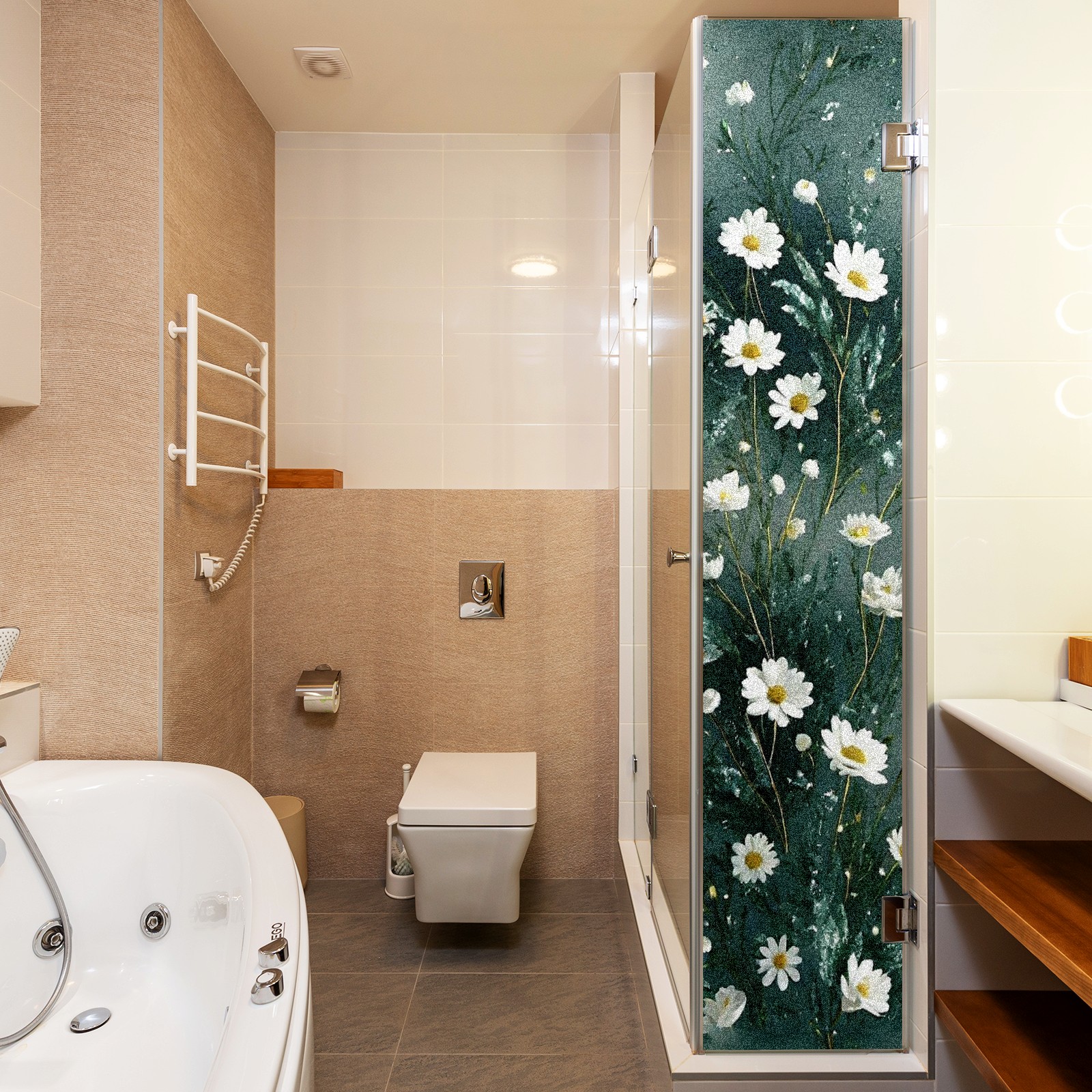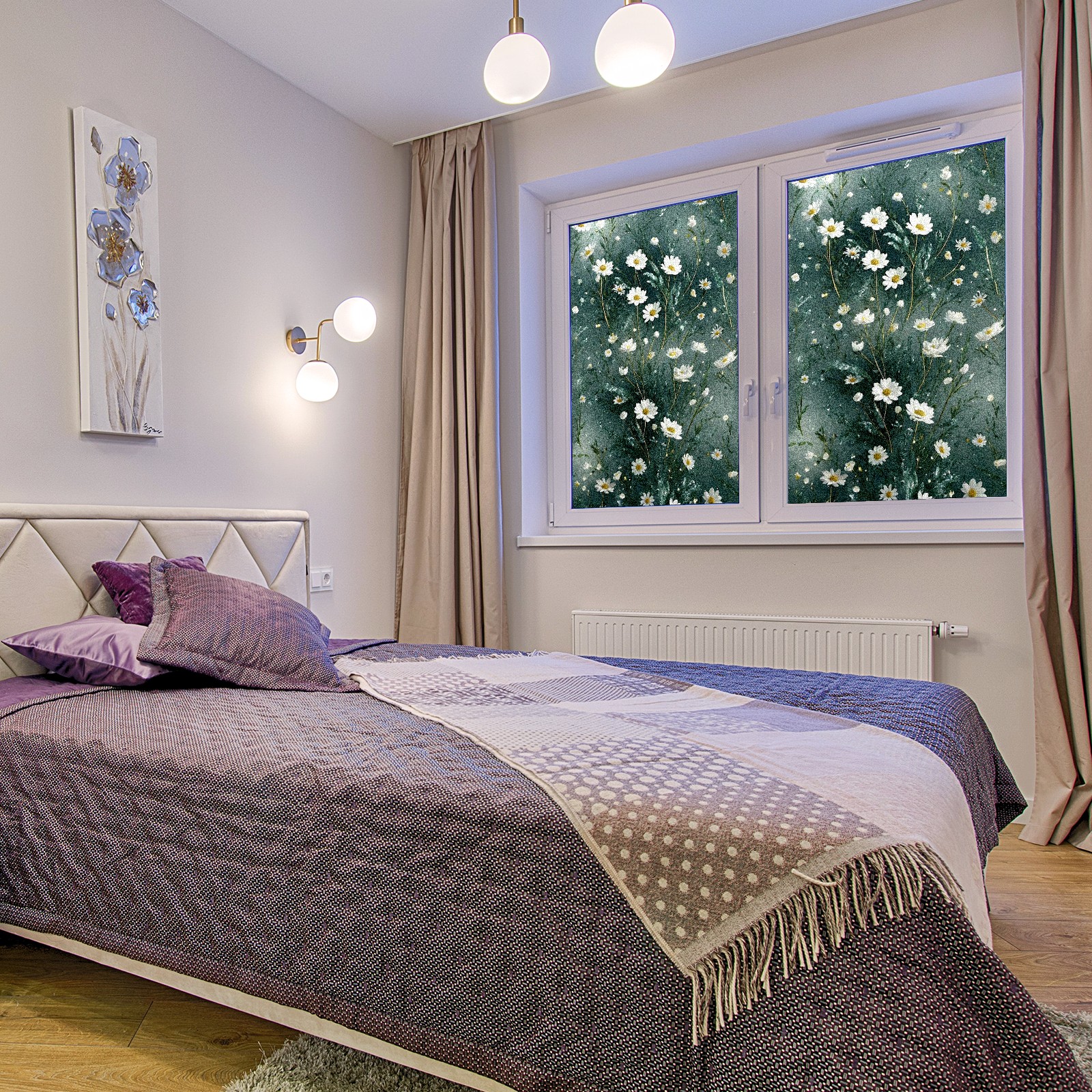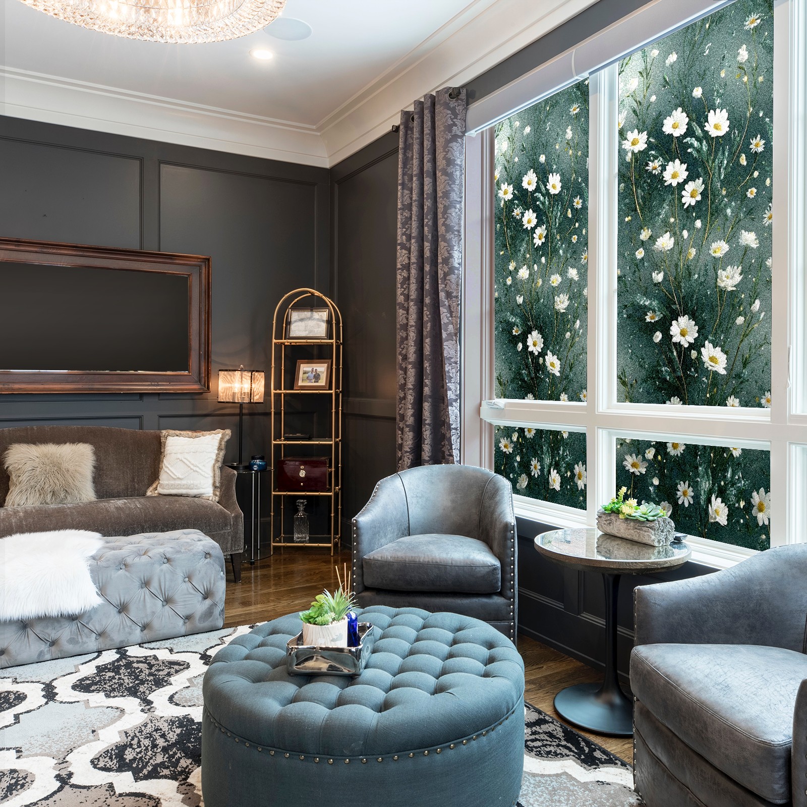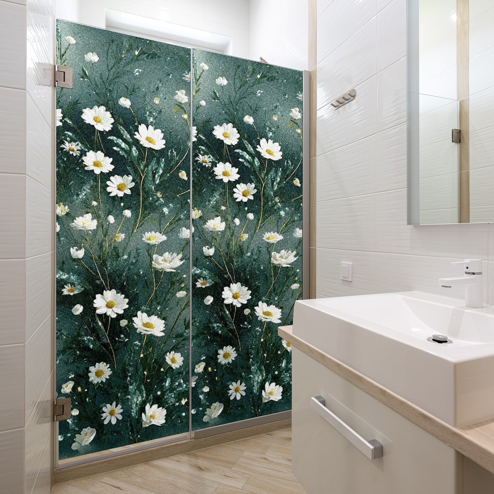 Static Cling Decorative Window Film Frosted Privacy Film Window Clings for Glass Windows No Glue Window Sticker for Bathroom Bedroom Office Daisy Flower