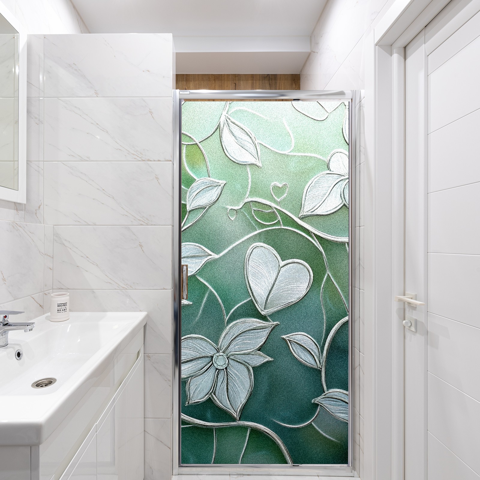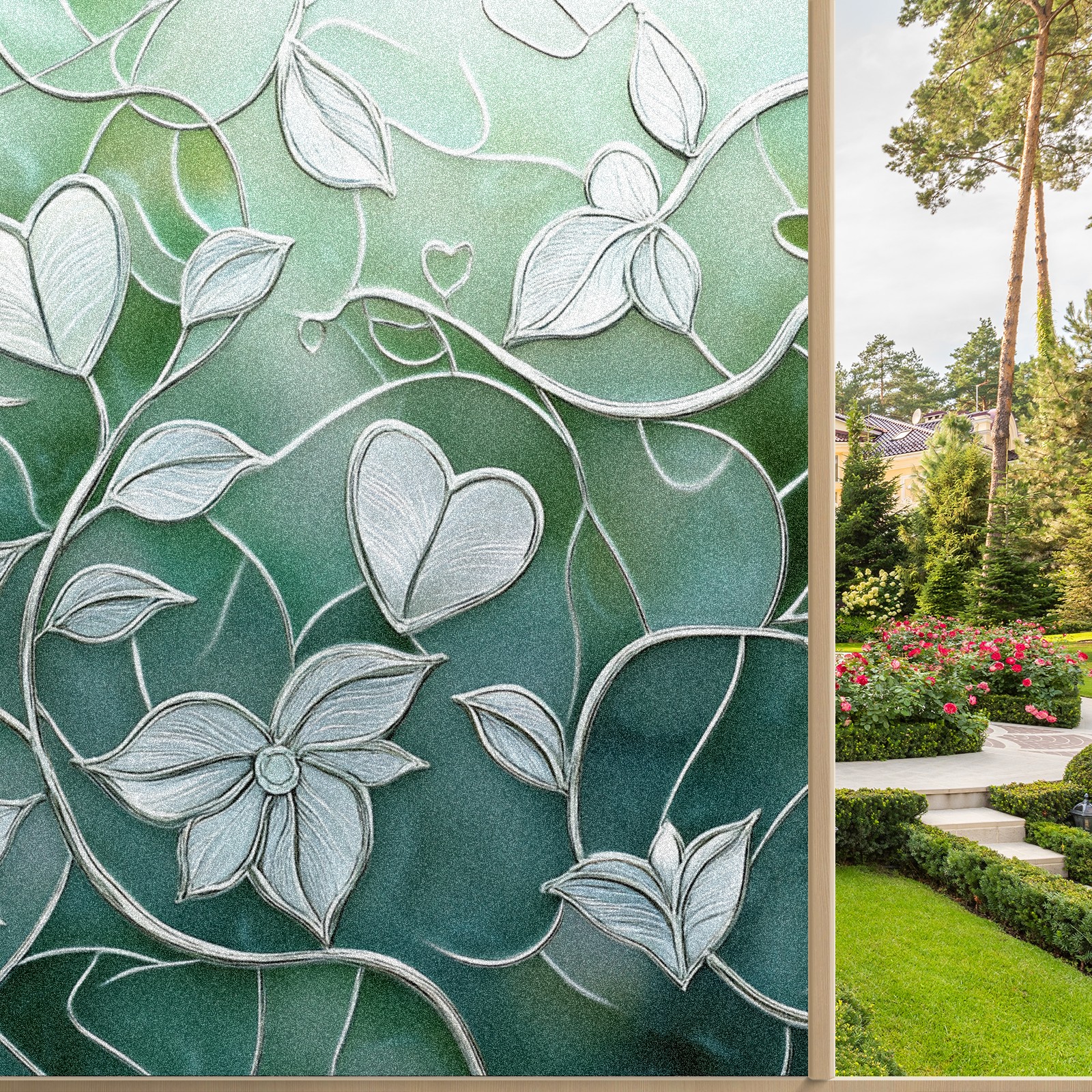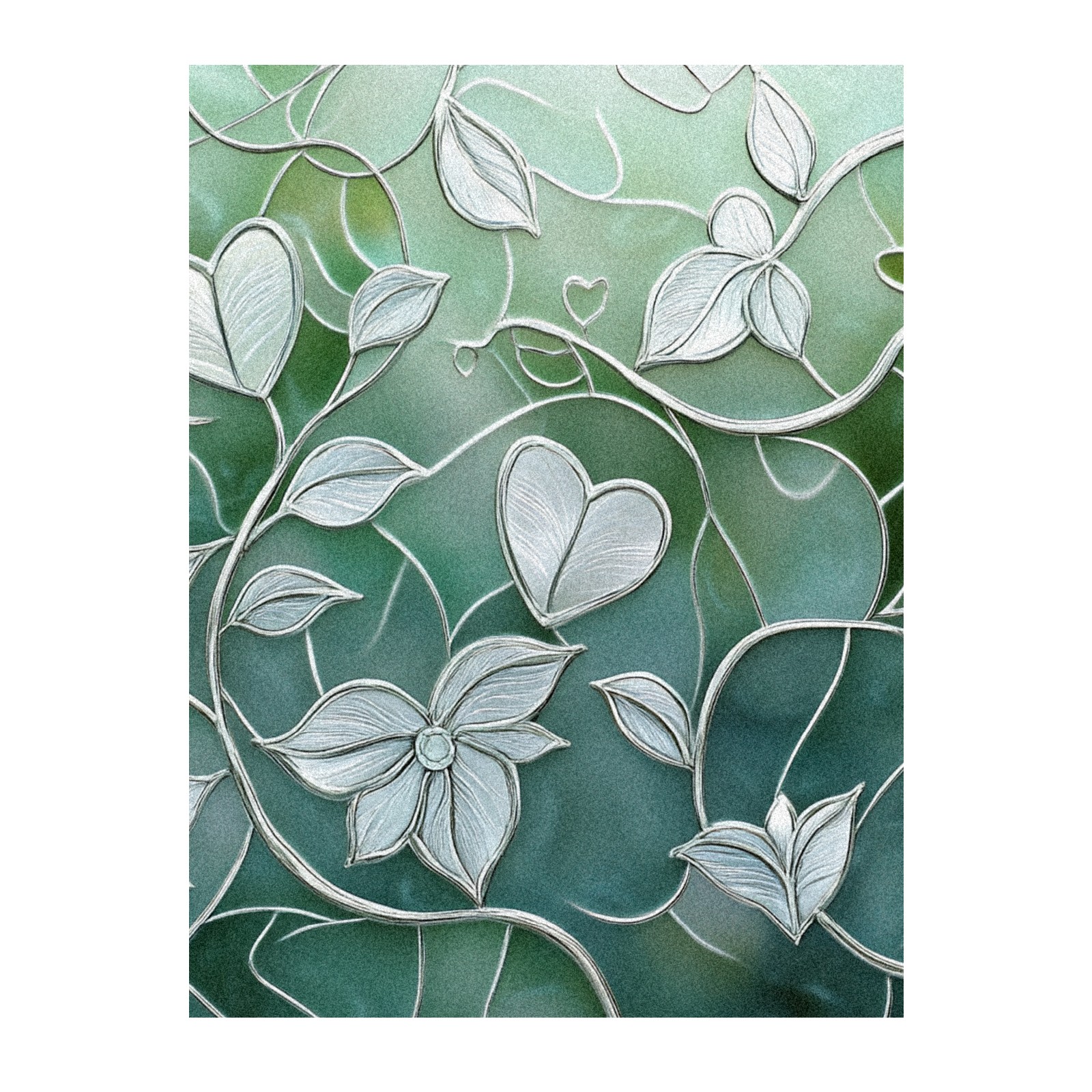 Static Cling Decorative Window Film Frosted Privacy Film Window Clings for Glass Windows No Glue Window Sticker for Bathroom Bedroom Office Elegant Silver Leaves Love