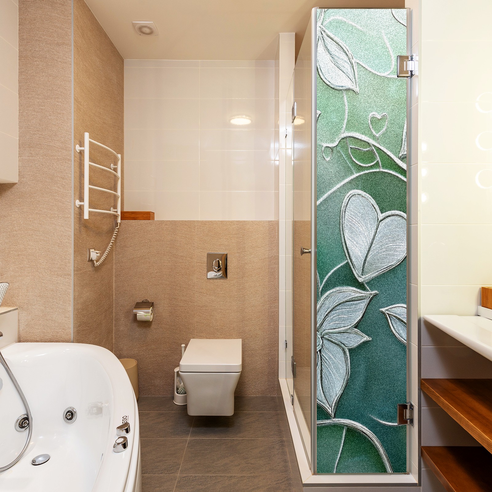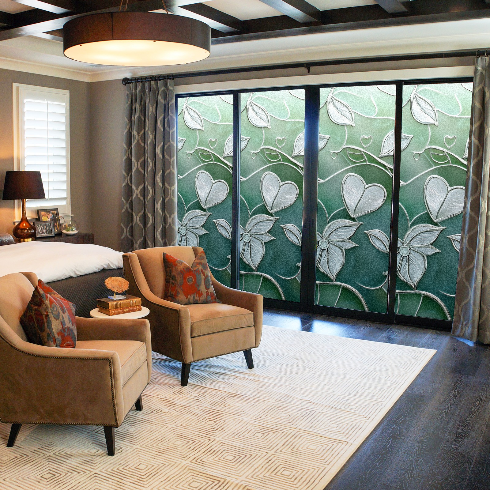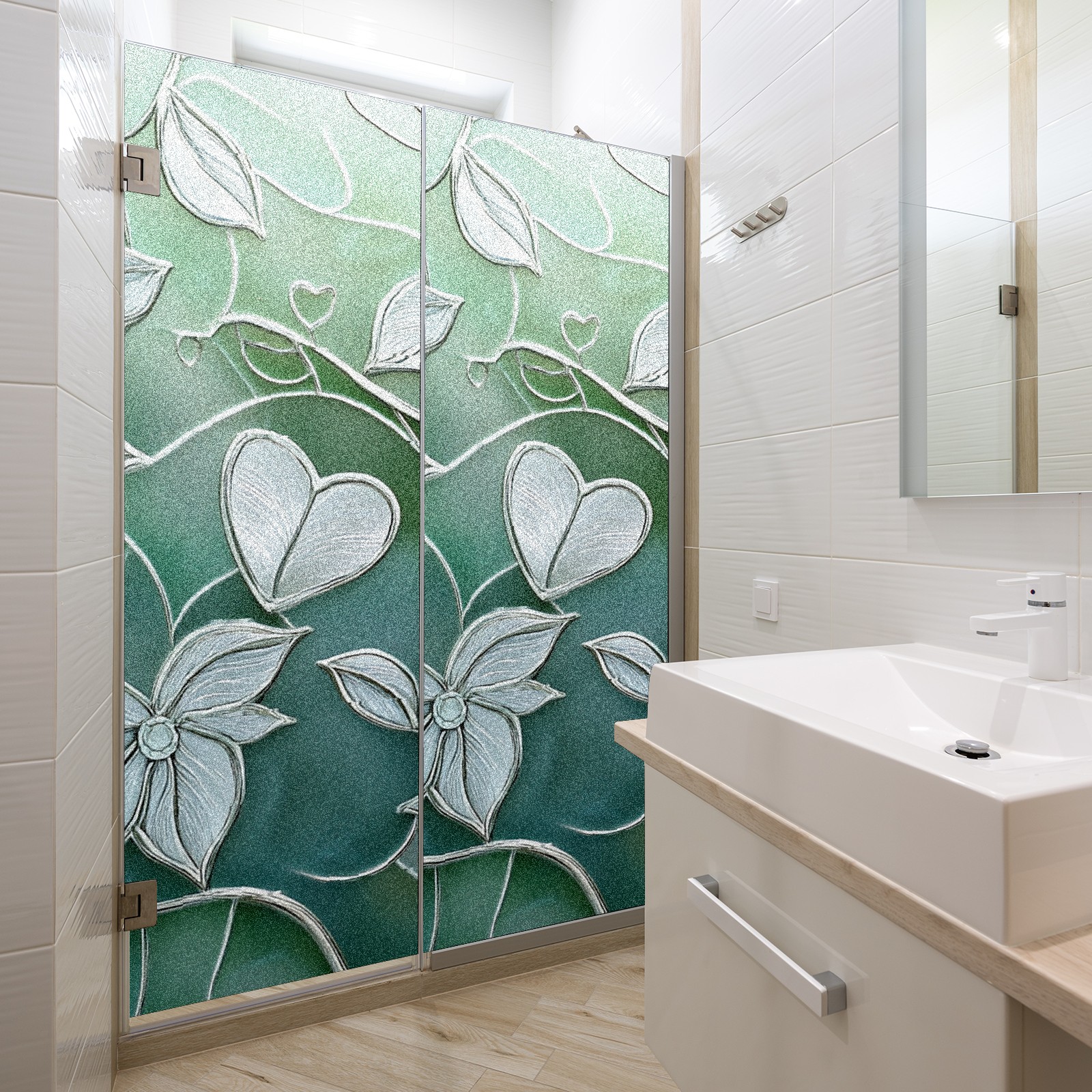 Static Cling Decorative Window Film Frosted Privacy Film Window Clings for Glass Windows No Glue Window Sticker for Bathroom Bedroom Office Elegant Silver Leaves Love
