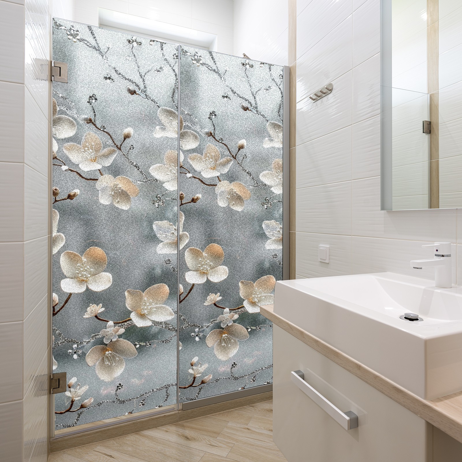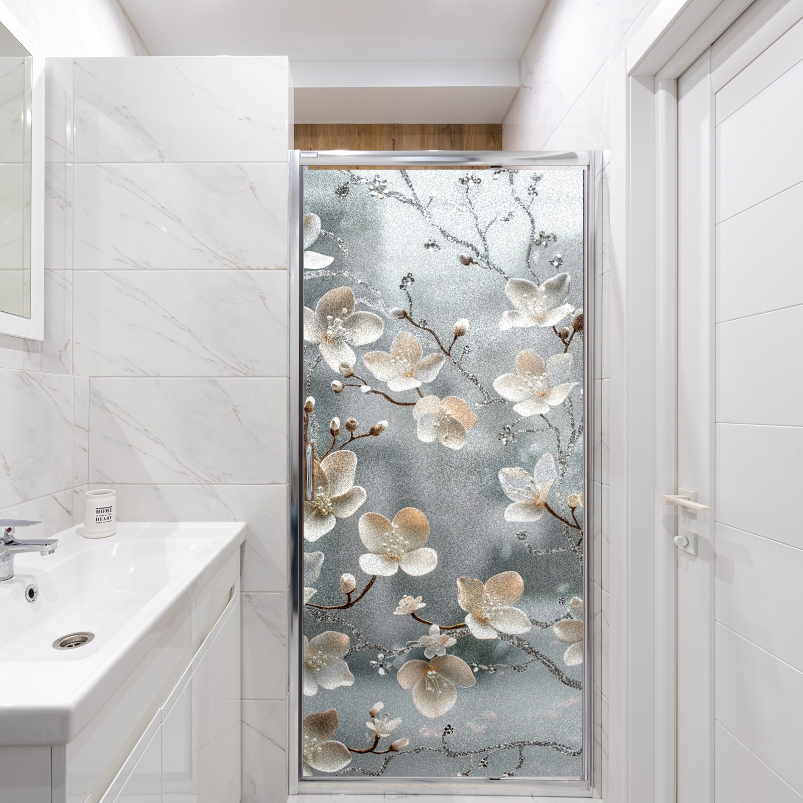 Static Cling Decorative Window Film Frosted Privacy Film Window Clings for Glass Windows No Glue Window Sticker for Bathroom Bedroom Office Silver Glitte Stained Glass (1)