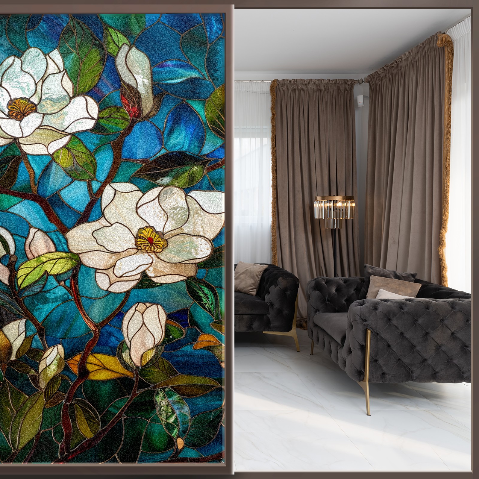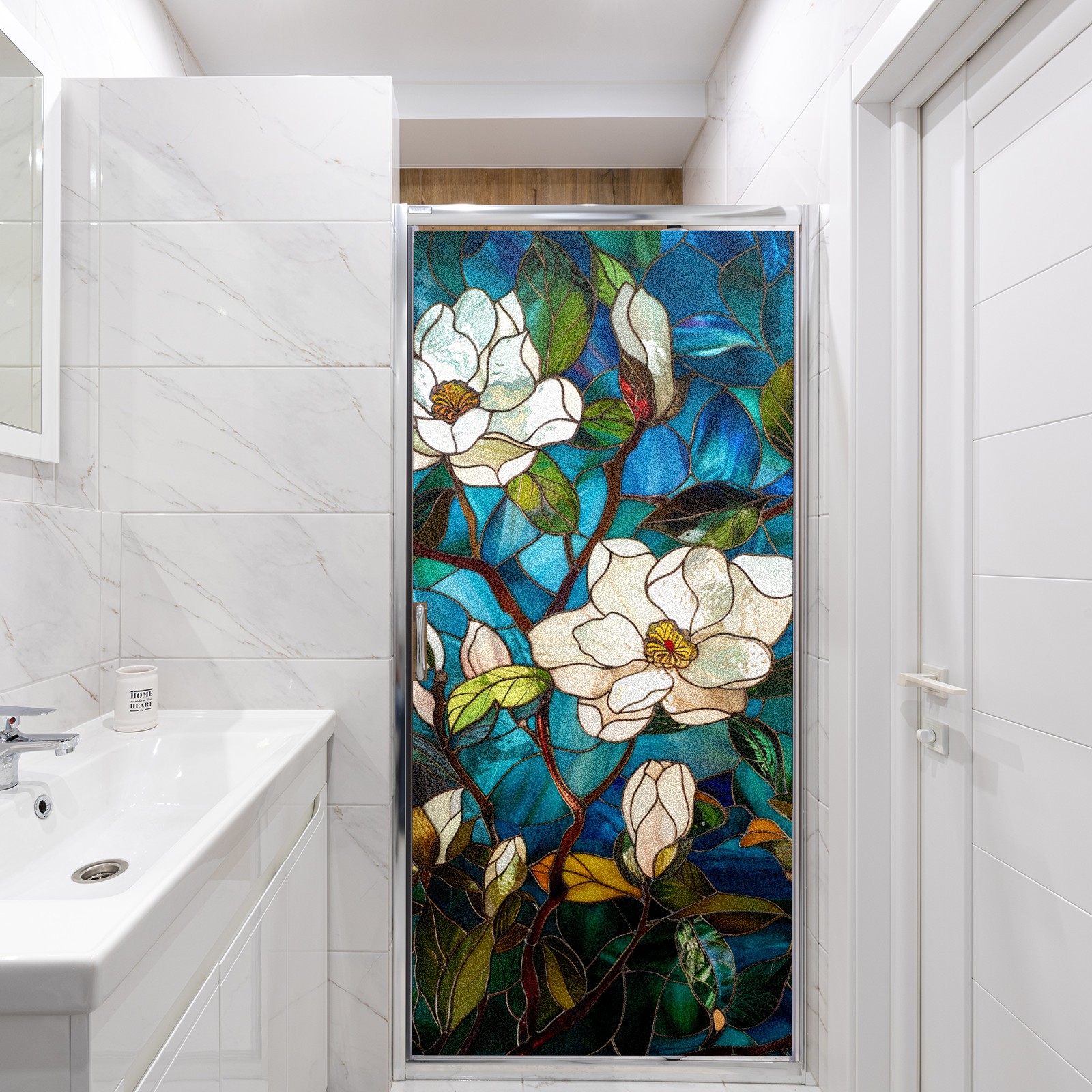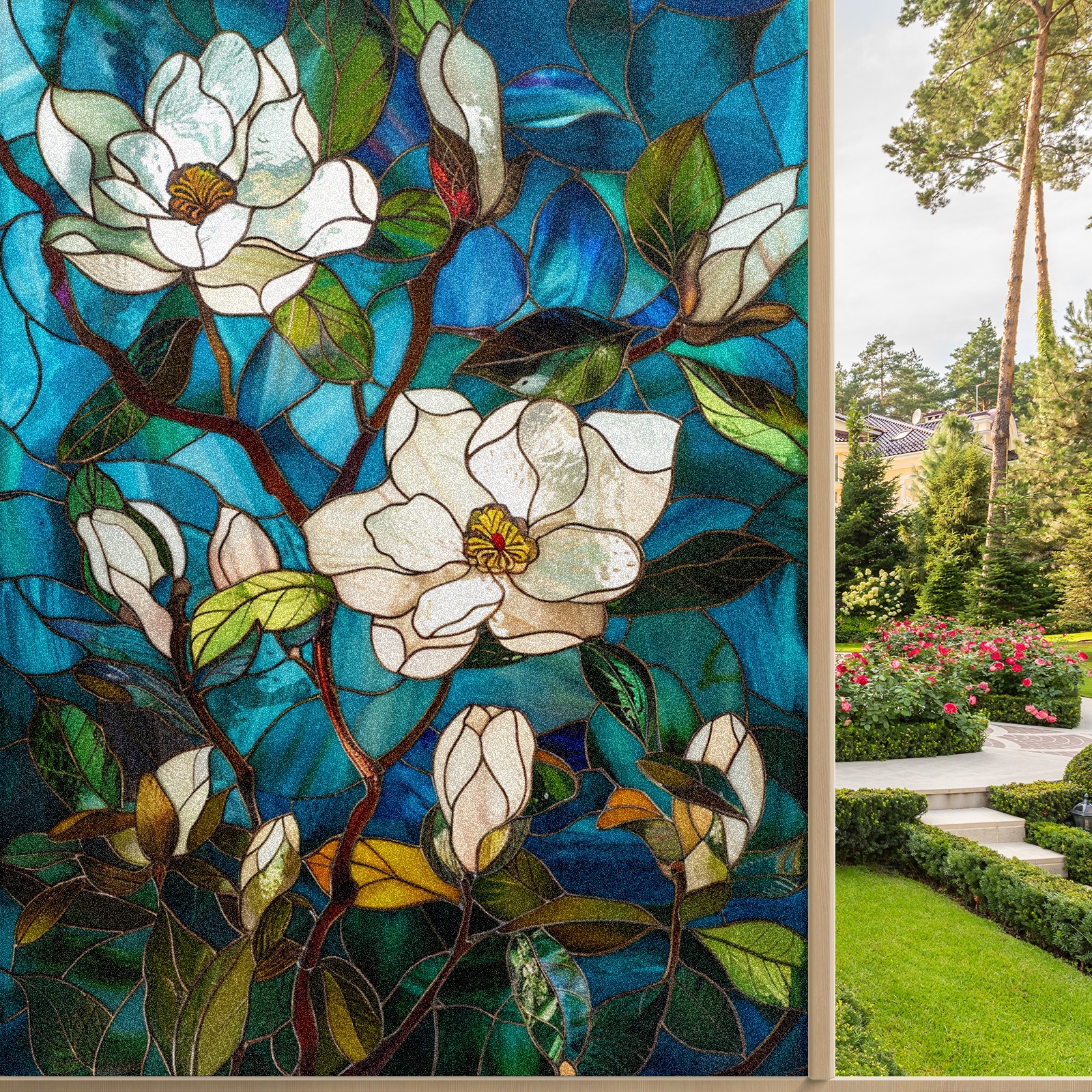 Static Cling Decorative Window Film Frosted Privacy Film Window Clings for Glass Windows No Glue Window Sticker for Bathroom Bedroom Office Magnolia (1)