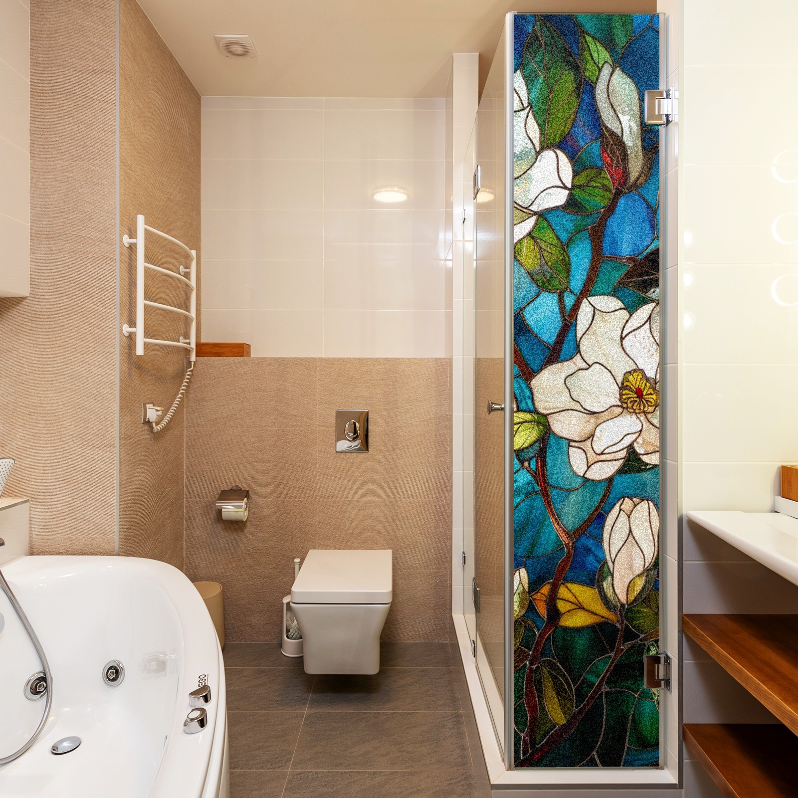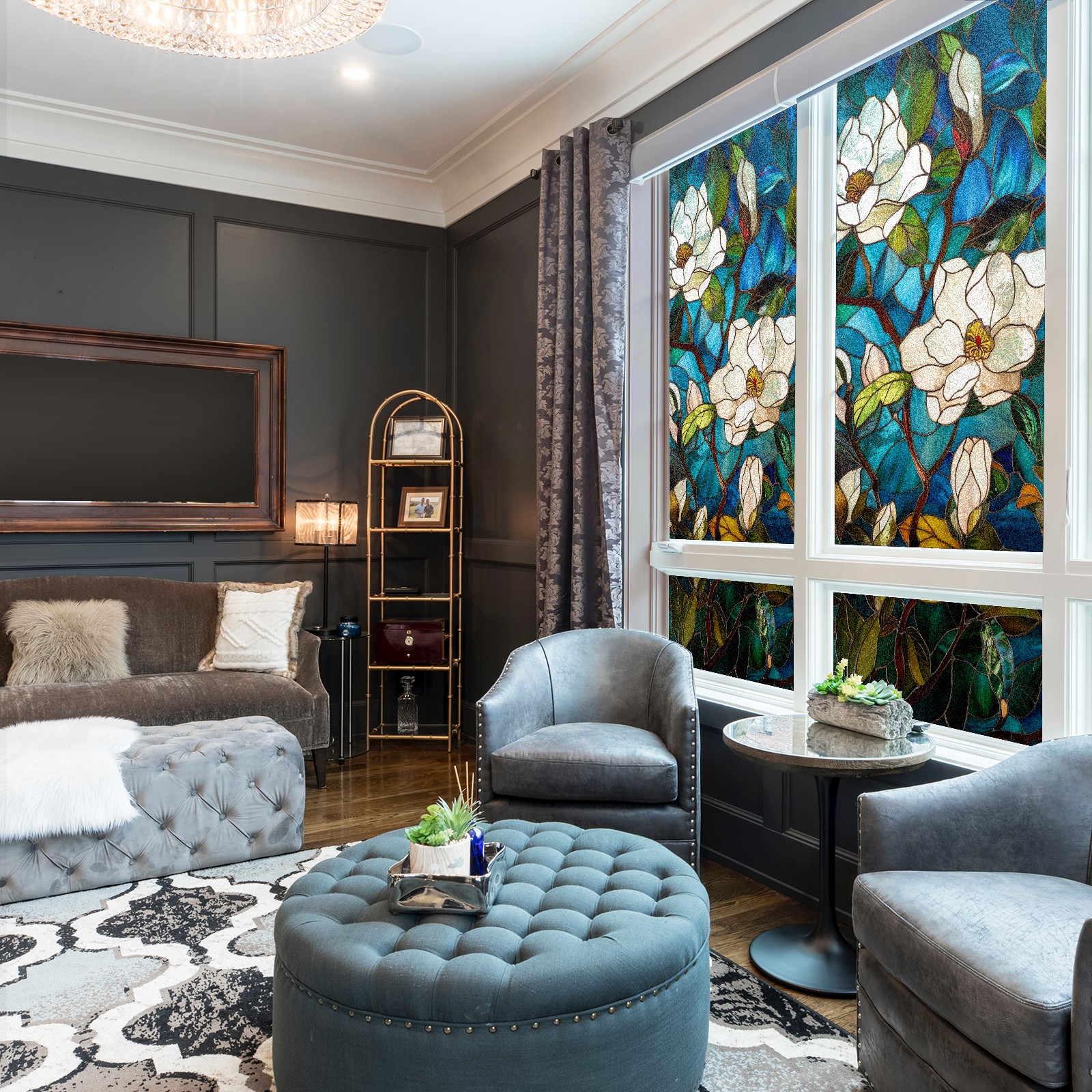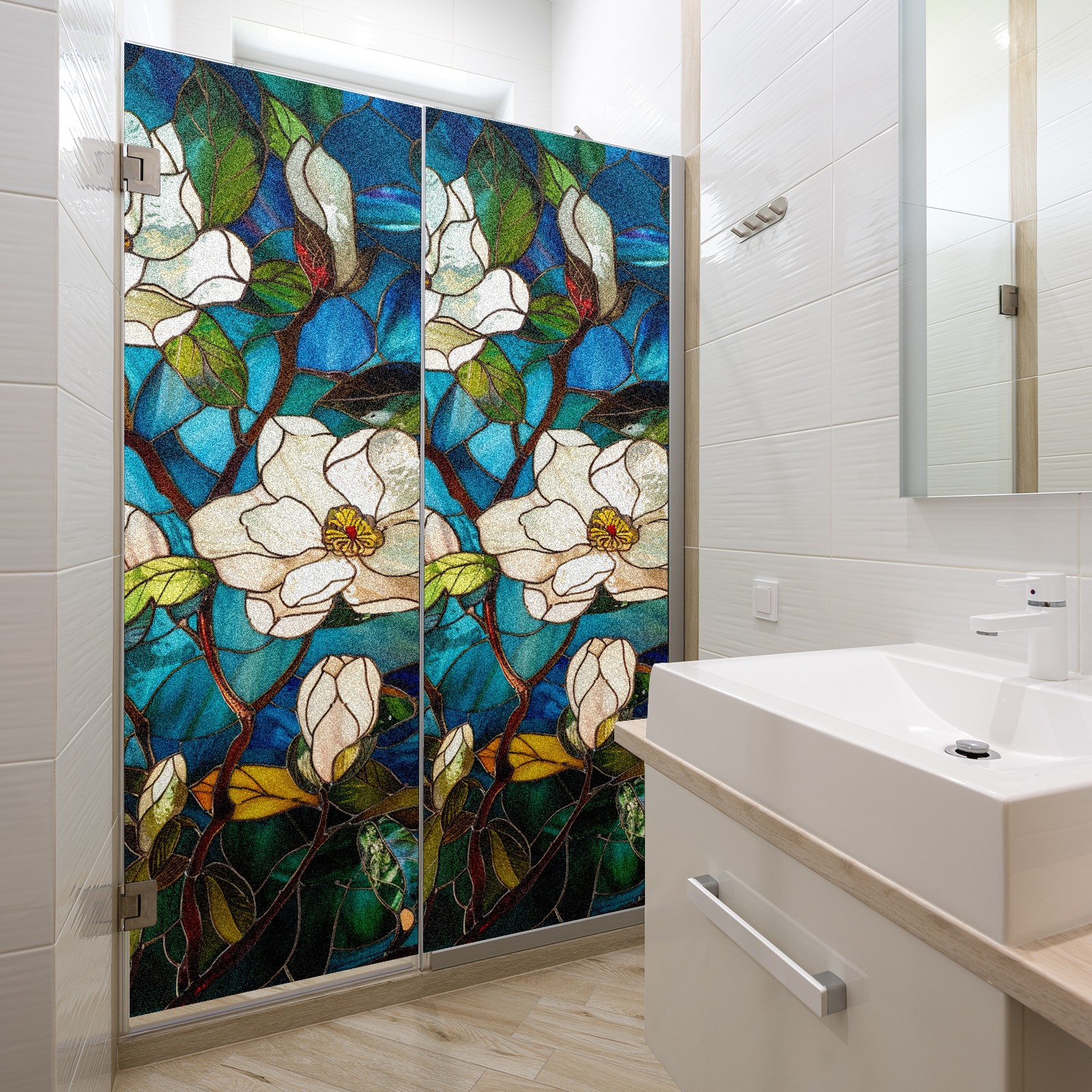 Static Cling Decorative Window Film Frosted Privacy Film Window Clings for Glass Windows No Glue Window Sticker for Bathroom Bedroom Office Magnolia (1)